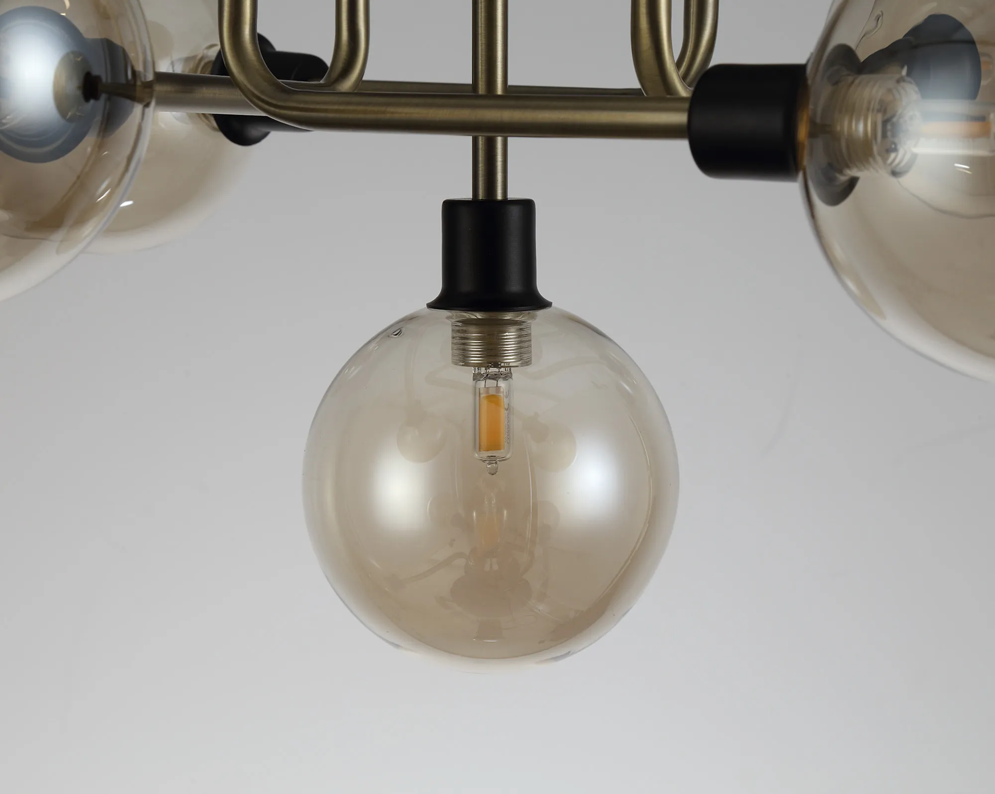 A truly imaginative concept, The Cinigiano is a striking lighting range blends industrial character with artistic structure. At its core, central matt black/antique brass or graphite/satin nickel frames support a seemingly chaotic arrangement of antique brass tubes, designed to evoke the look of a re-purposed industrial pipeline system. The interplay between contrasting finishes dark, neutral tones and warm metallics enhances the raw, urban aesthetic. Each G9 lamp holder is enclosed within a tinted globe glass shade available in cognac or smoked glass carefully selected to reinforce the collection's gritty, industrial styling. This pairing replicates the look of decorative filament lamps, offering a refined glow without the need for specialised bulbs. Offered as flush ceiling lights, fixed pendants, wall lights, as well as table and floor lamps, the collection provides a complete solution for adding character and style to both modern and industrial-inspired interiors.