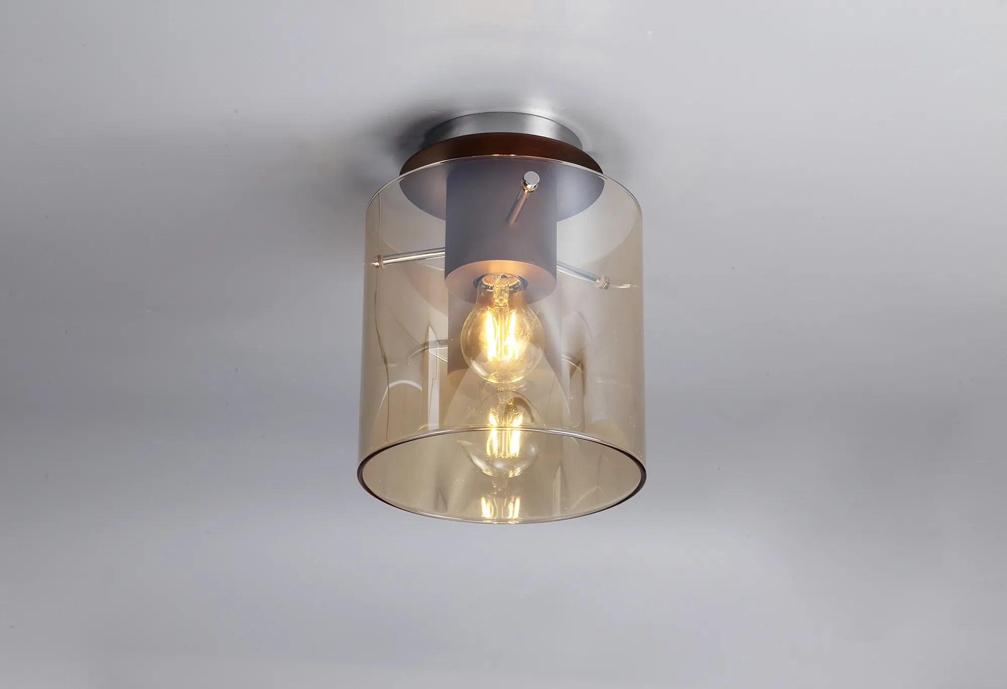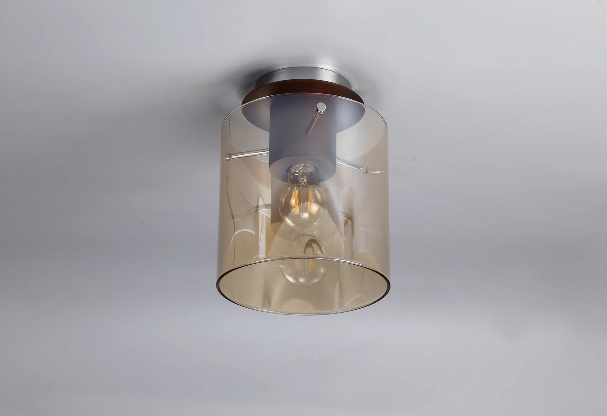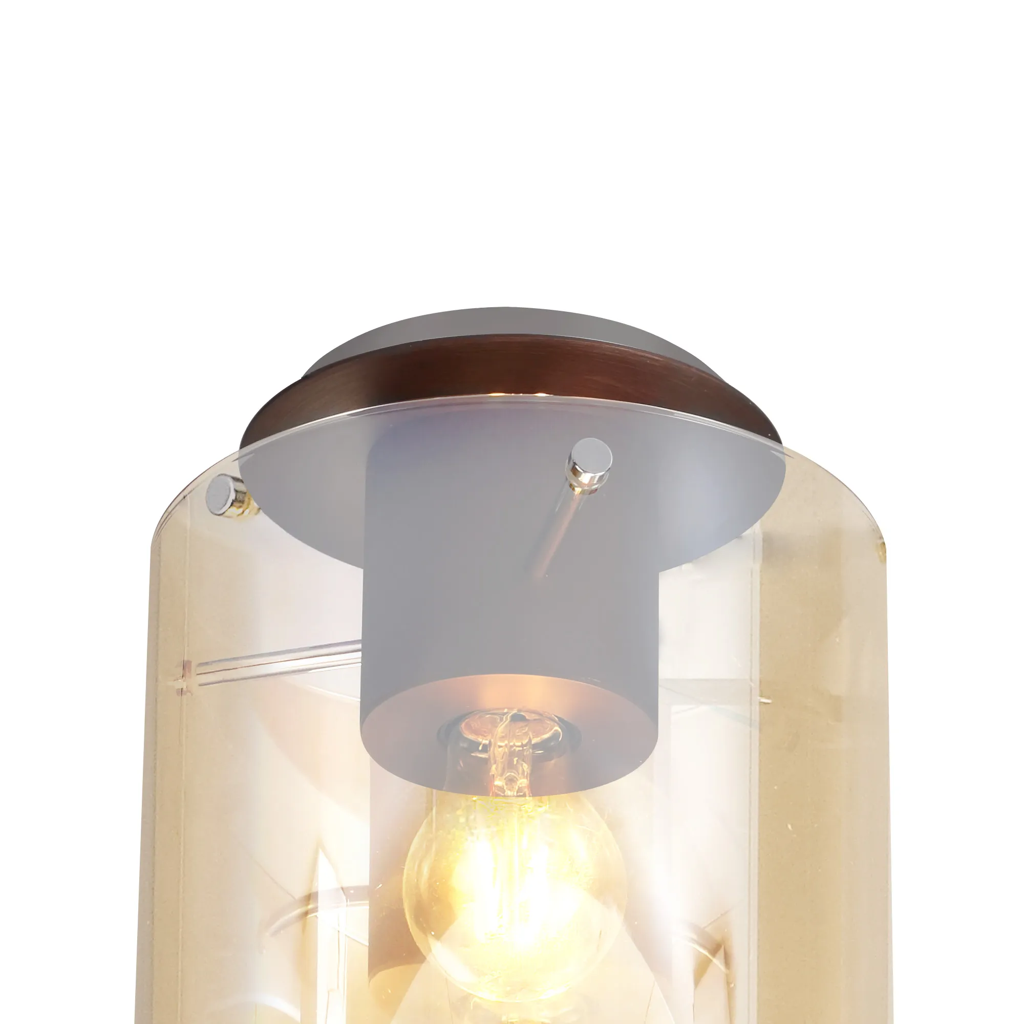 OTHER Cantagallo Round Ceiling Flush, 1 Light Flush Fitting E27, Mocha/Amber Glass