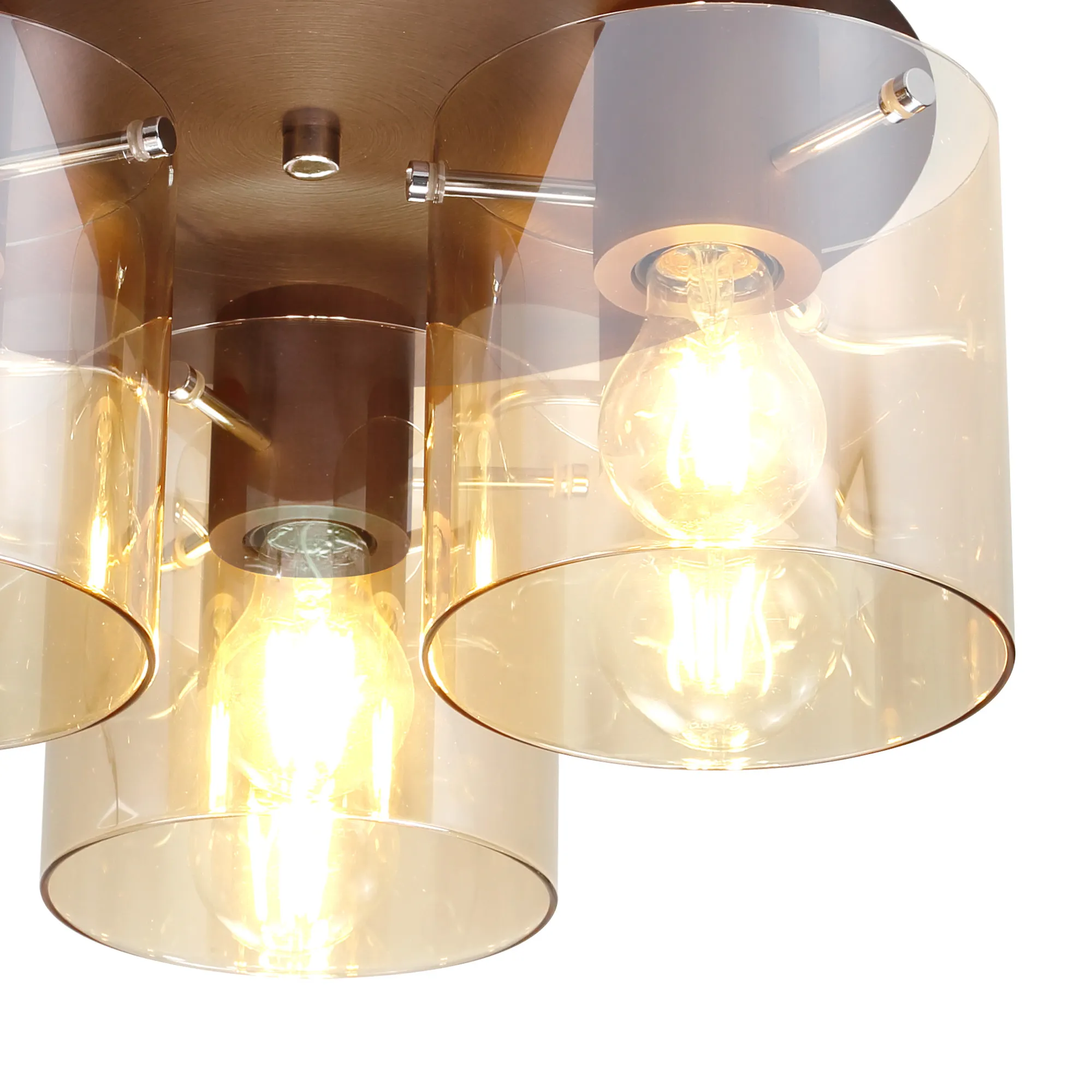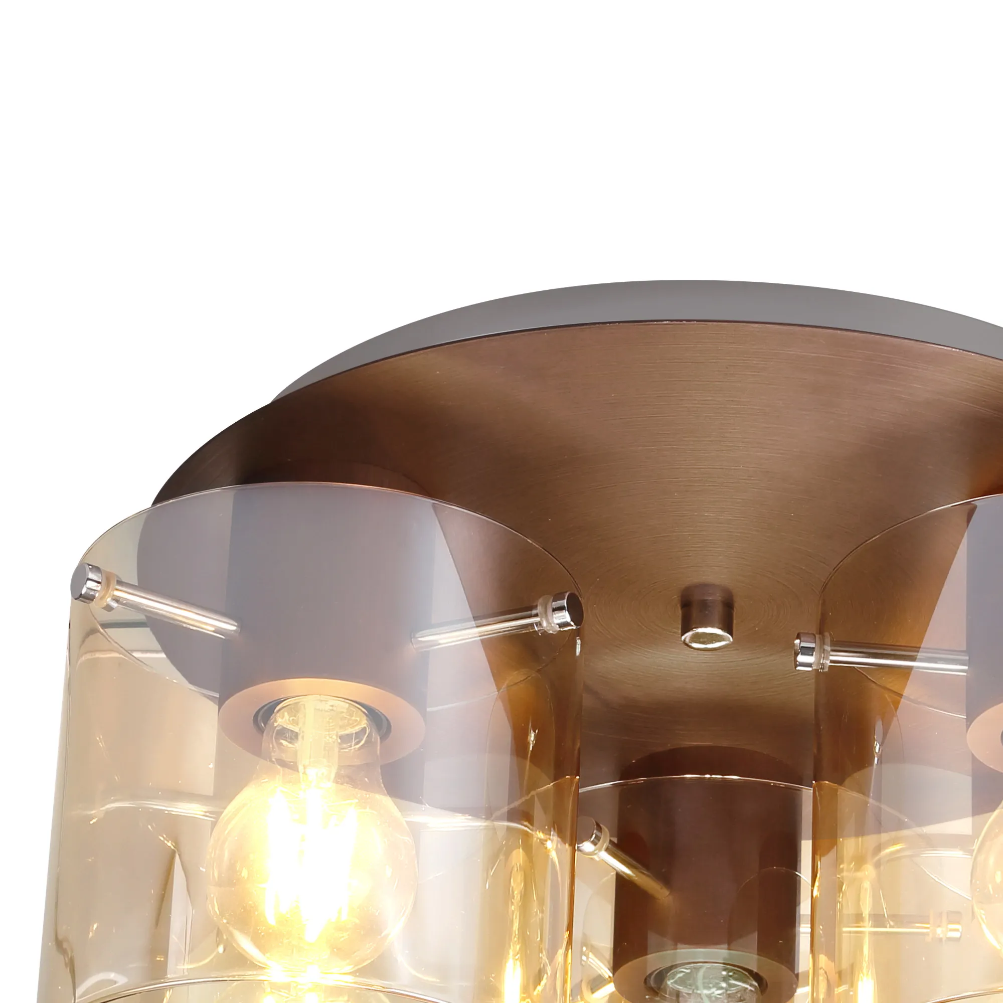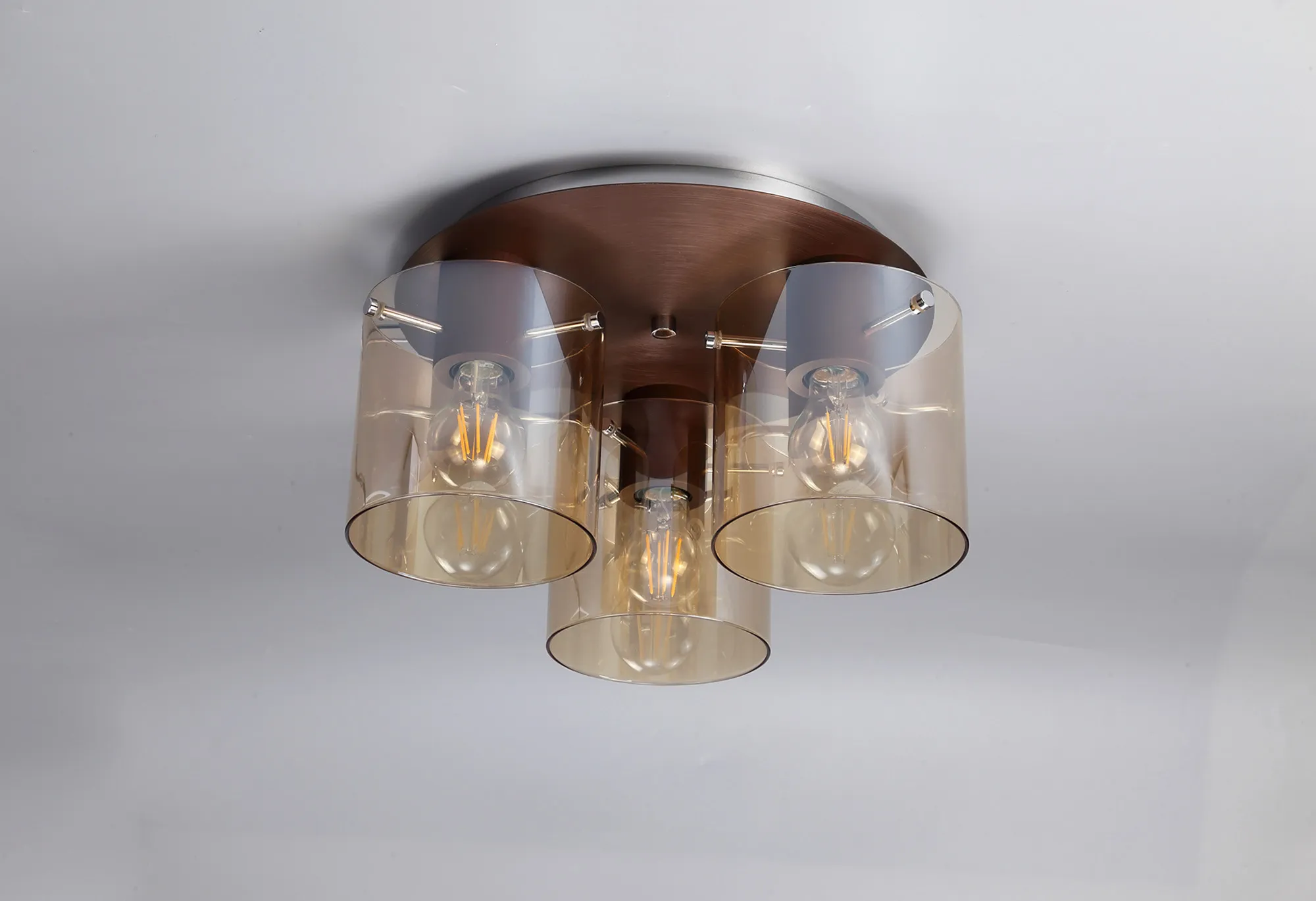 OTHER Cantagallo Round Ceiling Flush, 3 Light Flush Fitting, Mocha/Amber Glass