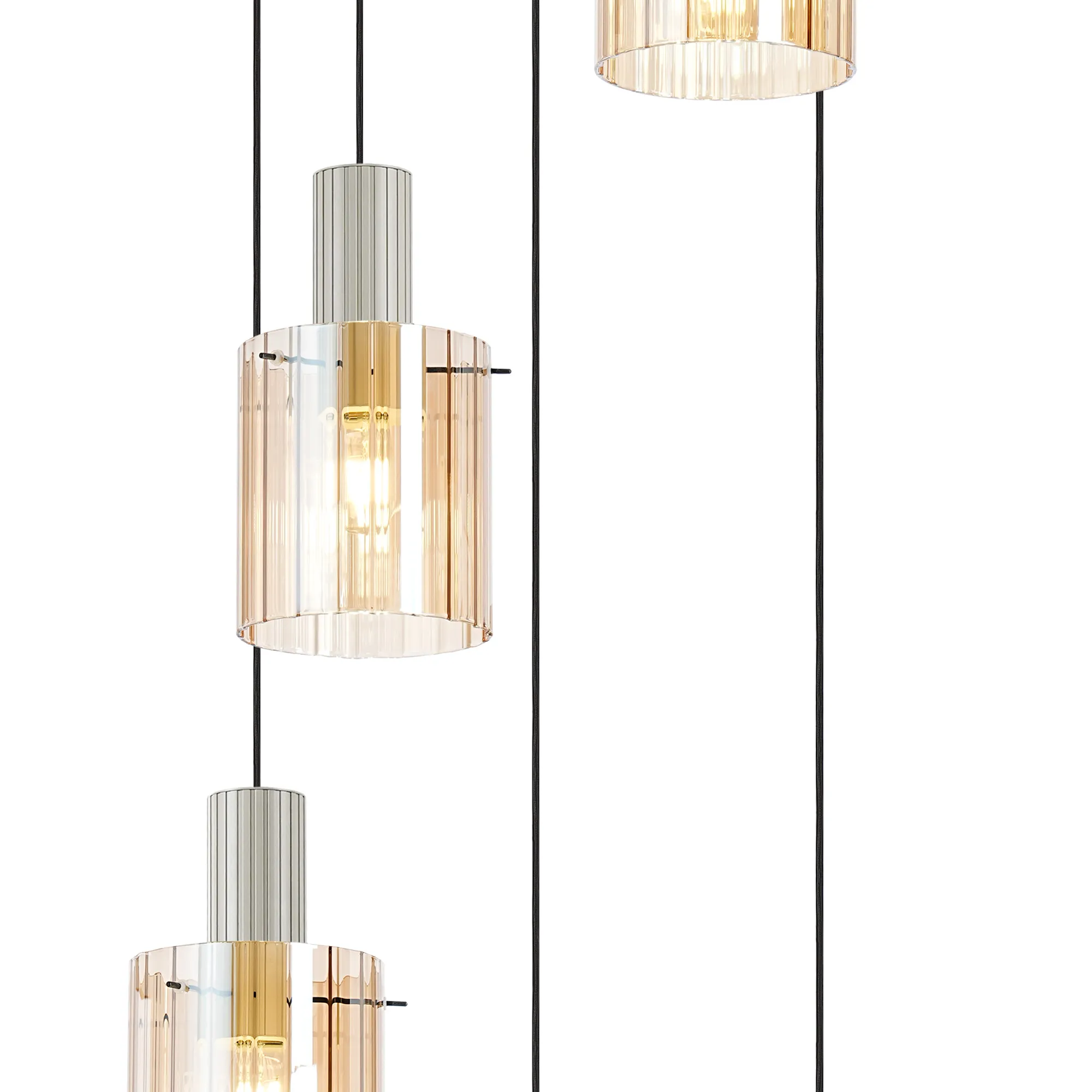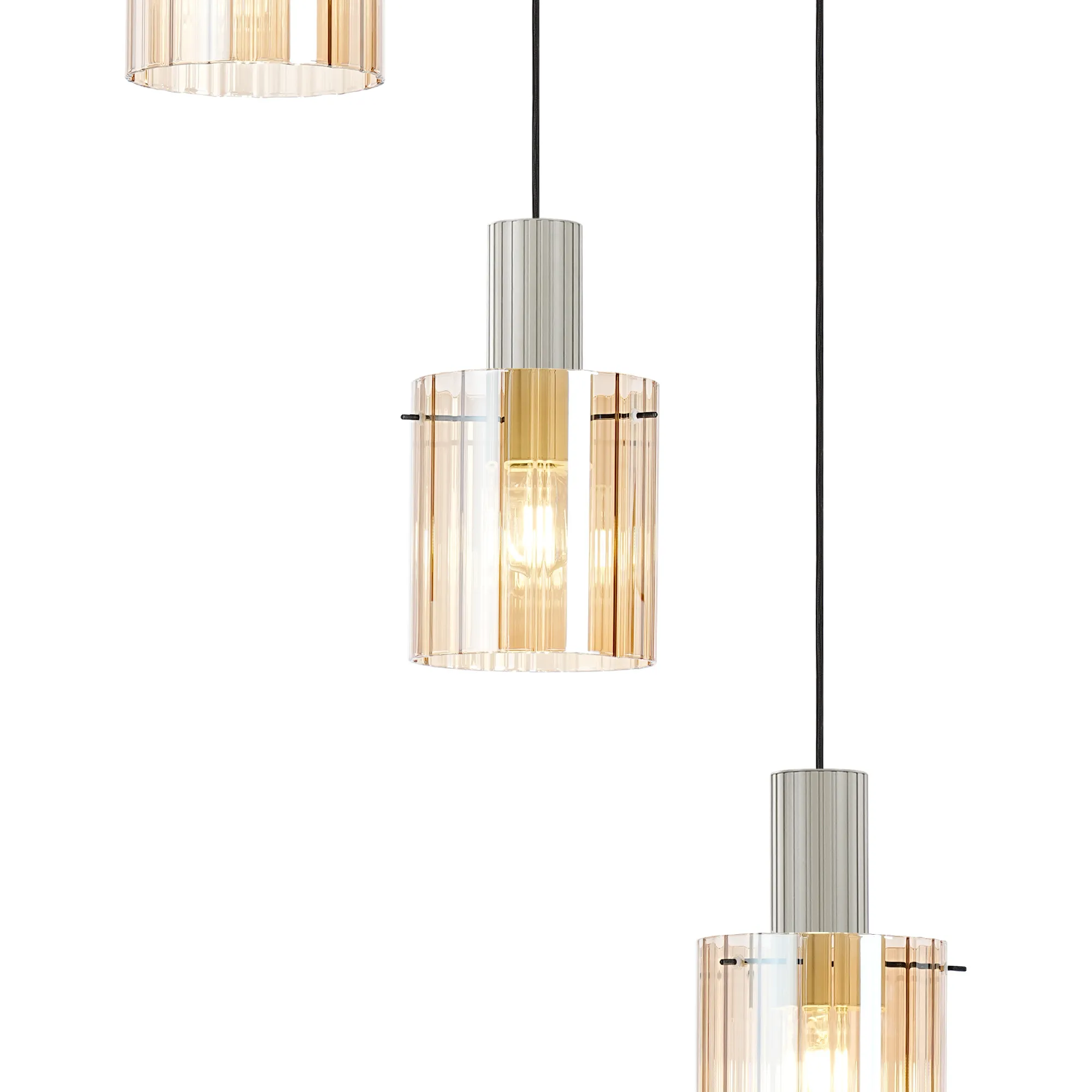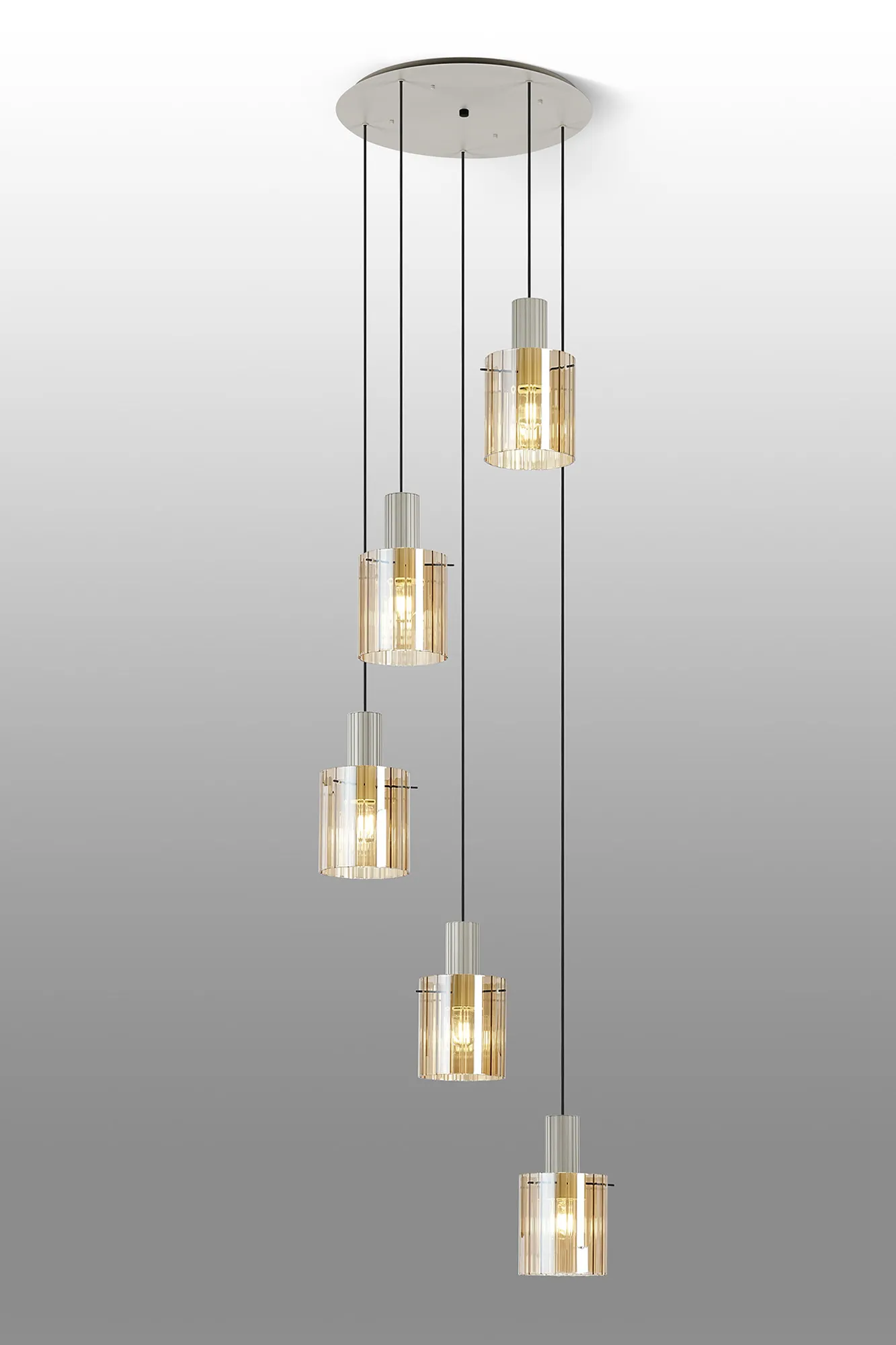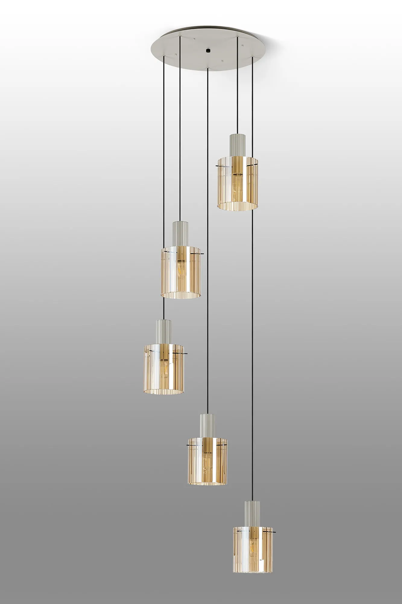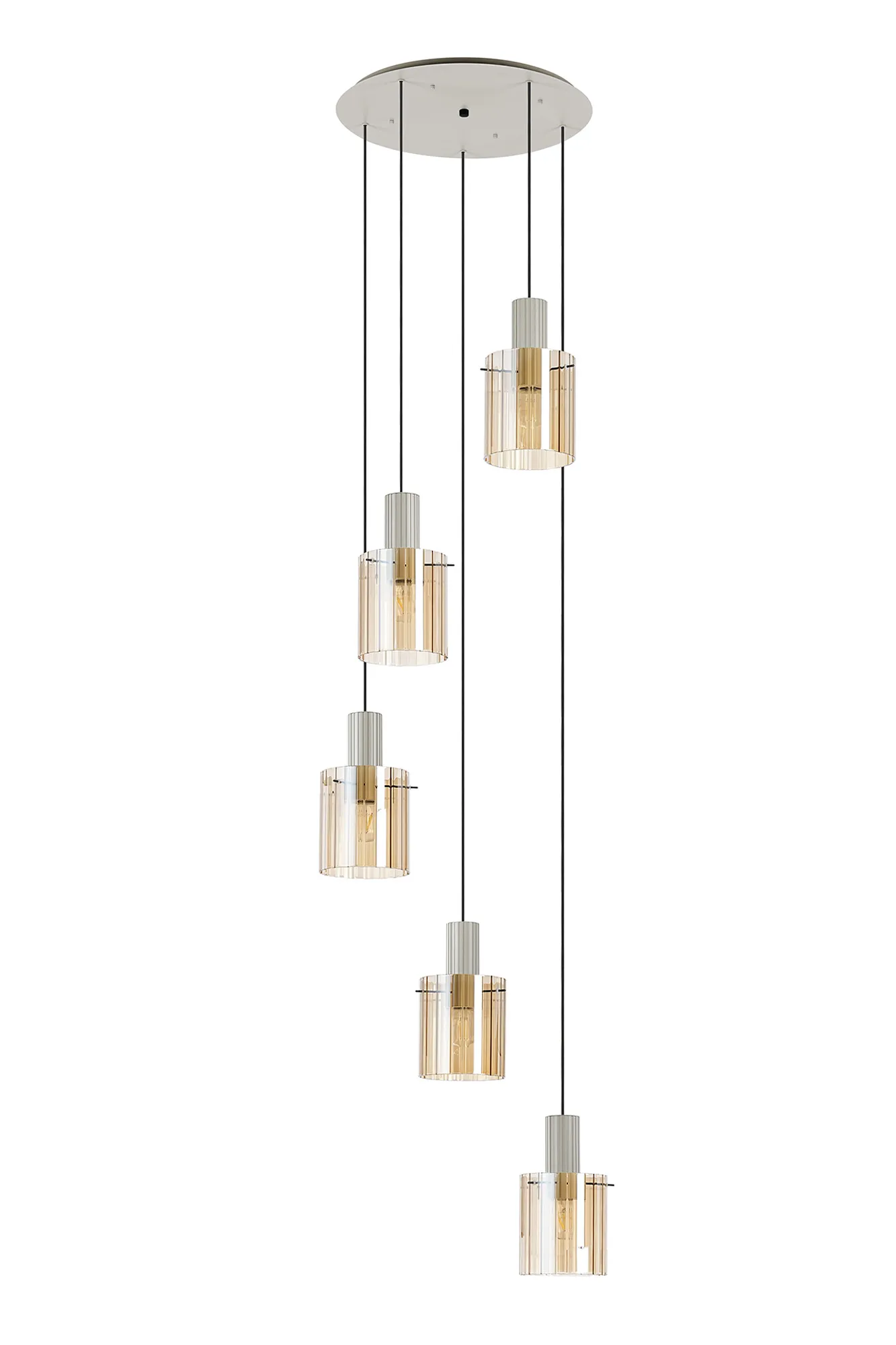 OTHER Mossano Round Pendant, 5 Light Adjustable E27, Beige Stone/Amber Wide Line Glass