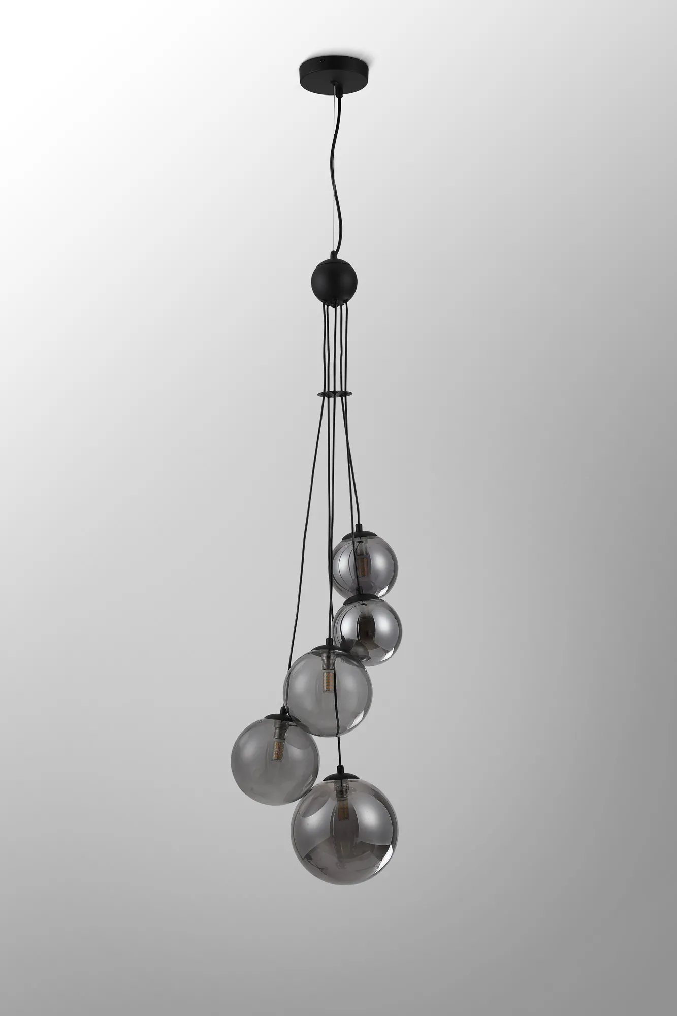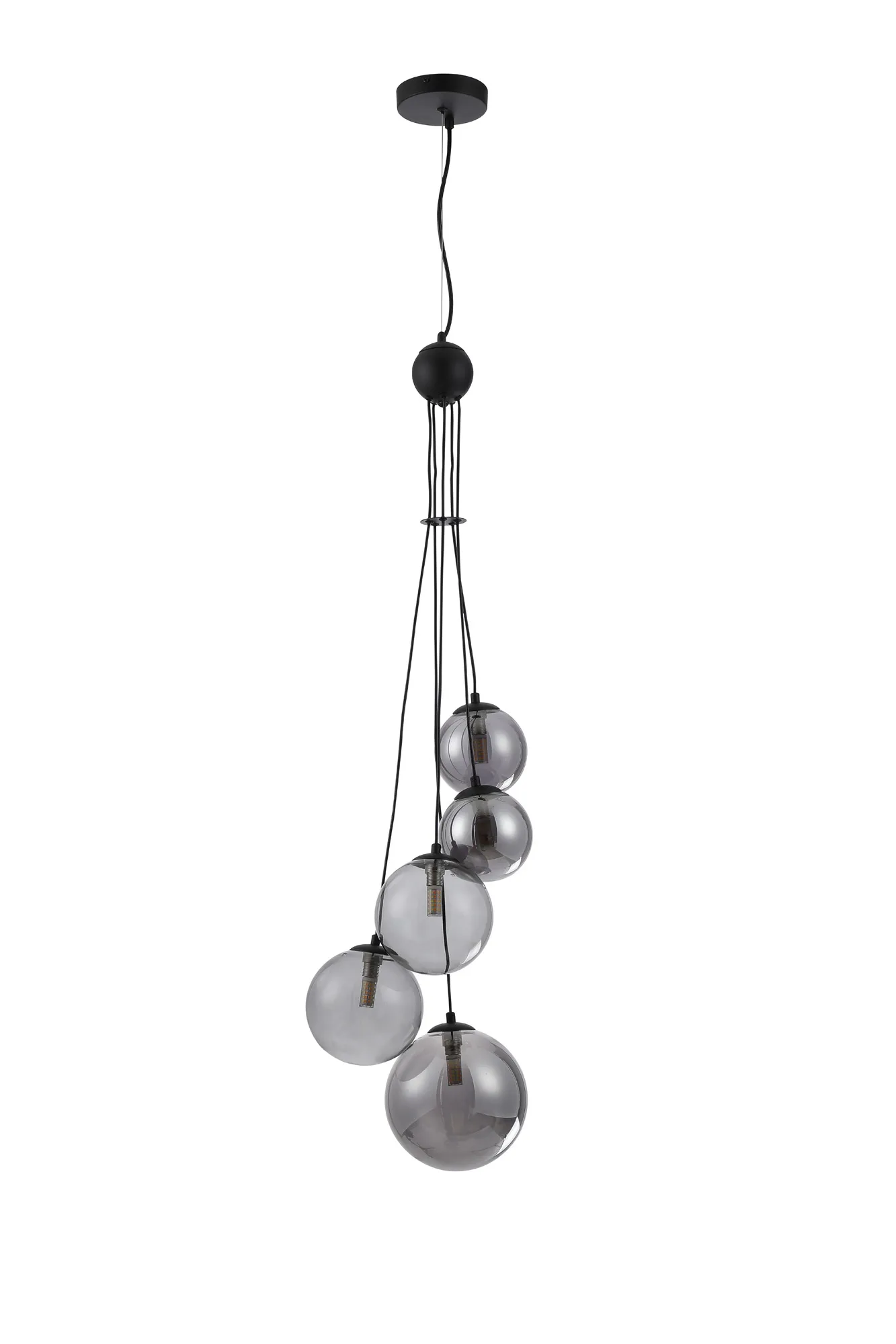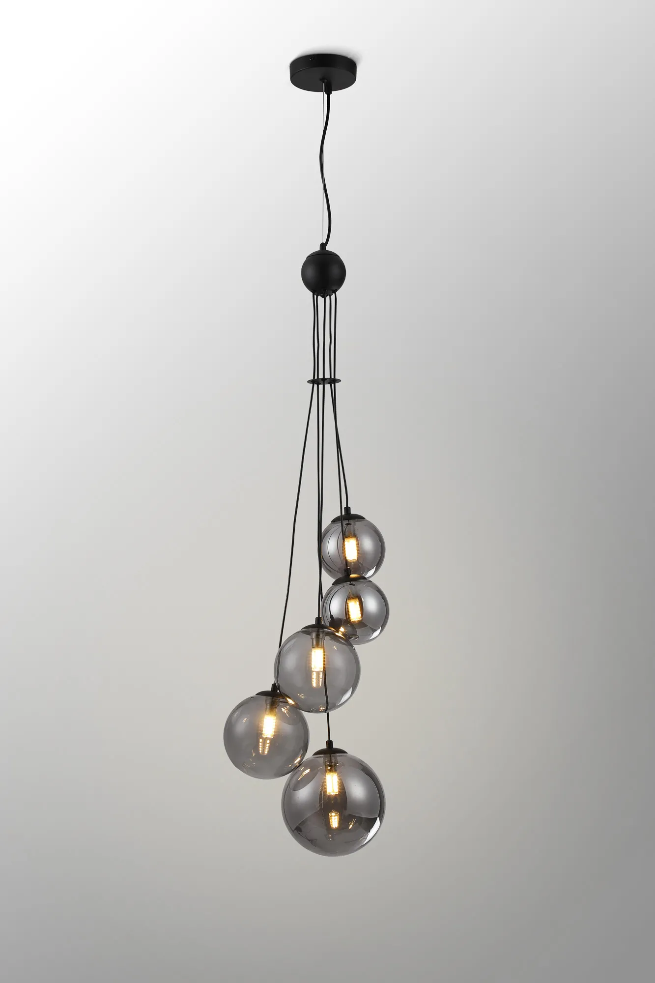 Lanciano 31cm Vertical Linear Telescopic Pendant, 6 x G9, Satin Black, Smoke Plated Mixed Size Glass