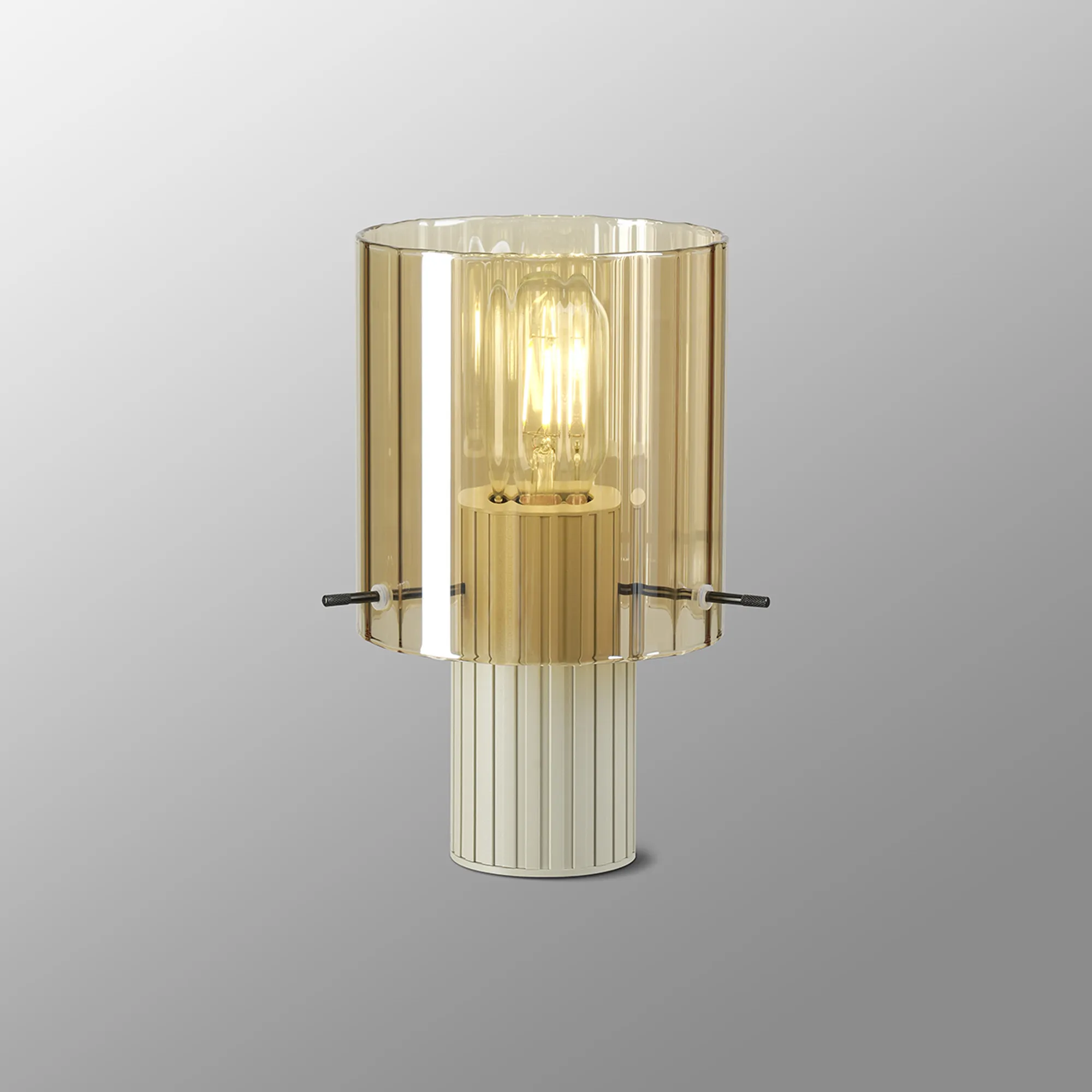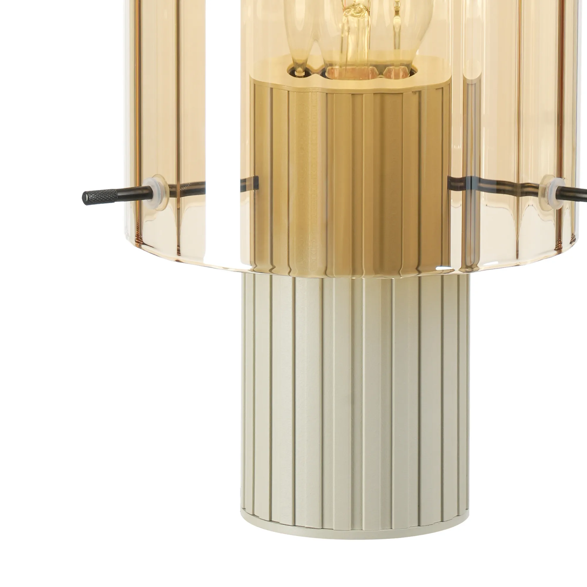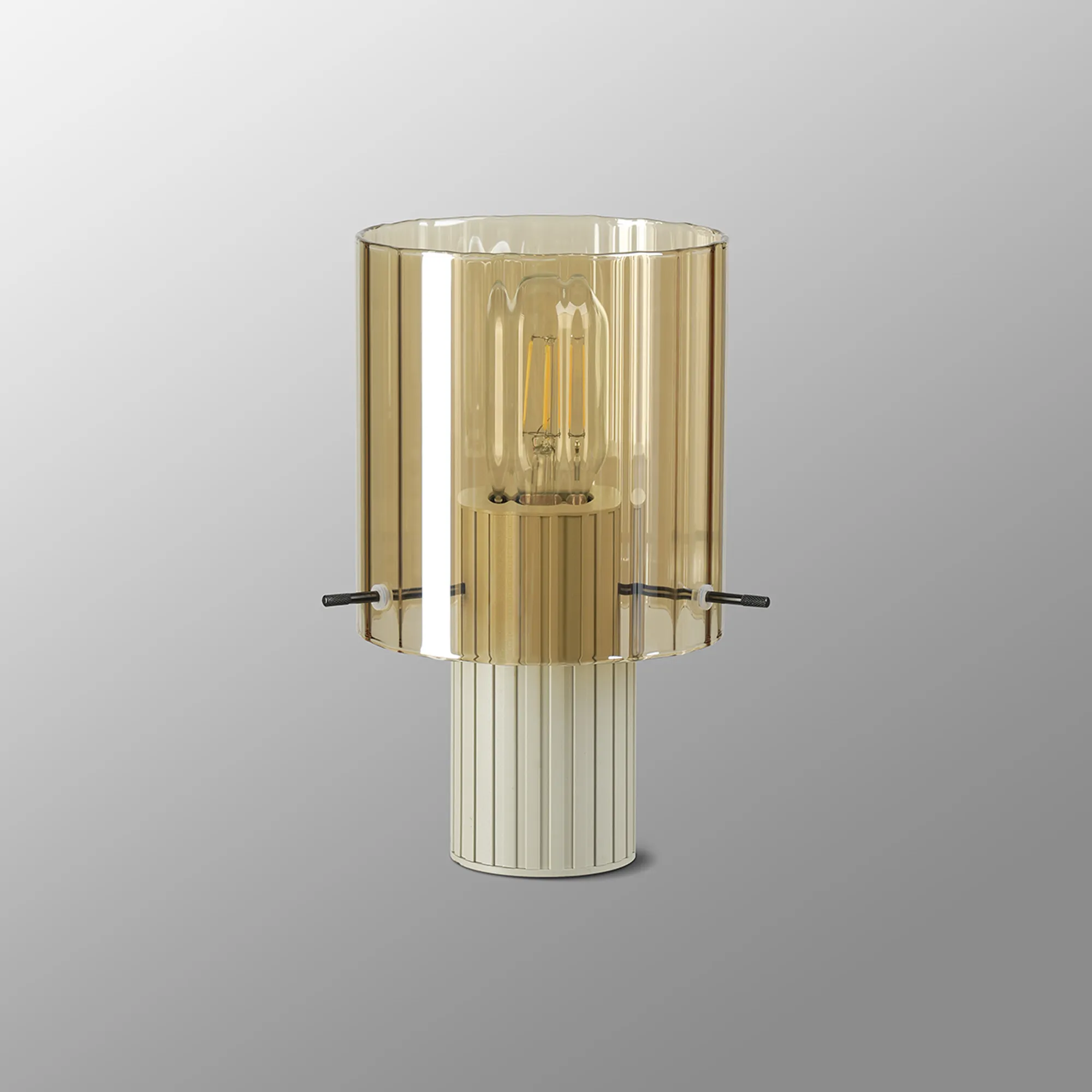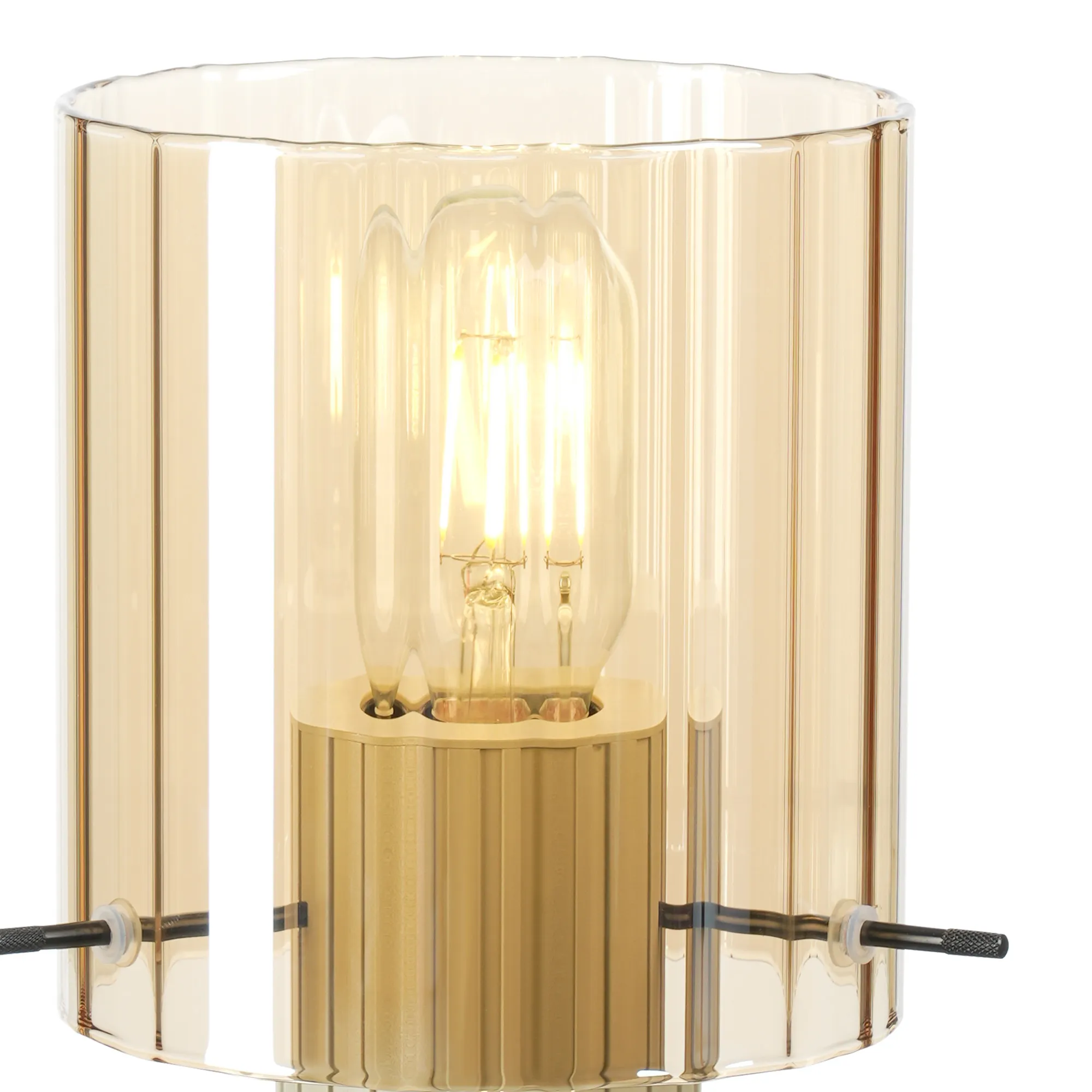 OTHER Mossano Table Lamp, 1 Light E27, Beige Stone/Amber Wide Line Glass