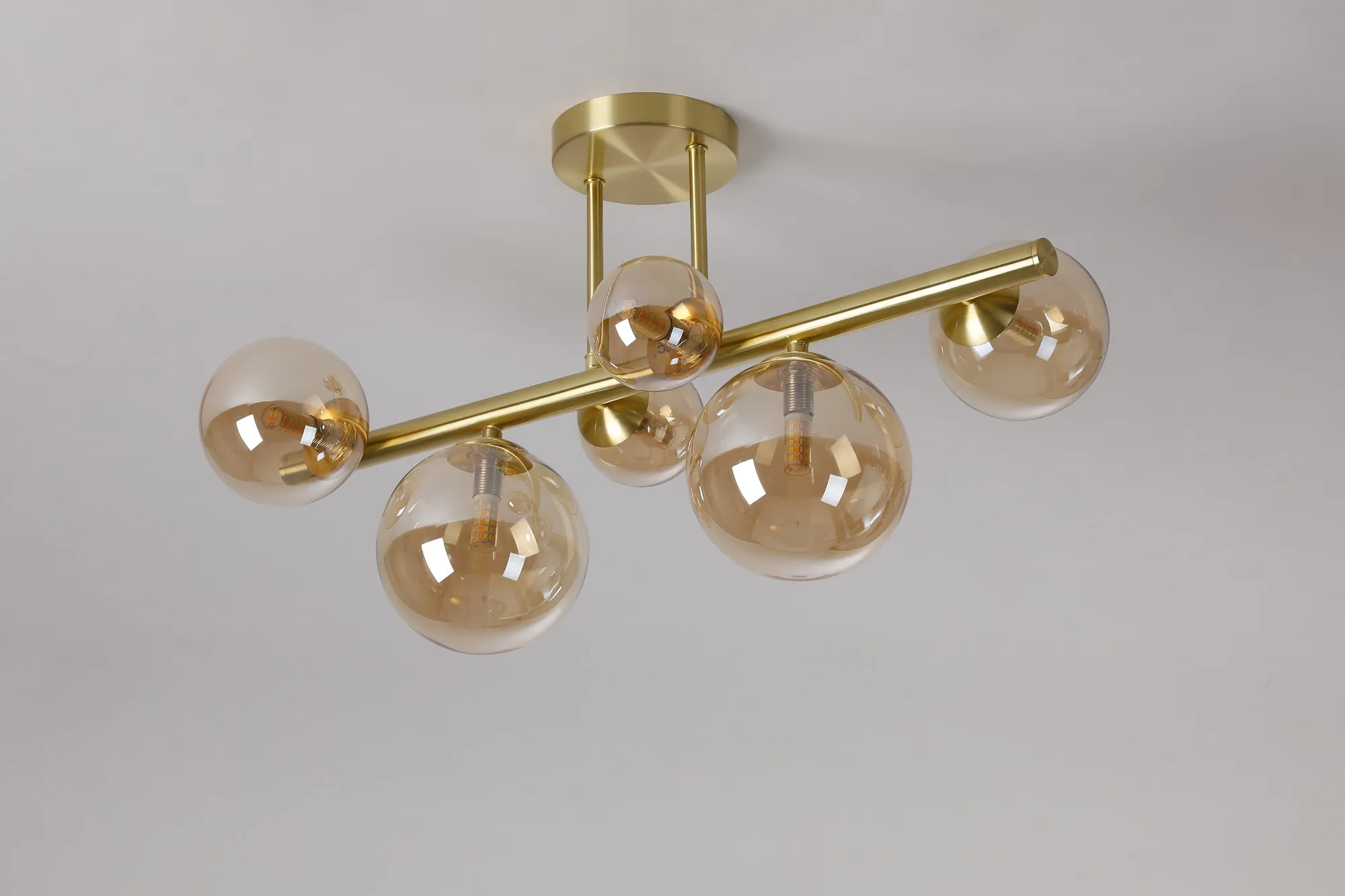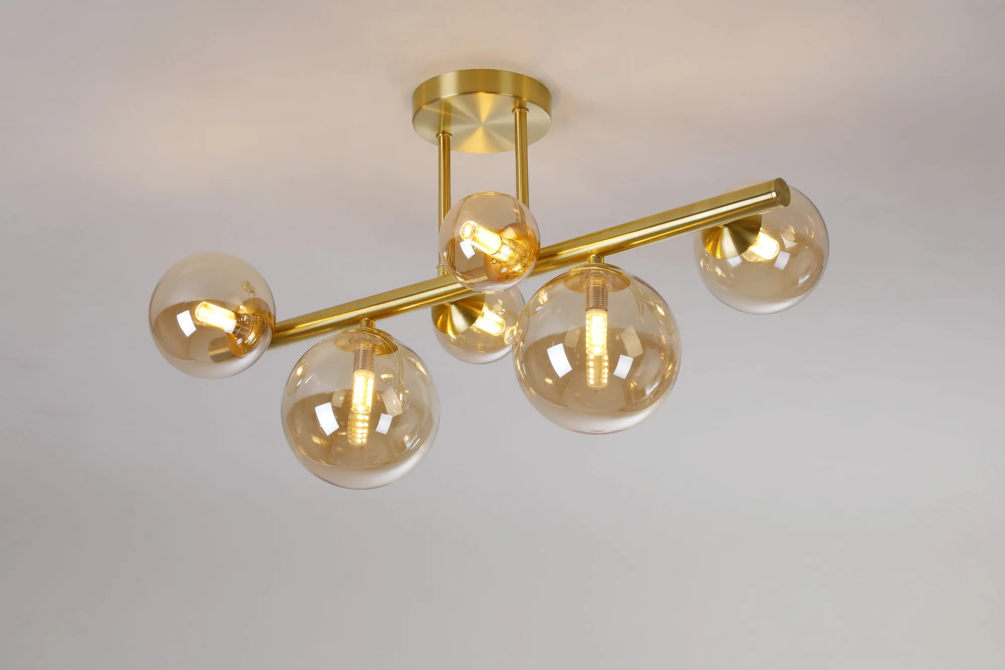 OTHER Lanciano Semi Flush Ceiling Light, 6 x G9, Satin Gold, Amber Plated Glass