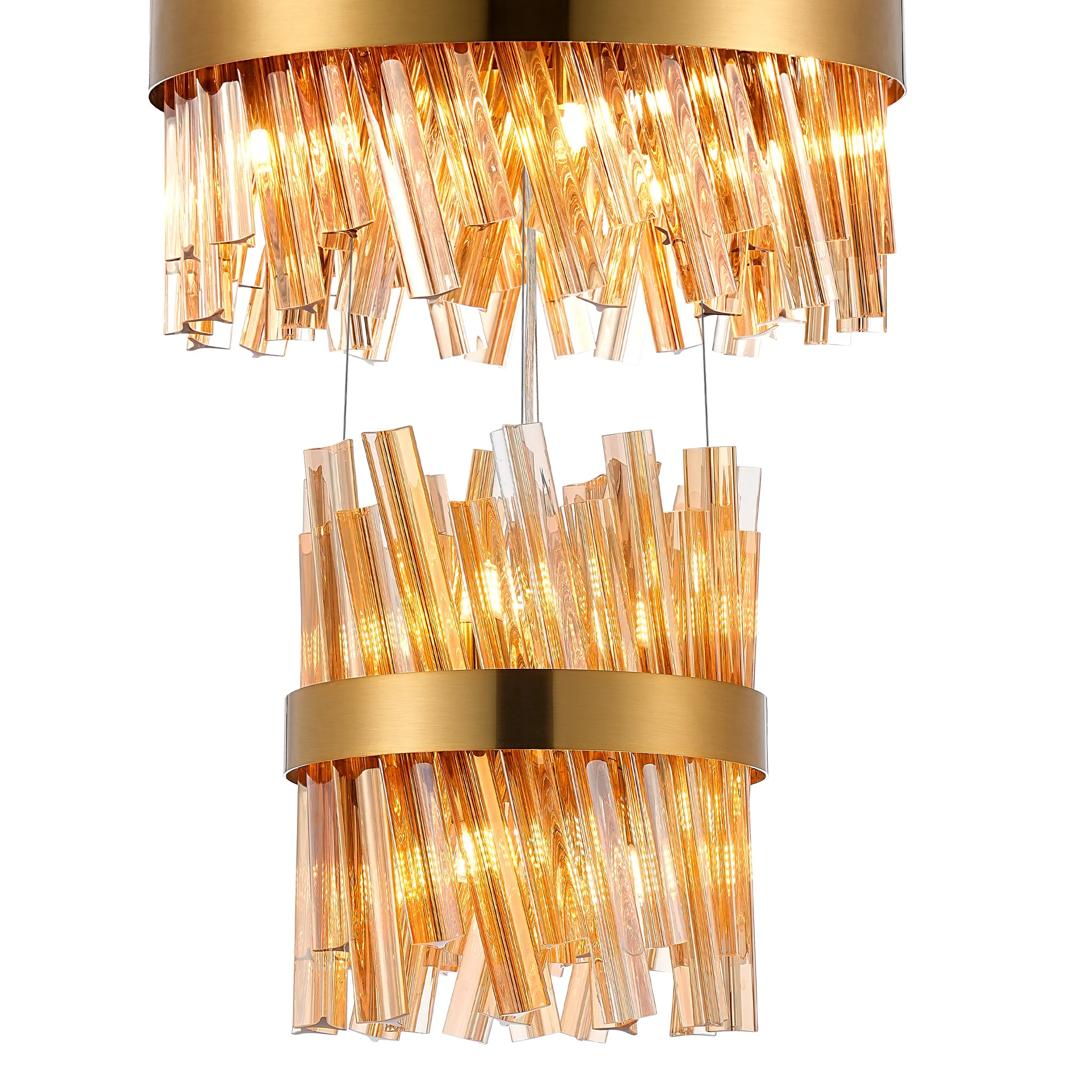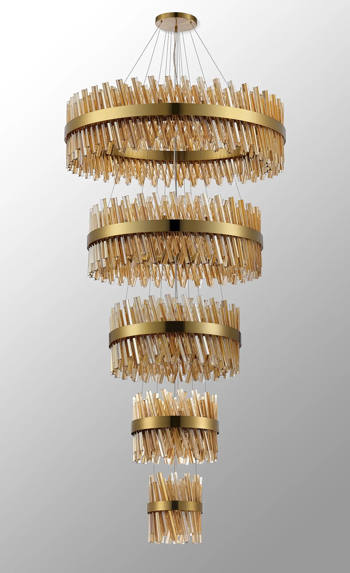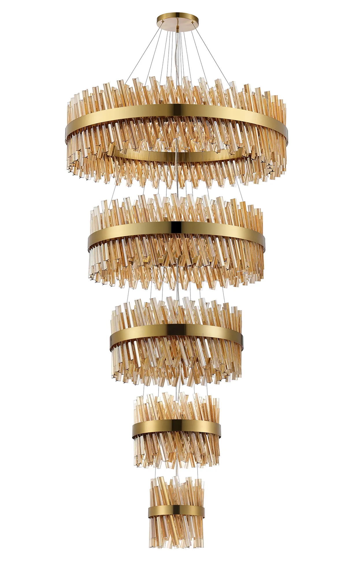 OTHER Fondo 5 Tier 25cm + 40cm + 60cm + 80cm + 1m Pendant, 6 + 10 + 18 + 24 + 32 Light G9, Brass/Amber