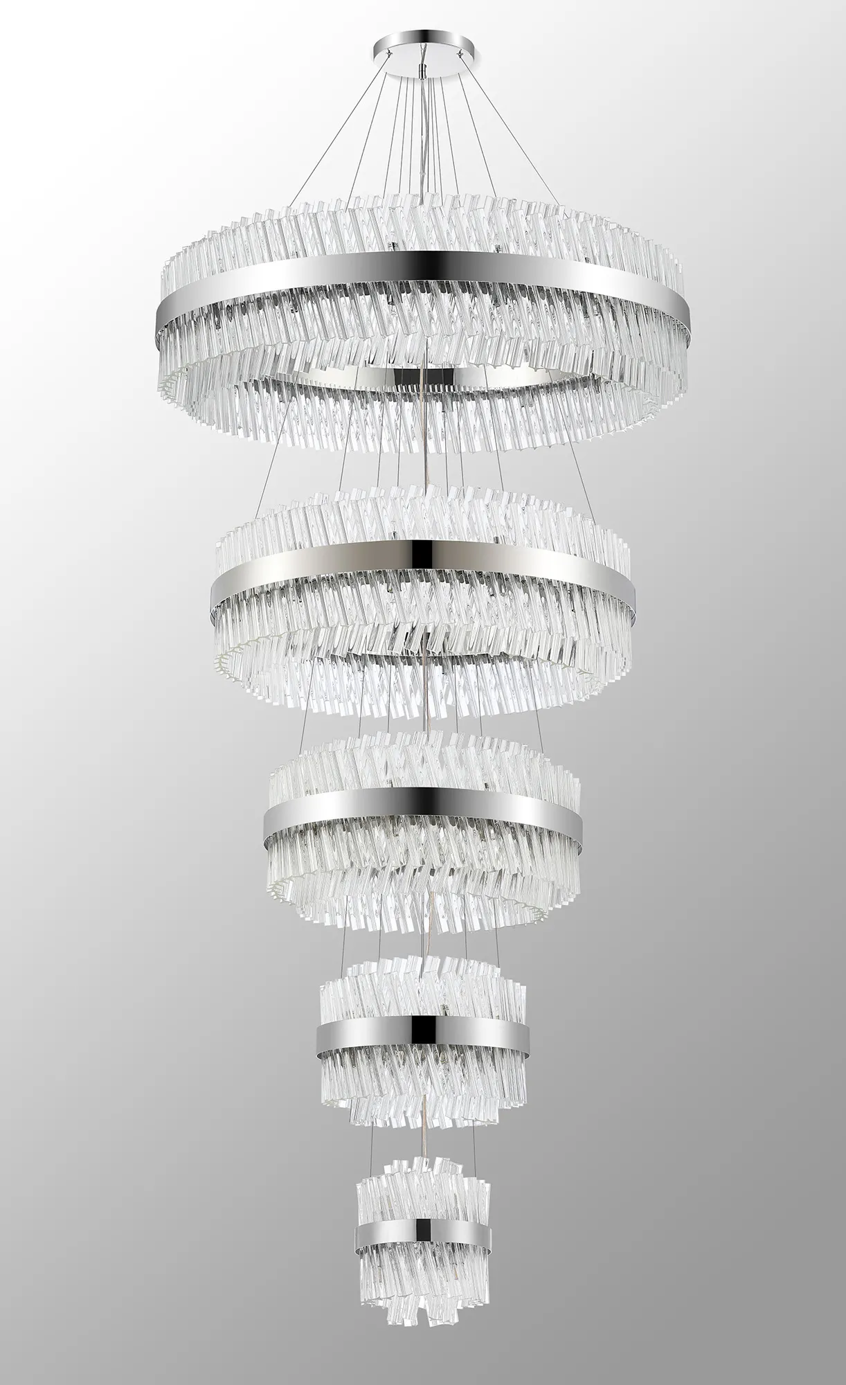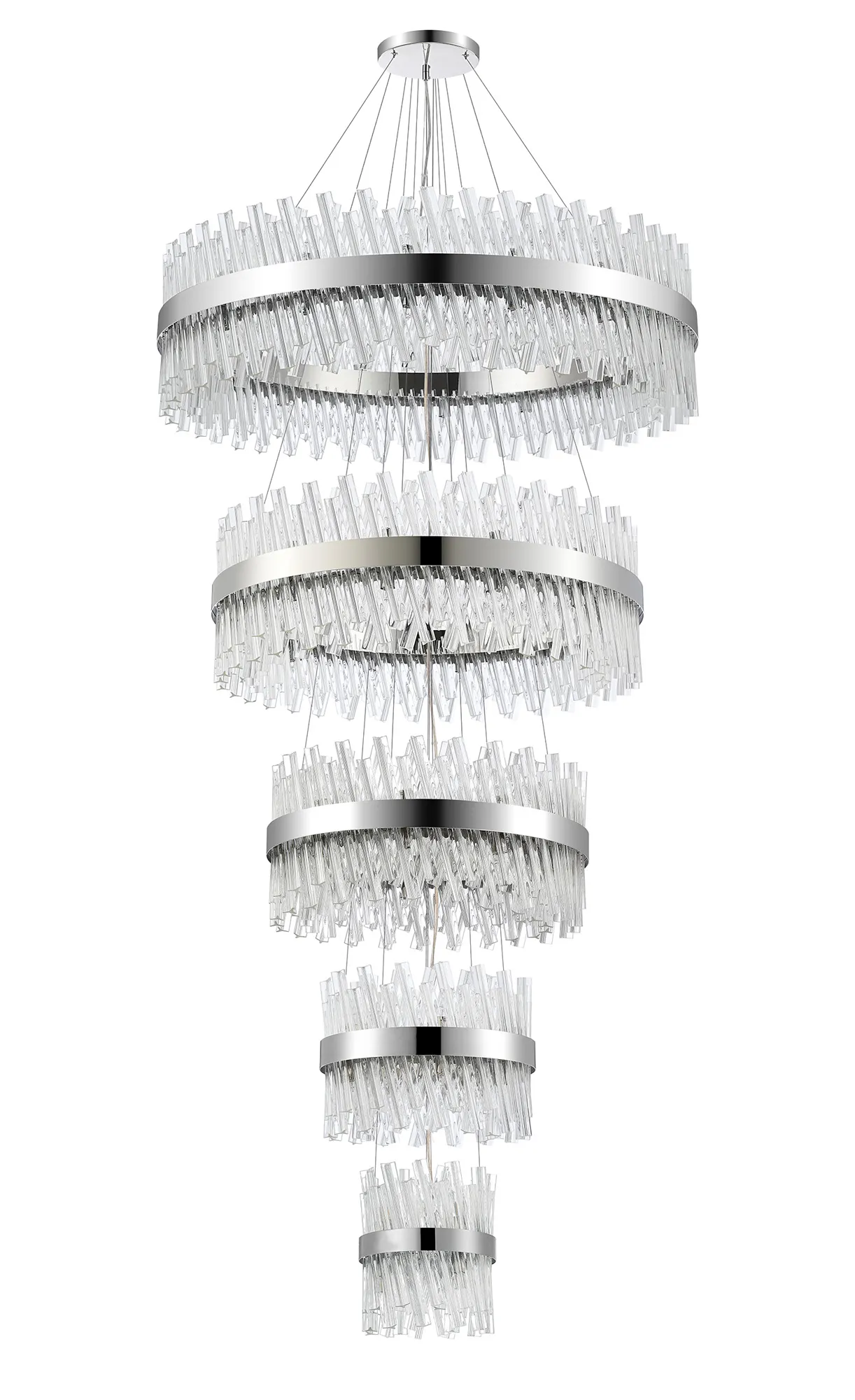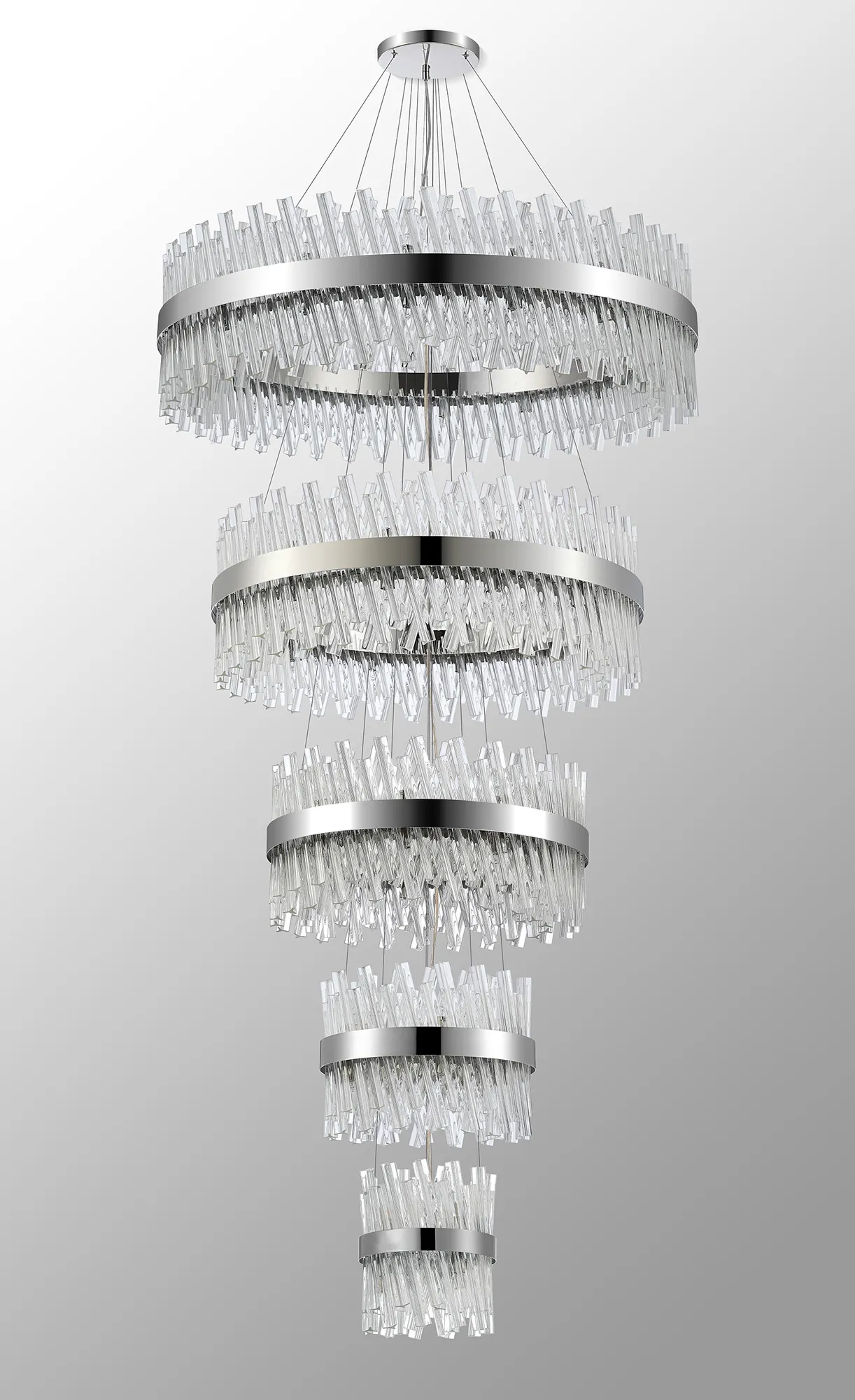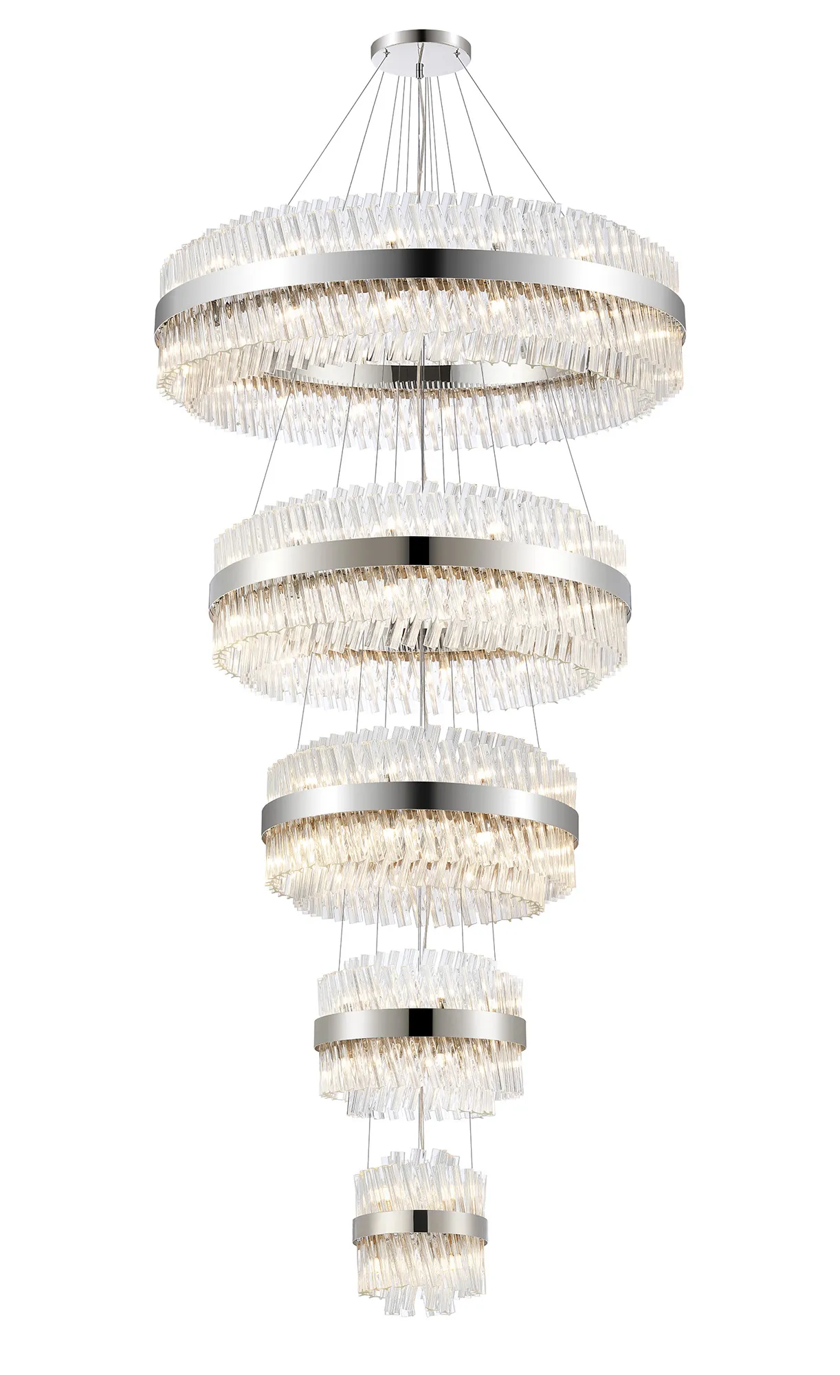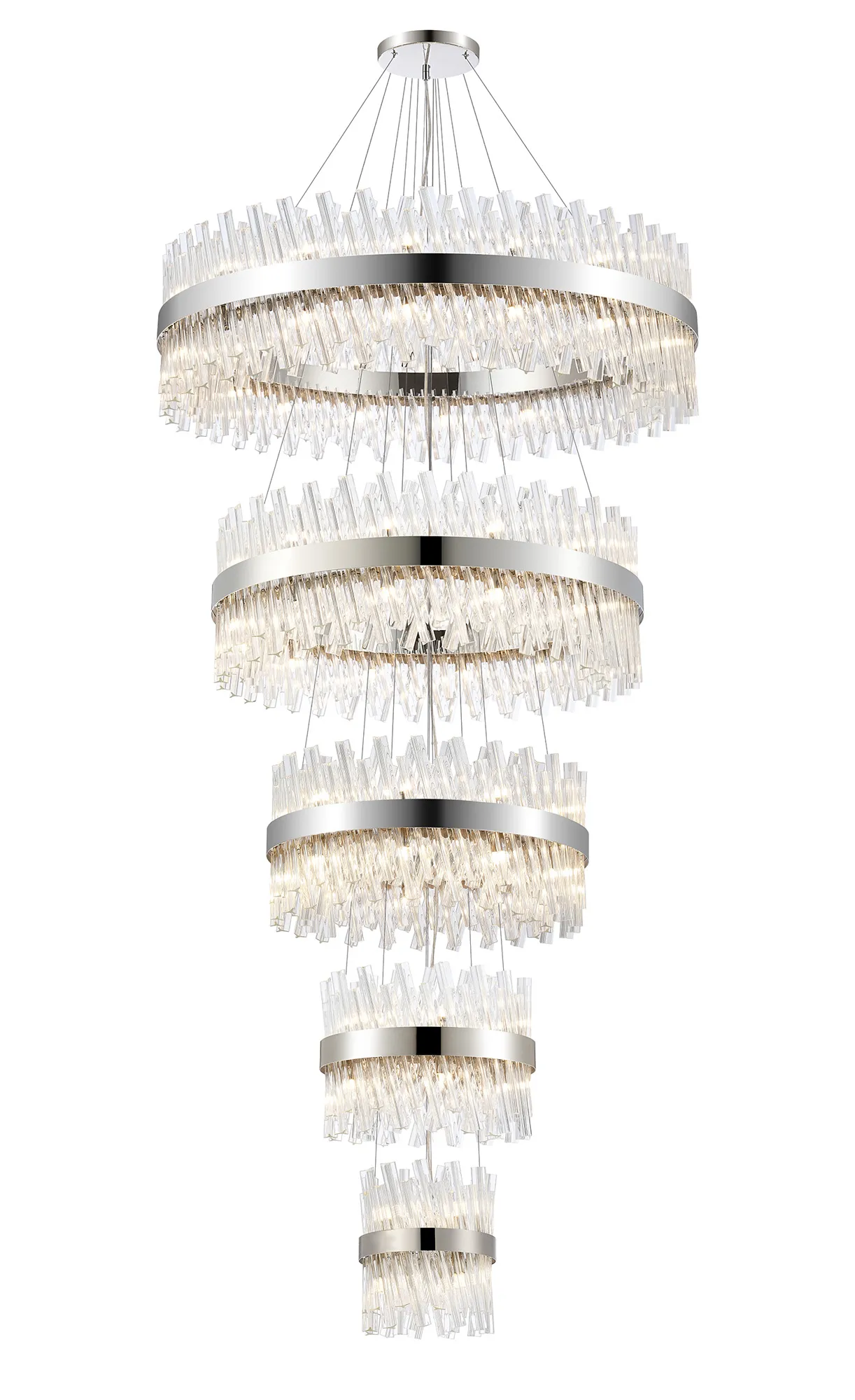 Fondo 4 Tier 25cm + 40cm + 60cm + 80cm Pendant, 6 + 10 + 18 + 24 Light G9, Polished Nickel/Clear, Item Weight: 56kg