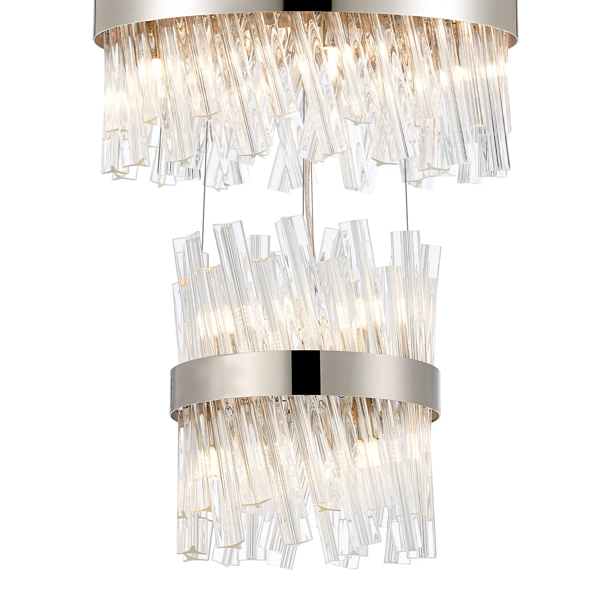 Fondo 4 Tier 25cm + 40cm + 60cm + 80cm Pendant, 6 + 10 + 18 + 24 Light G9, Polished Nickel/Clear