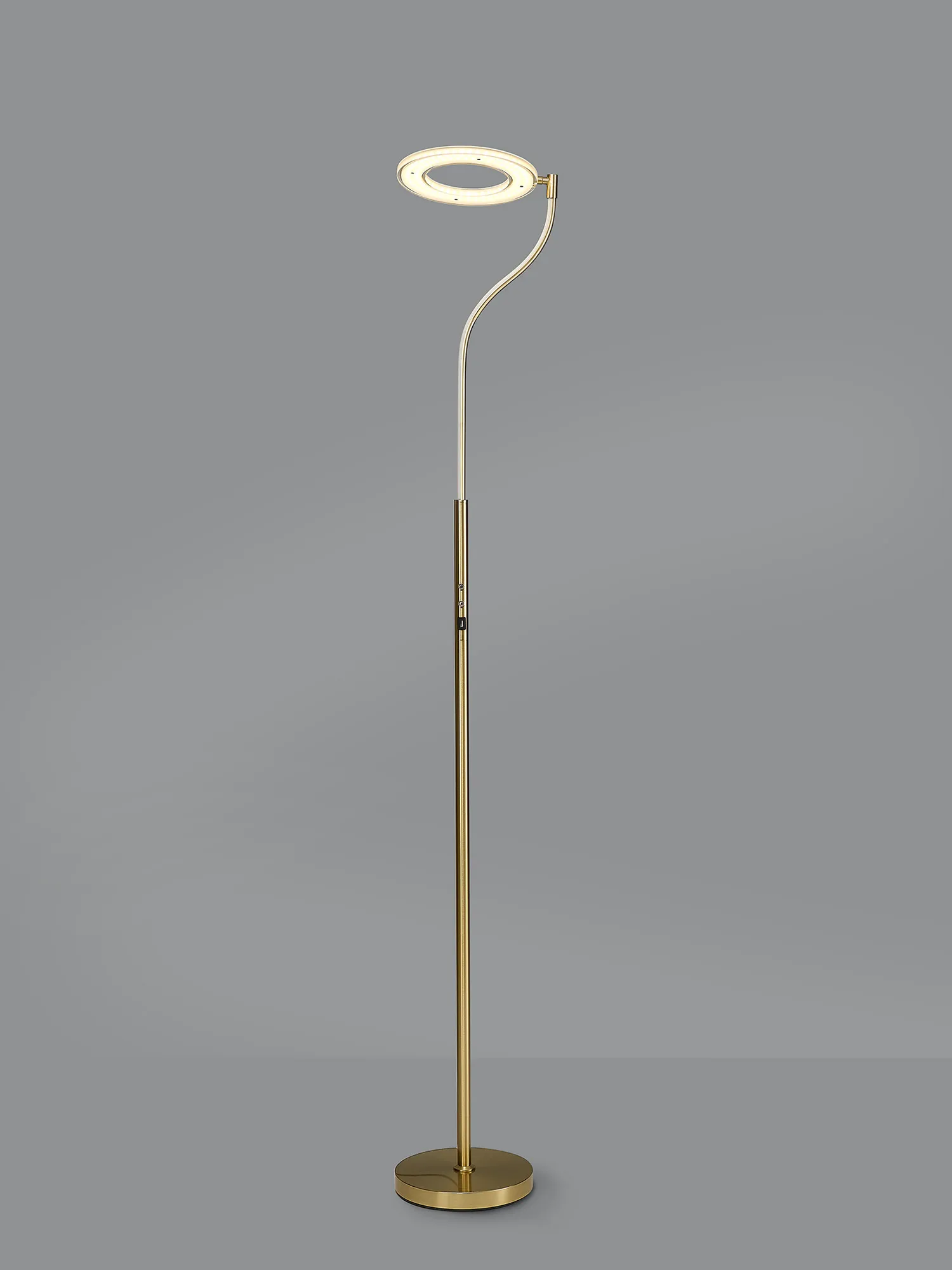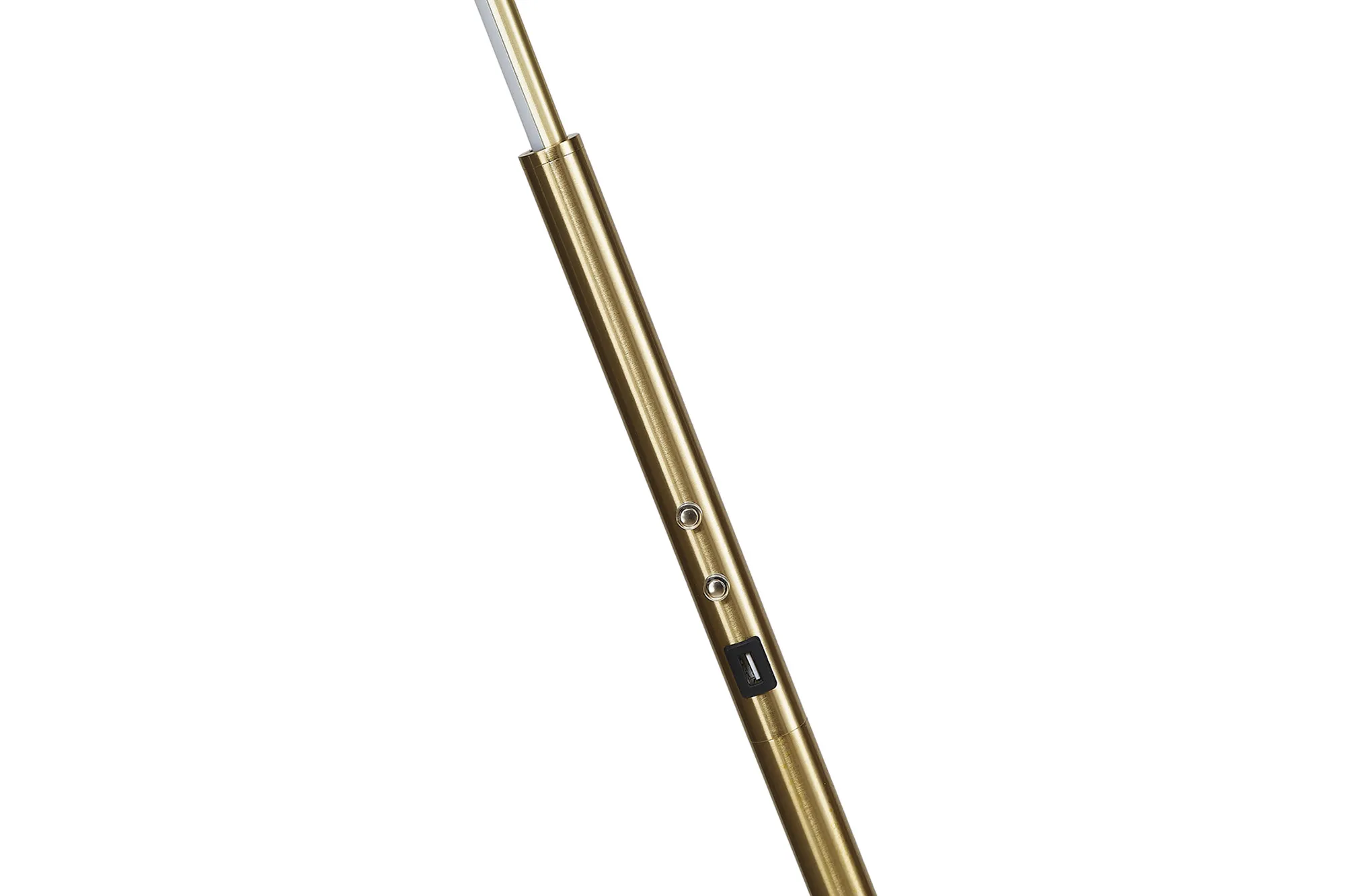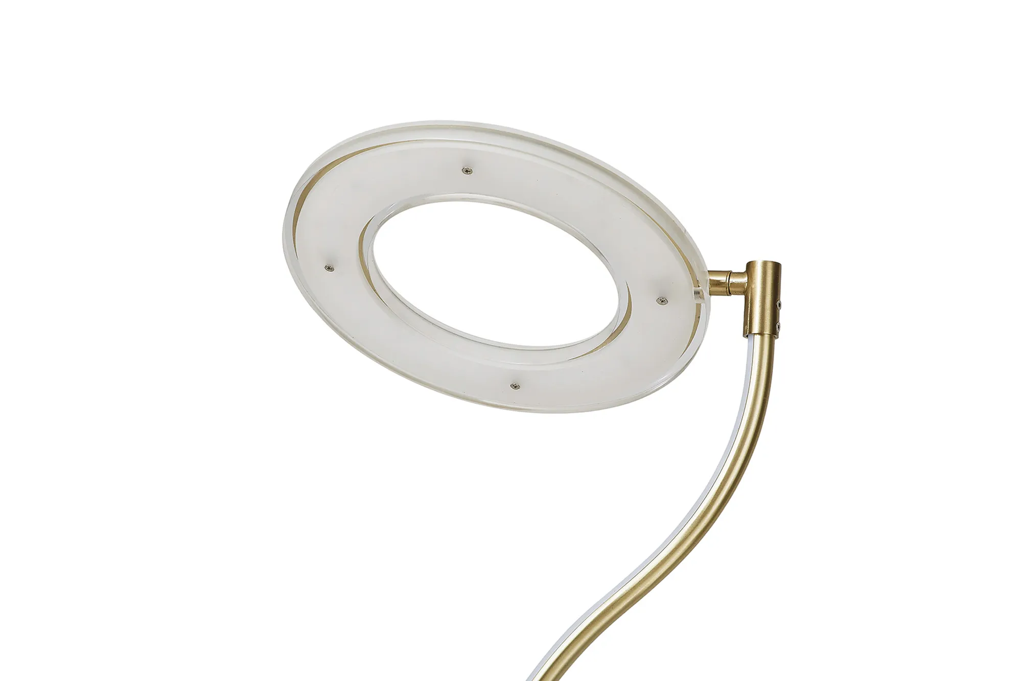 The Arcole floor lamp collection is a new modern, sleek design. Available in two colour finishes; satin gold and satin nickel, it compromises of a slim stem leading into a halo shaped housing of the integral LEDs. The LED head has the ability to pivot creating a uniqueness and exclusivity as well as heightened control of the lights directionality. To even further amplify the range's appeal, the floor lamp also includes a touch dimmer feature and USB charging ports.