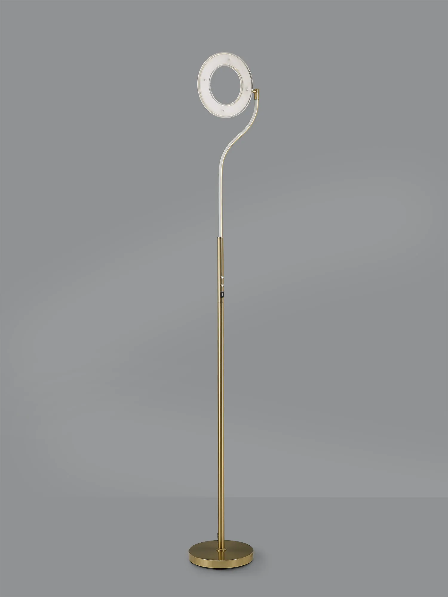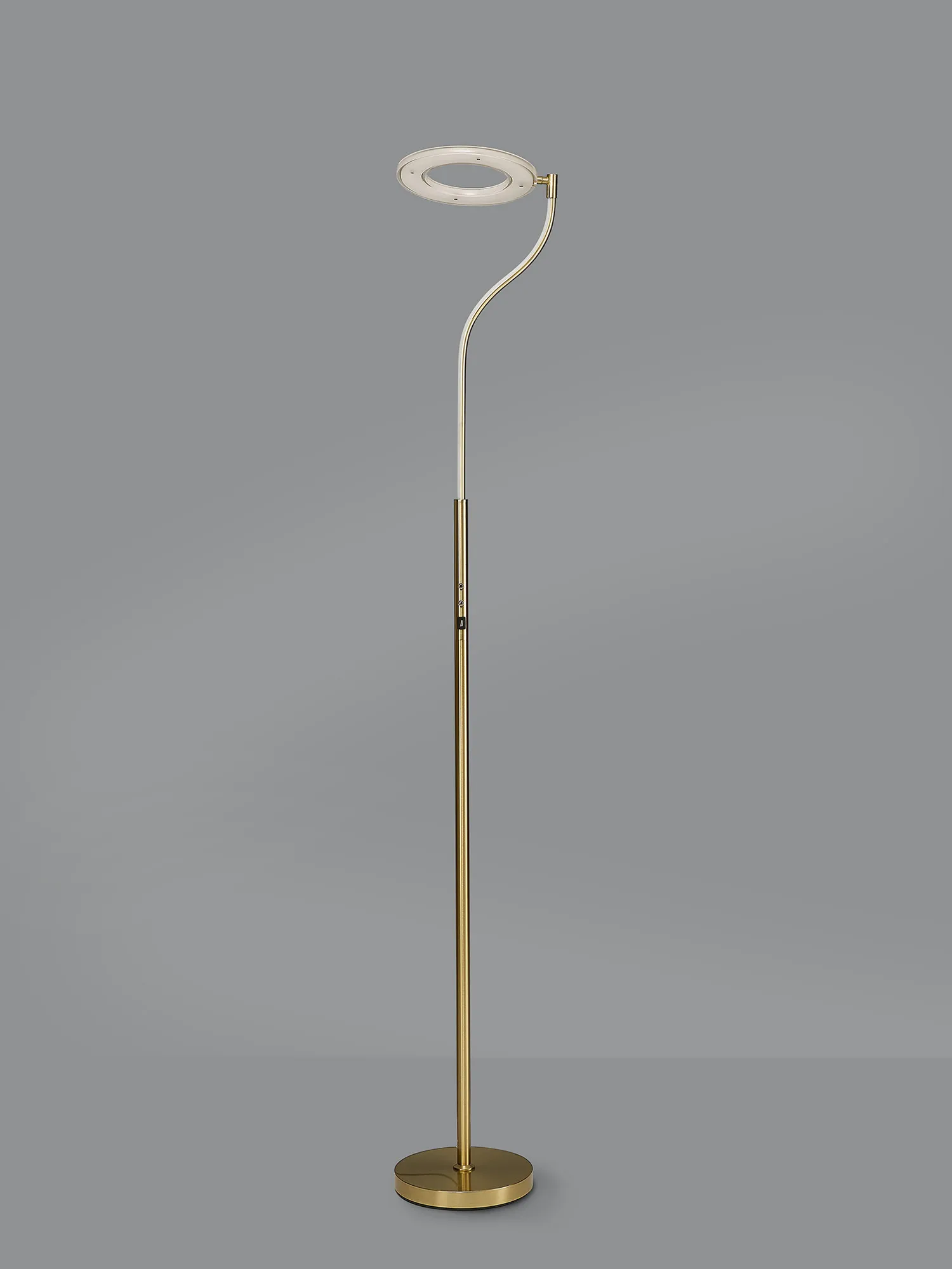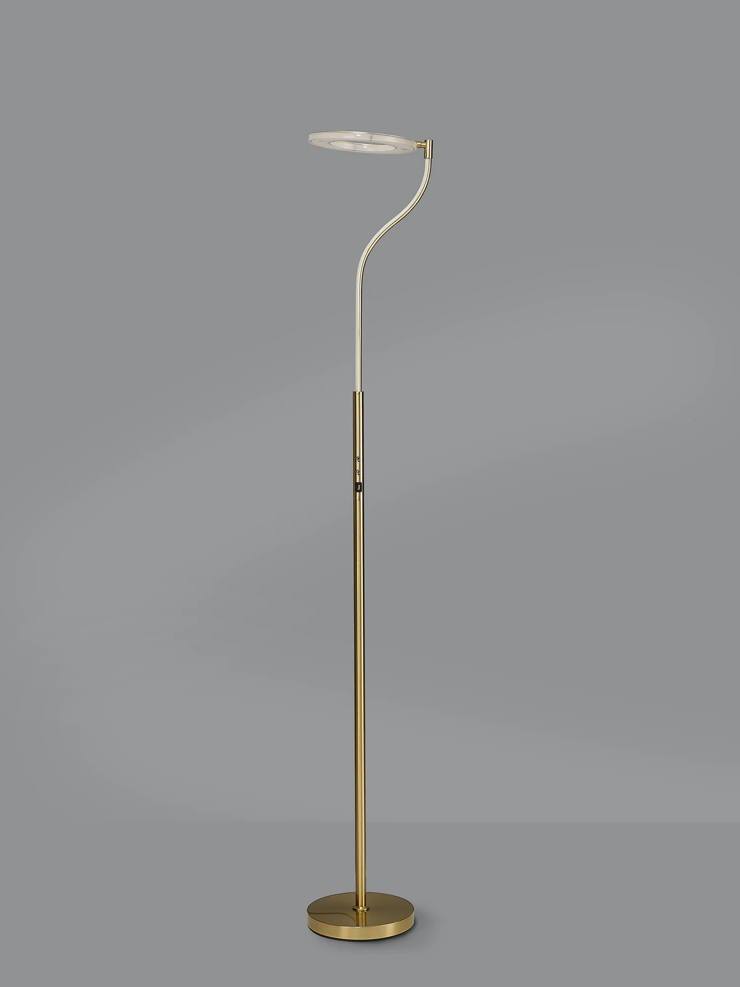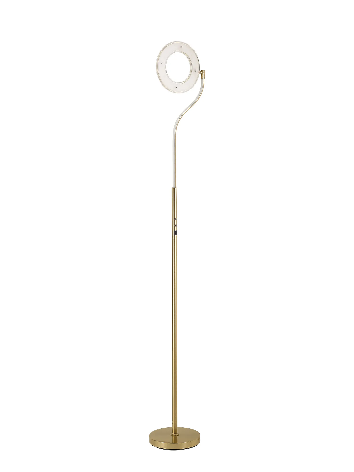 The Arcole floor lamp collection is a new modern, sleek design. Available in two colour finishes; satin gold and satin nickel, it compromises of a slim stem leading into a halo shaped housing of the integral LEDs. The LED head has the ability to pivot creating a uniqueness and exclusivity as well as heightened control of the lights directionality. To even further amplify the range's appeal, the floor lamp also includes a touch dimmer feature and USB charging ports.
