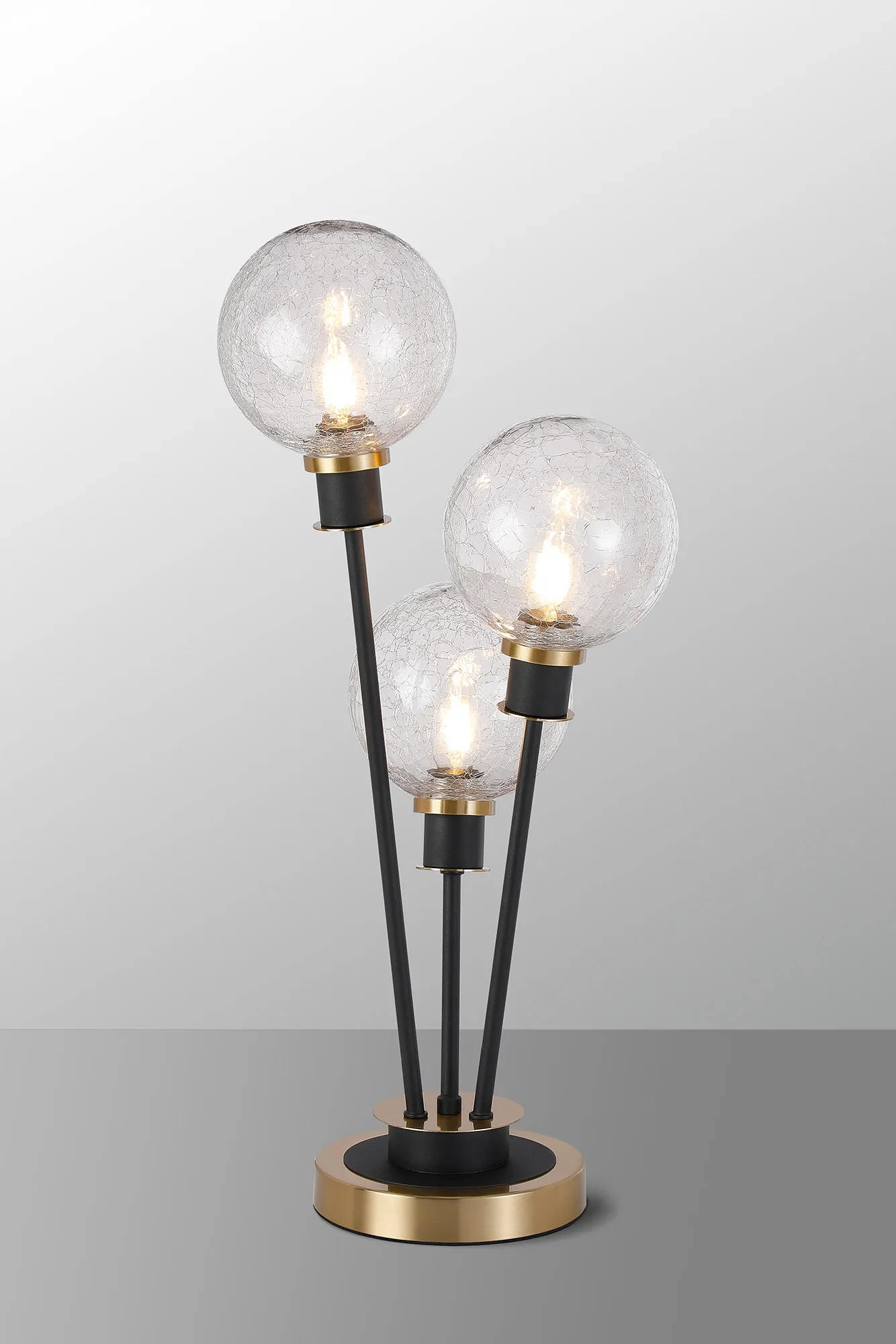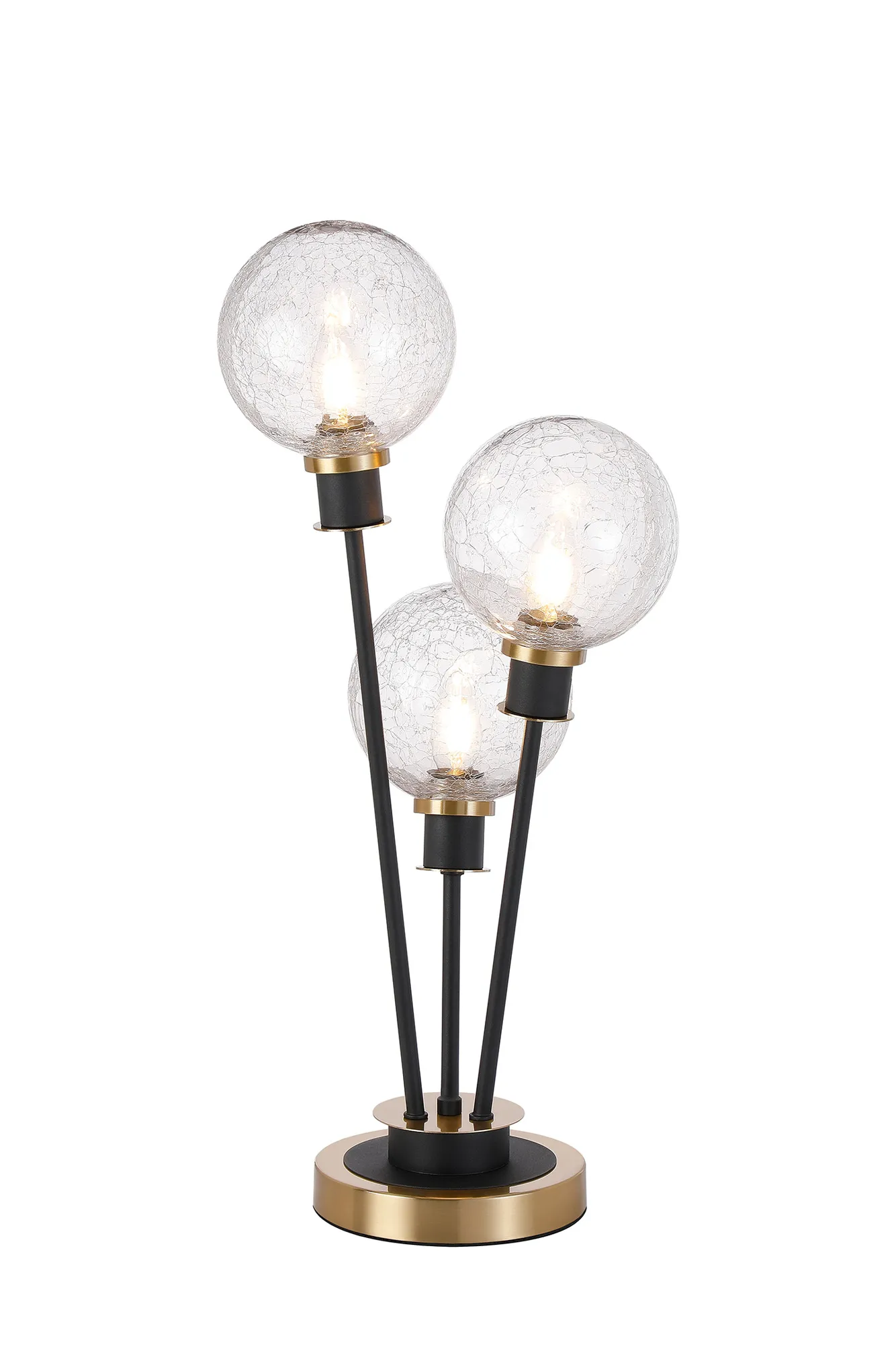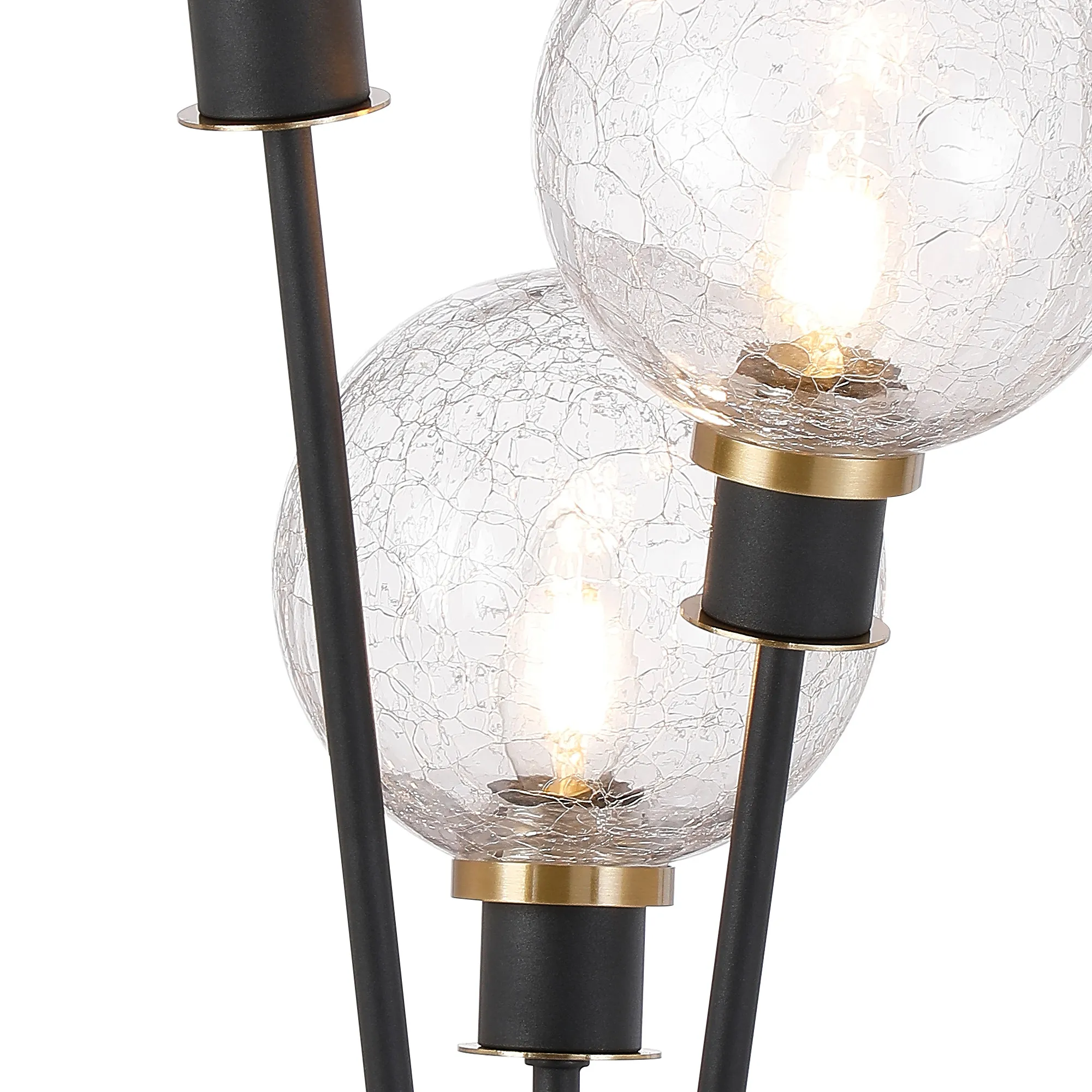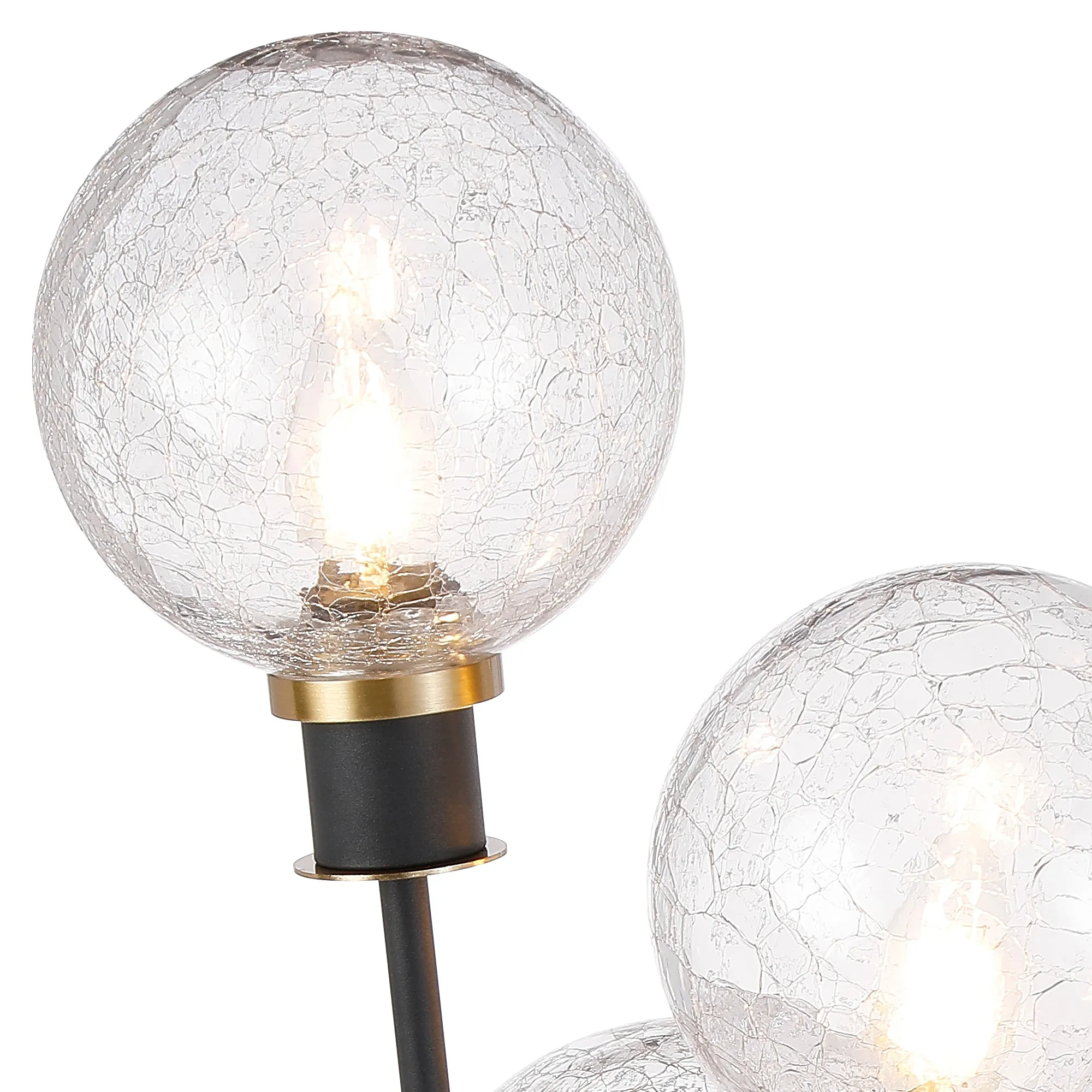 Castana Floor Lamp, 5 Light E14, With 15cm Round Crackled Glass Shade Brass, Clear, Satin Black