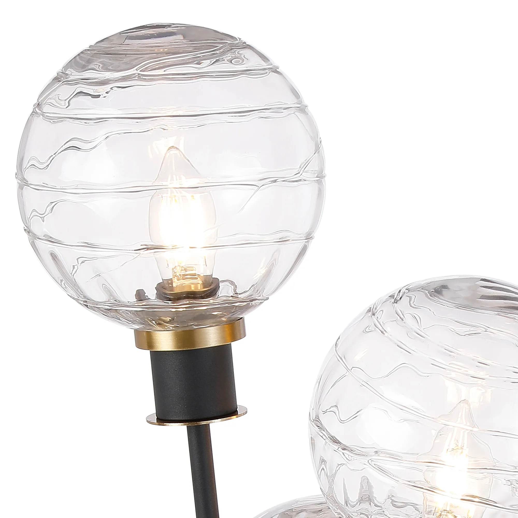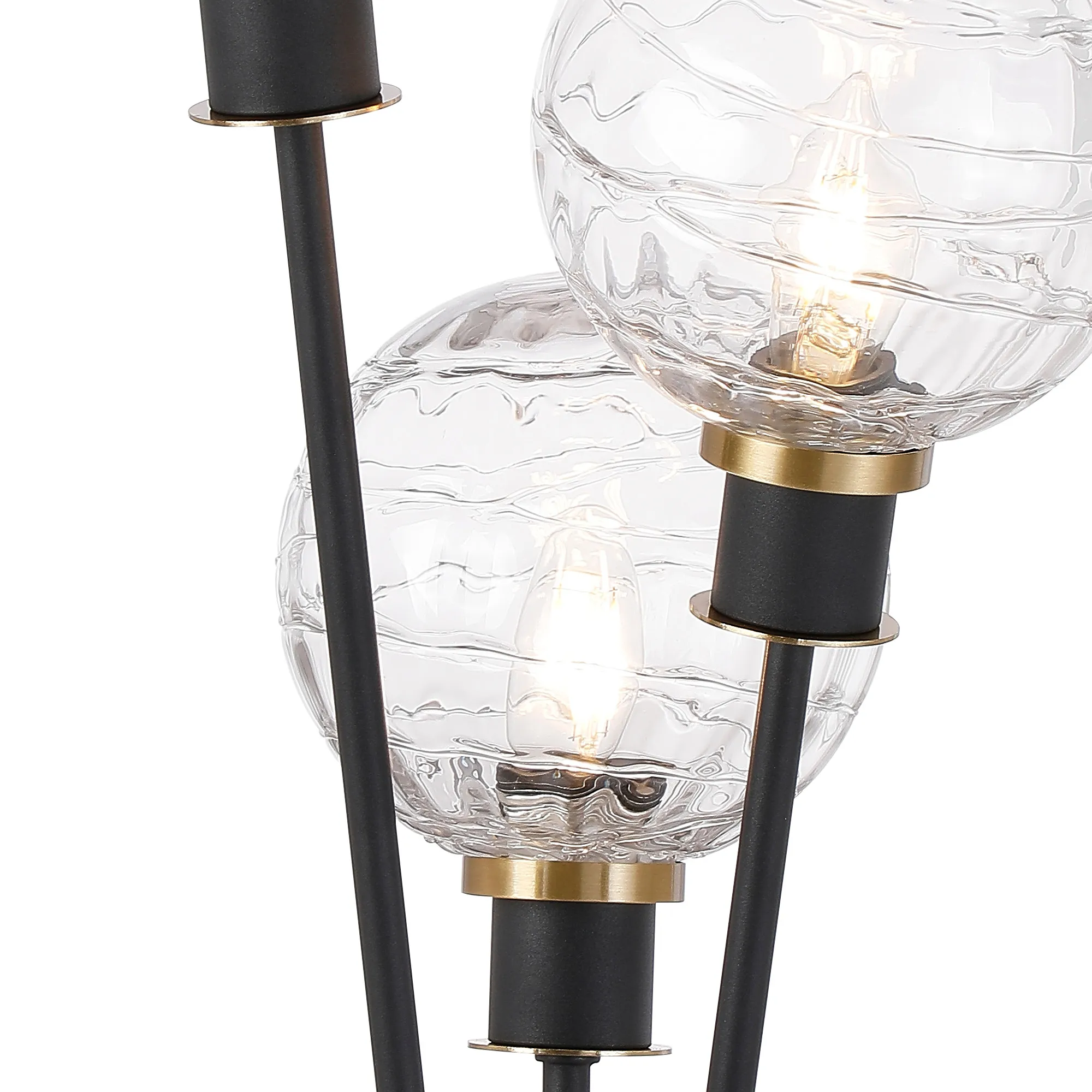 Castana Floor Lamp, 5 Light E14, With 15cm Round Textured Melting Glass Shade Brass, Clear, Satin Black
