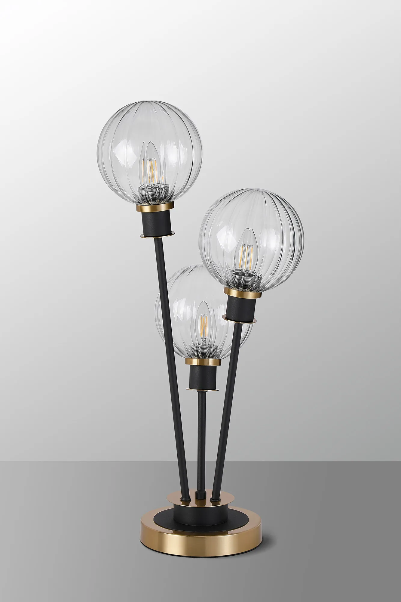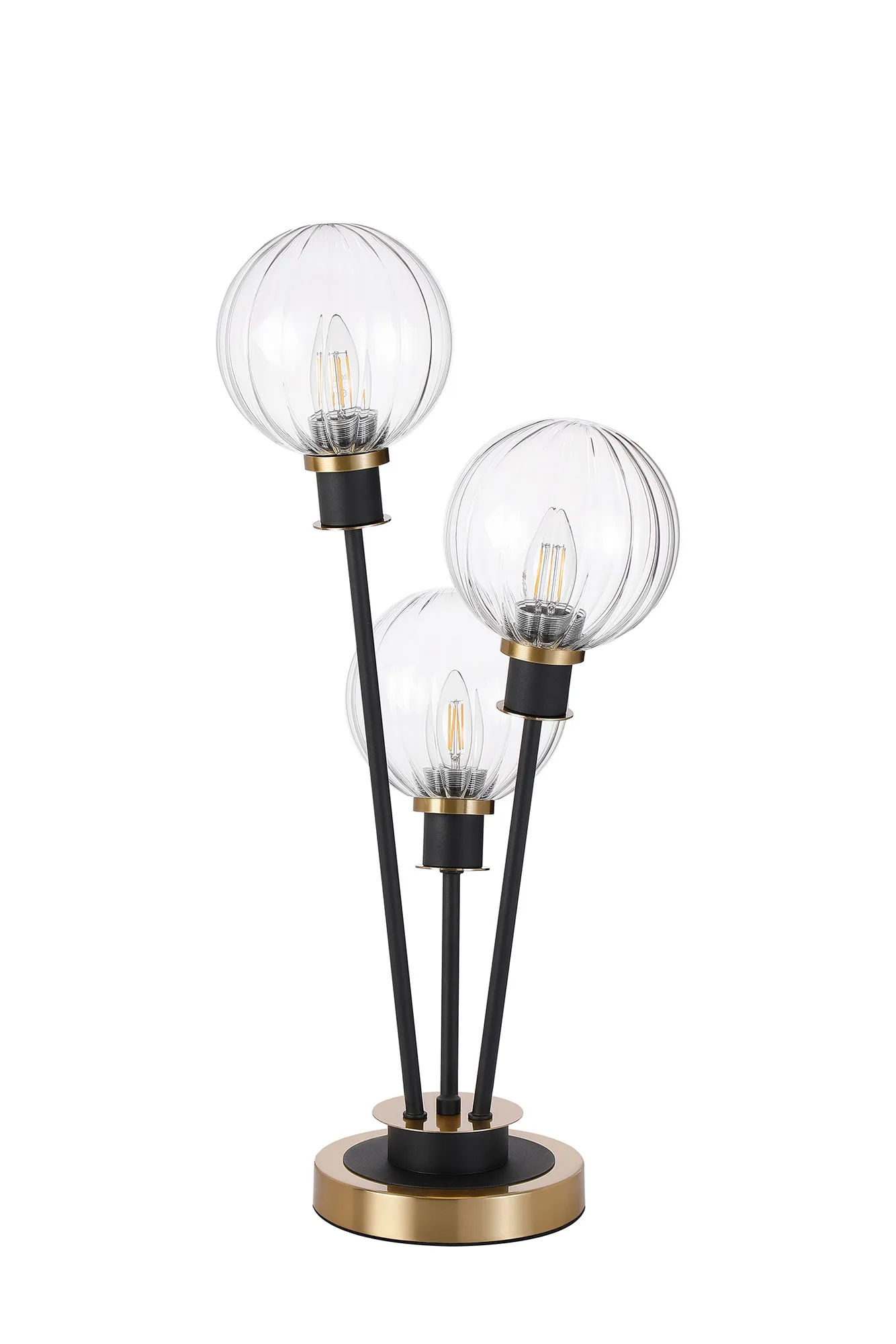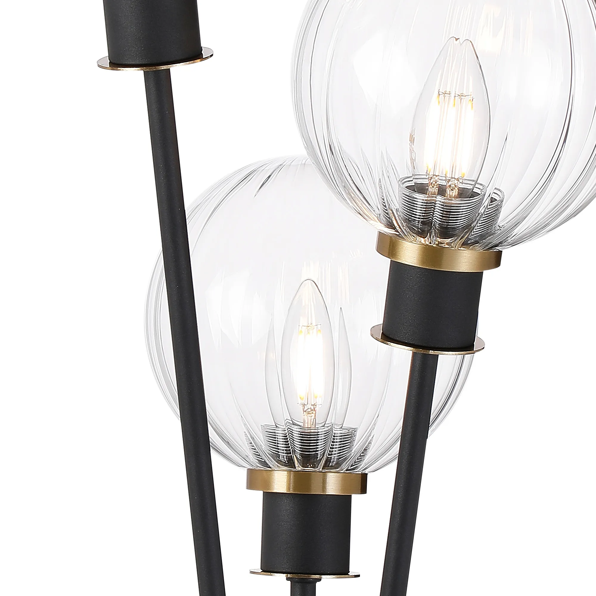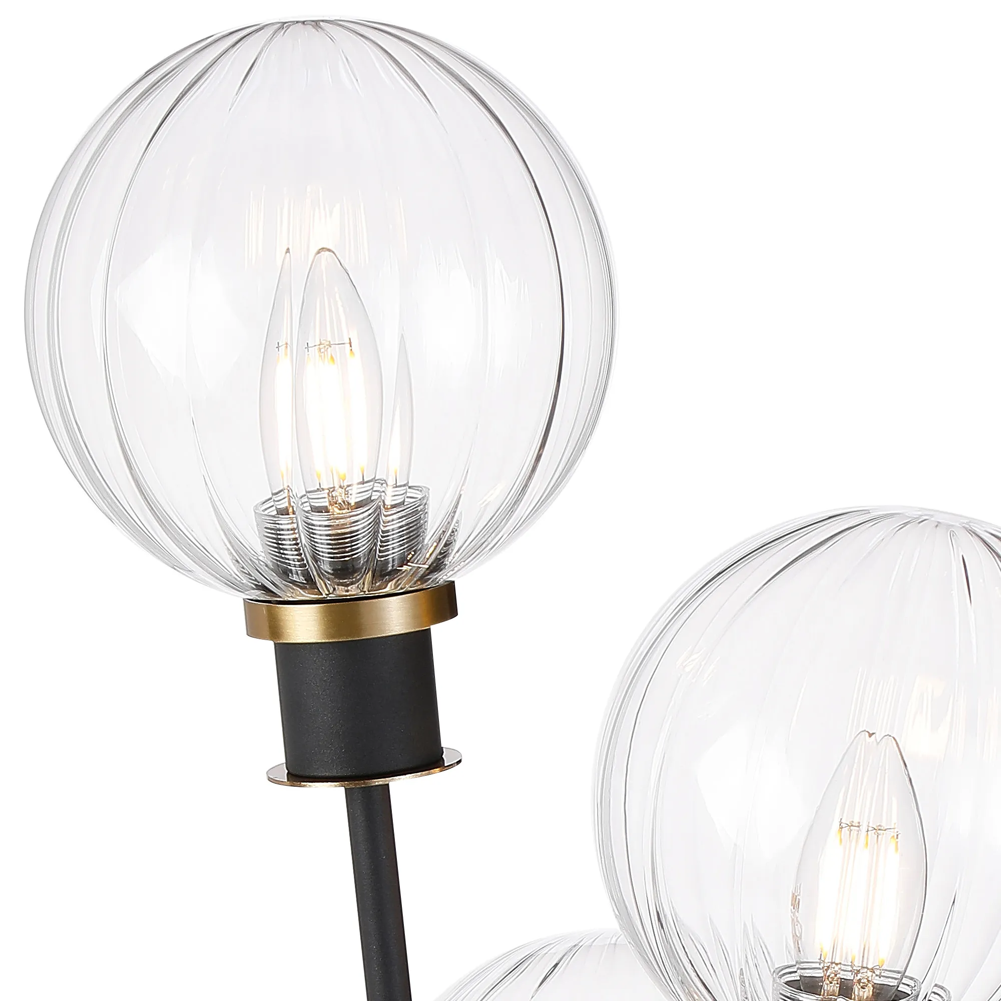 Castana Floor Lamp, 5 Light E14, With 15cm Round Segment Glass Shade Brass, Clear, Satin Black