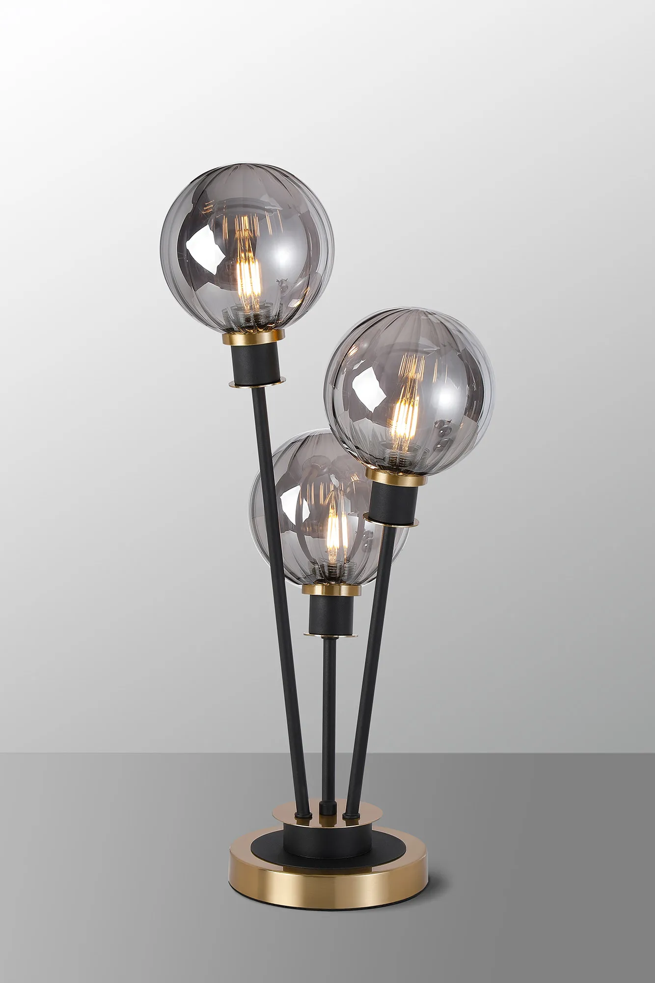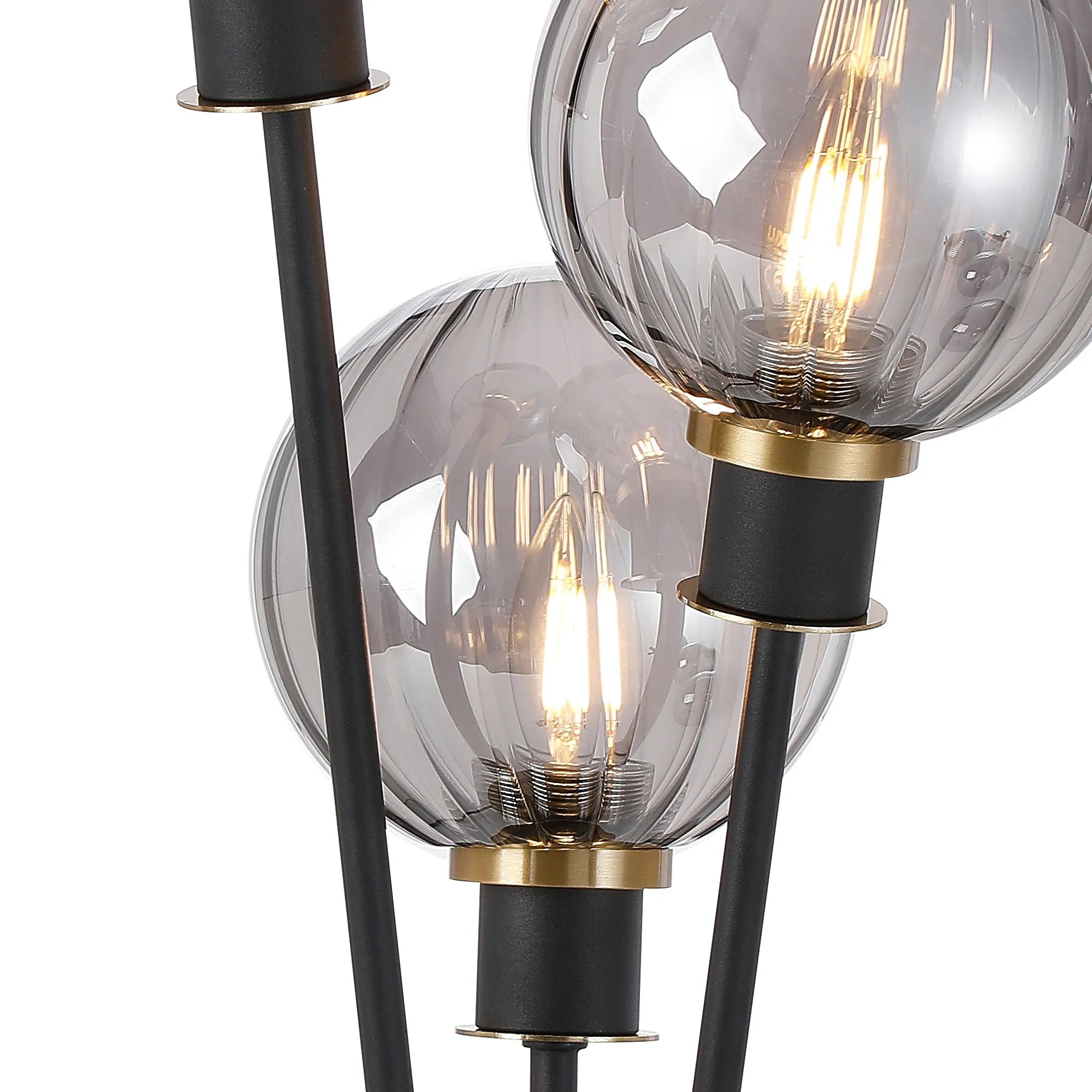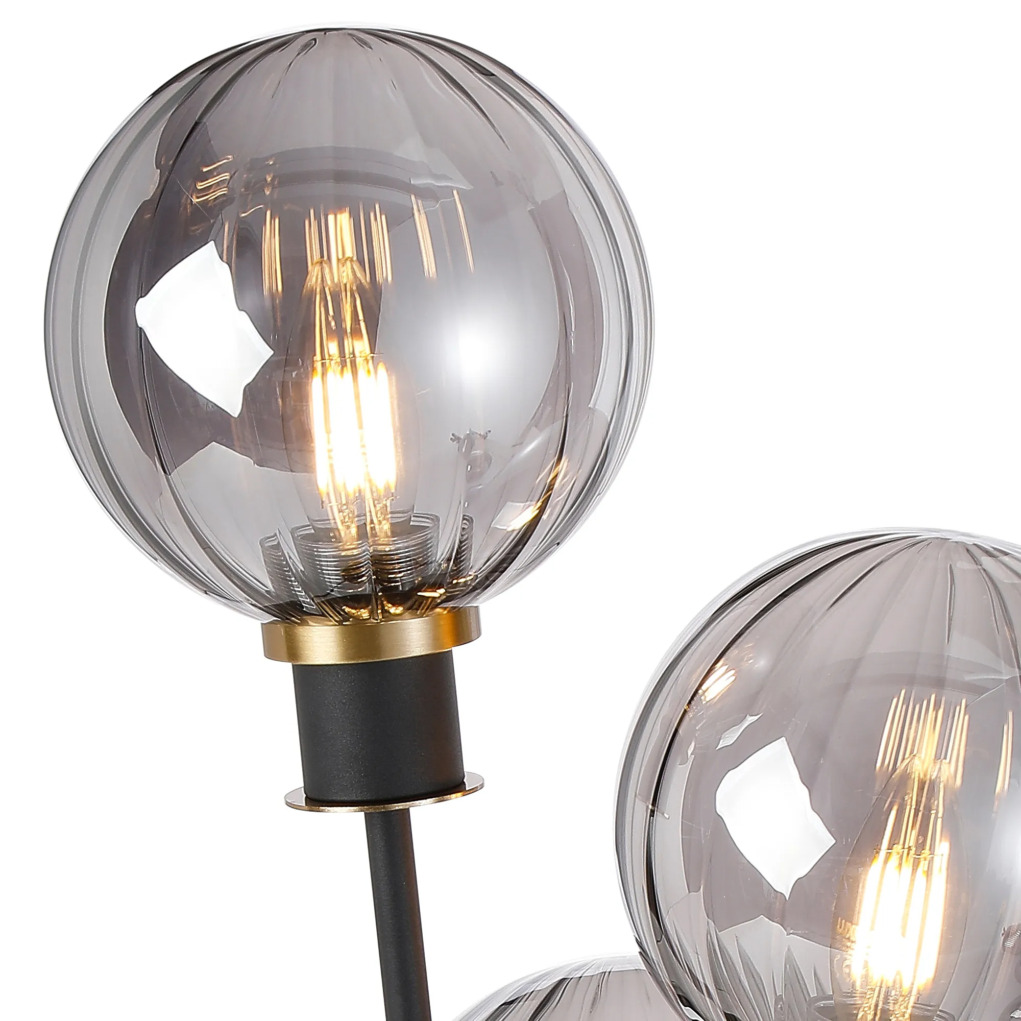 Castana Floor Lamp, 5 Light E14, With 15cm Round Segment Glass Shade Brass, Smoke Plated, Satin Black