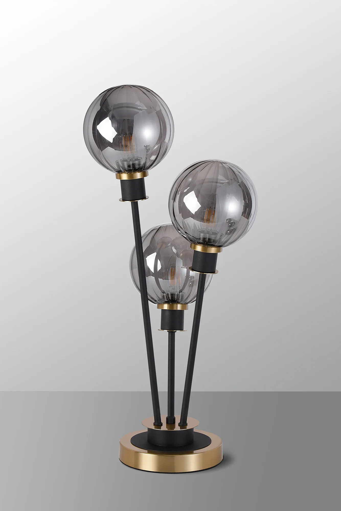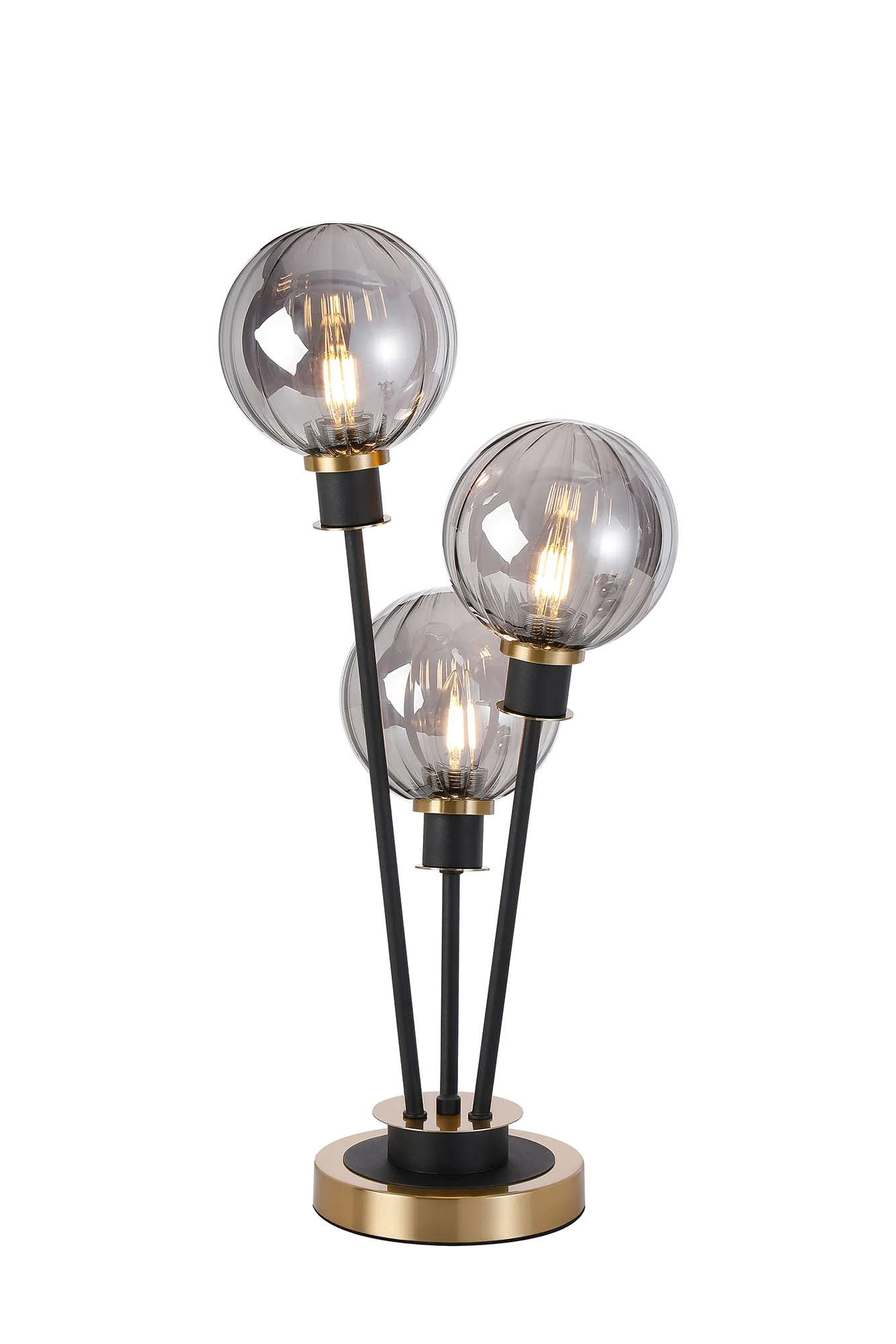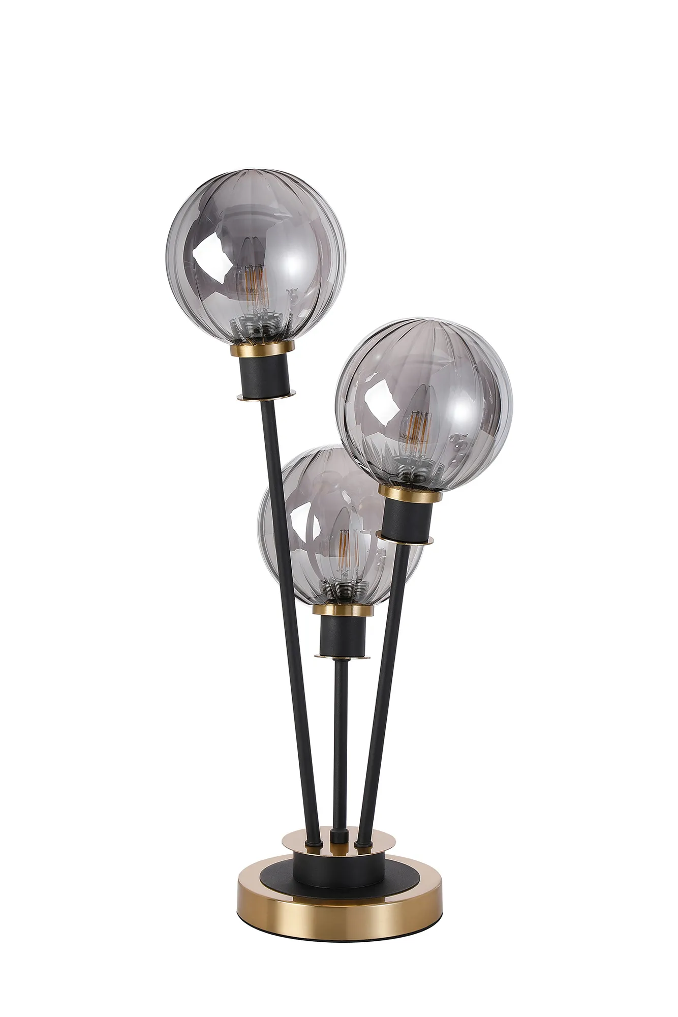 Castana Floor Lamp, 5 Light E14, With 15cm Round Segment Glass Shade Brass, Smoke Plated, Satin Black