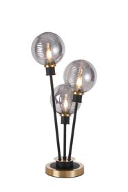 Castana Floor Lamp, 5 Light E14, With 15cm Round Double Textured Smooth / Ribbed Glass Shade Brass, Smoke Plated, Satin Black