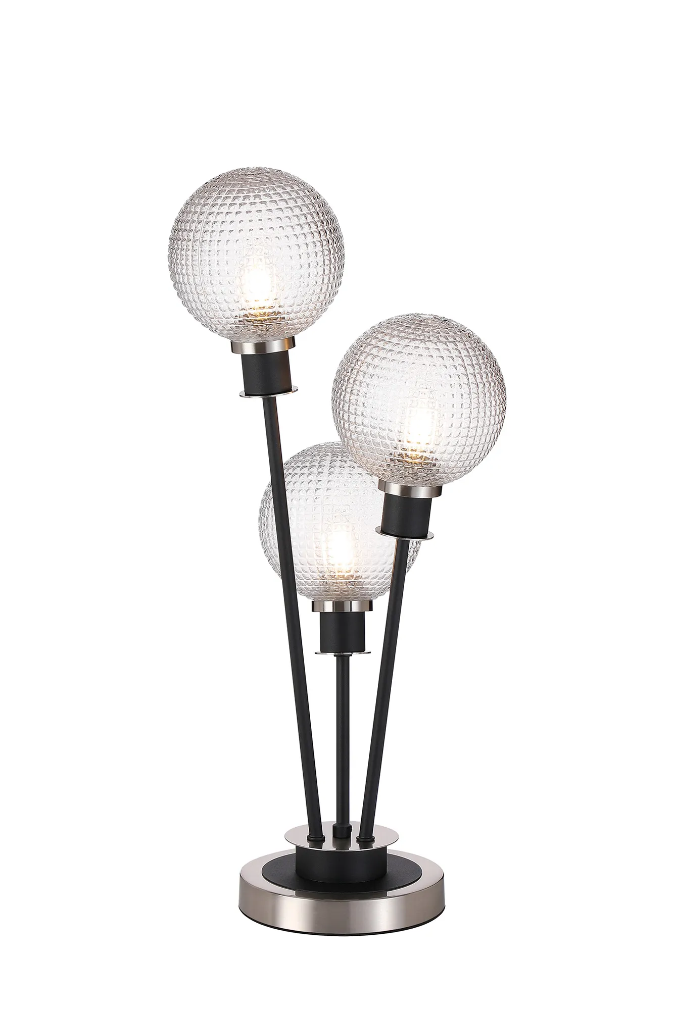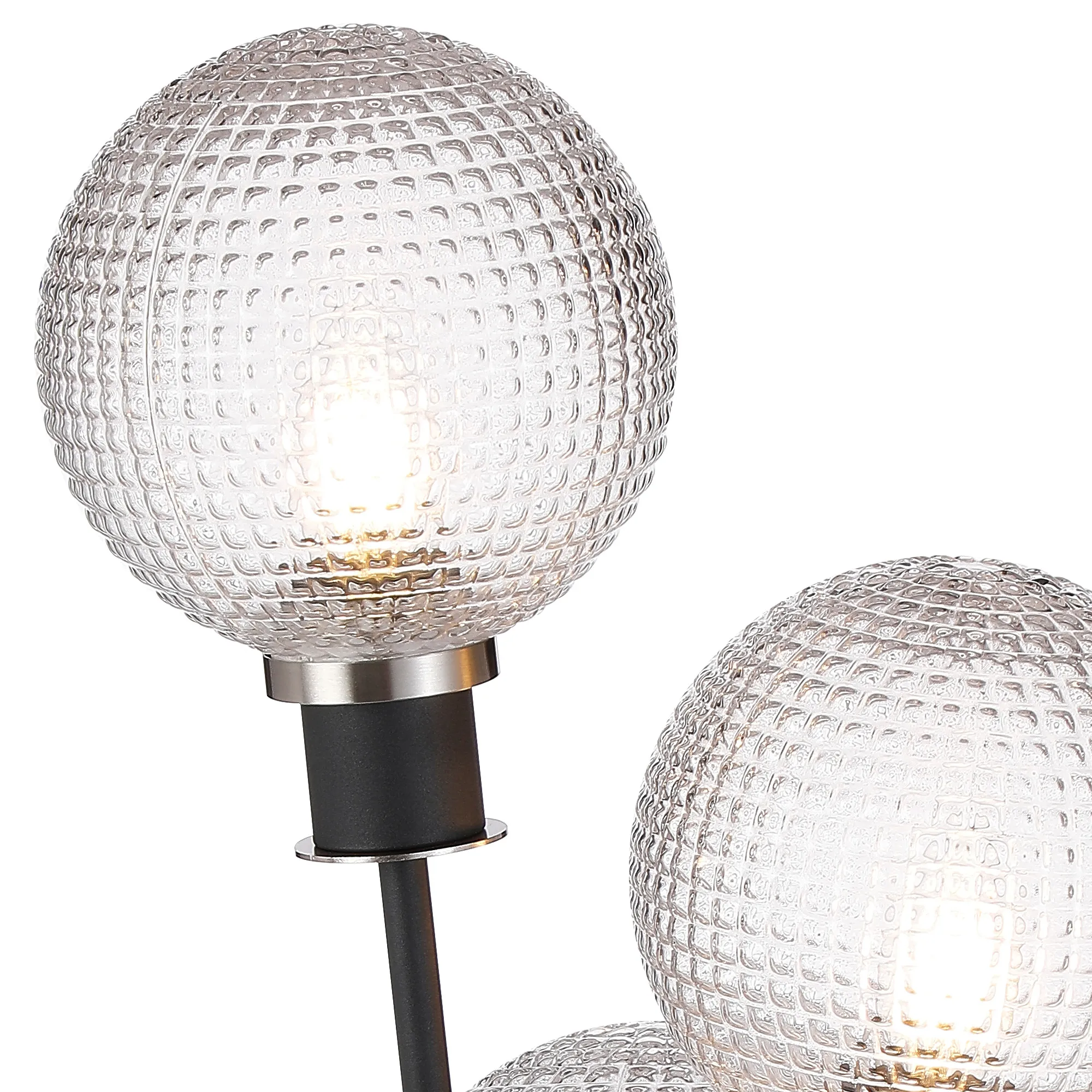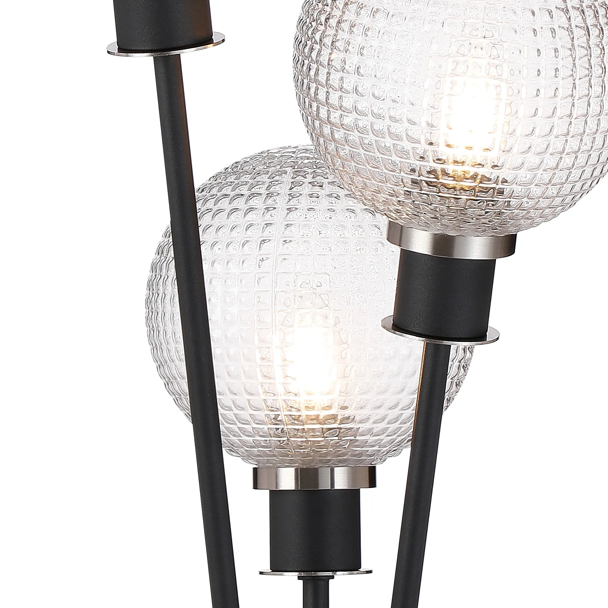 Castana Floor Lamp, 5 Light E14, With 15cm Round Textured Diamond Pattern Glass Shade Satin Nickel, Clear, Satin Black