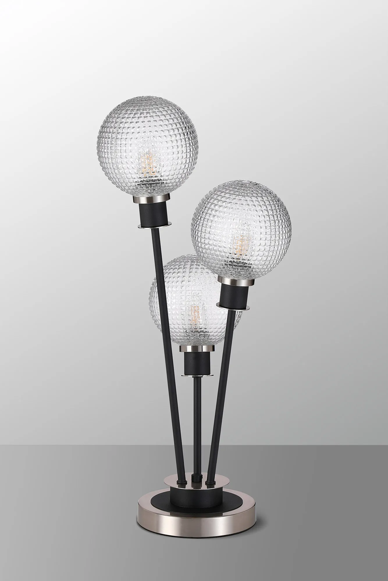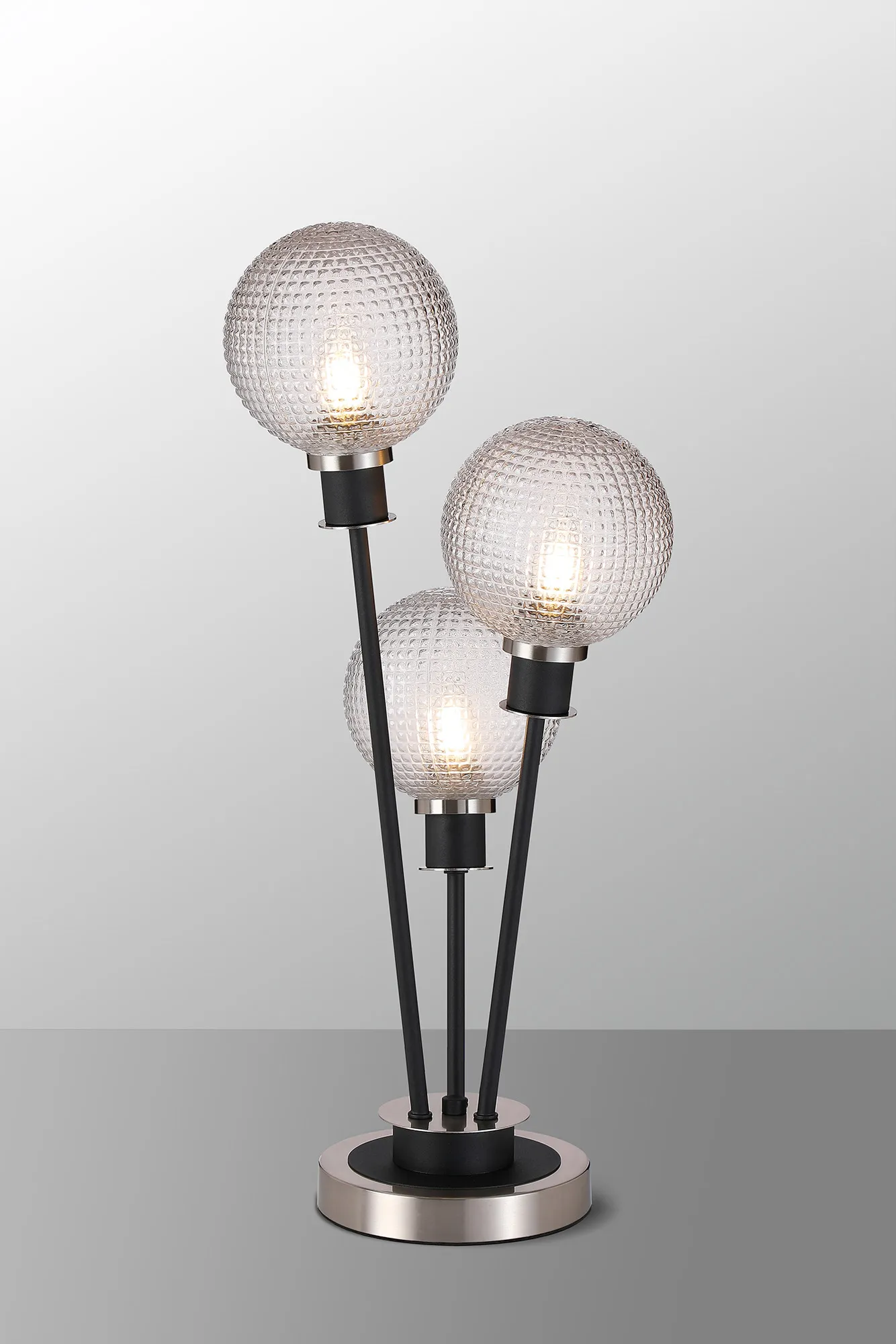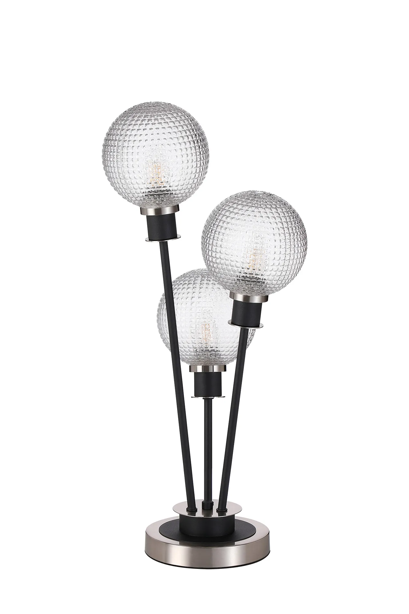 Castana Floor Lamp, 5 Light E14, With 15cm Round Textured Diamond Pattern Glass Shade Satin Nickel, Clear, Satin Black
