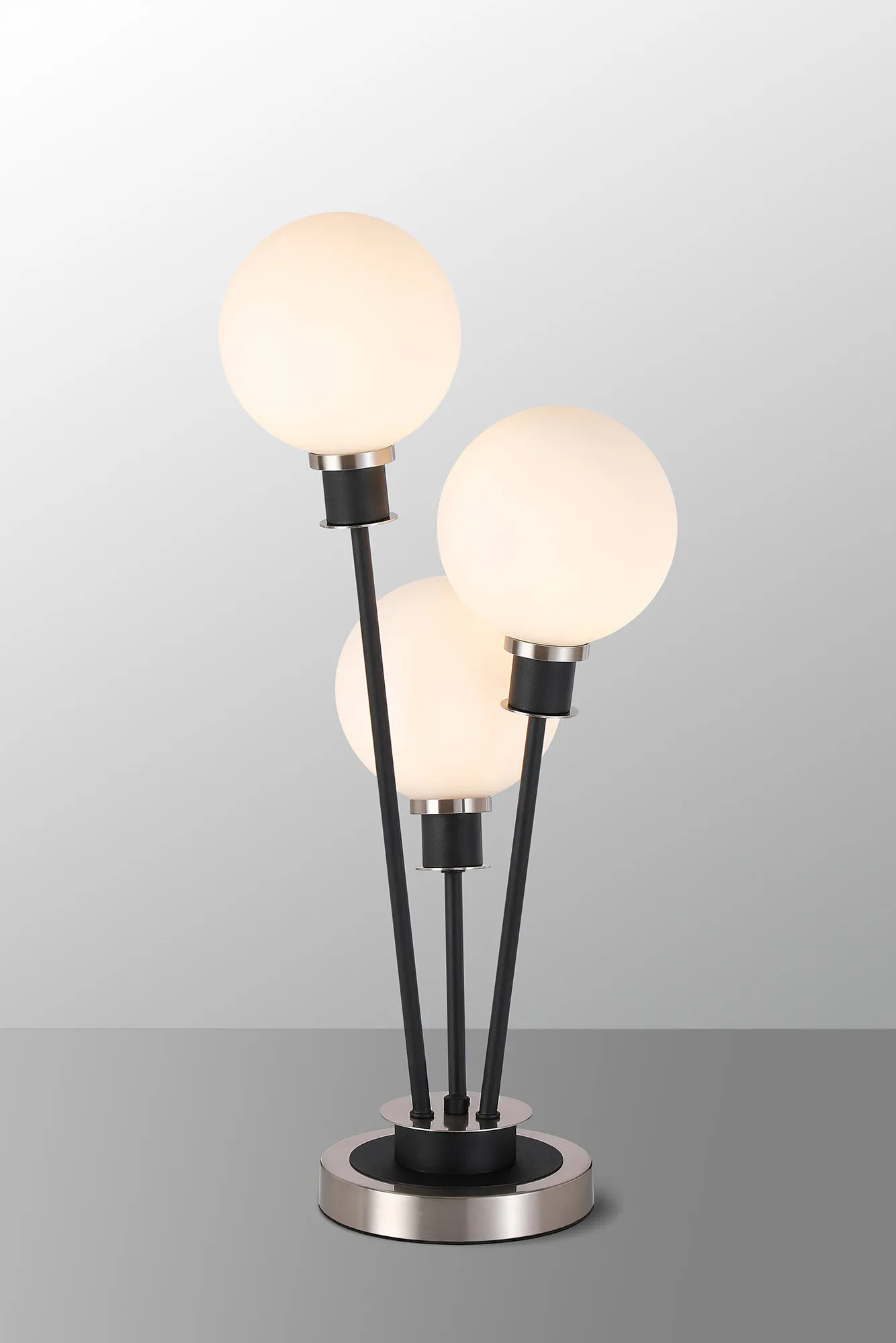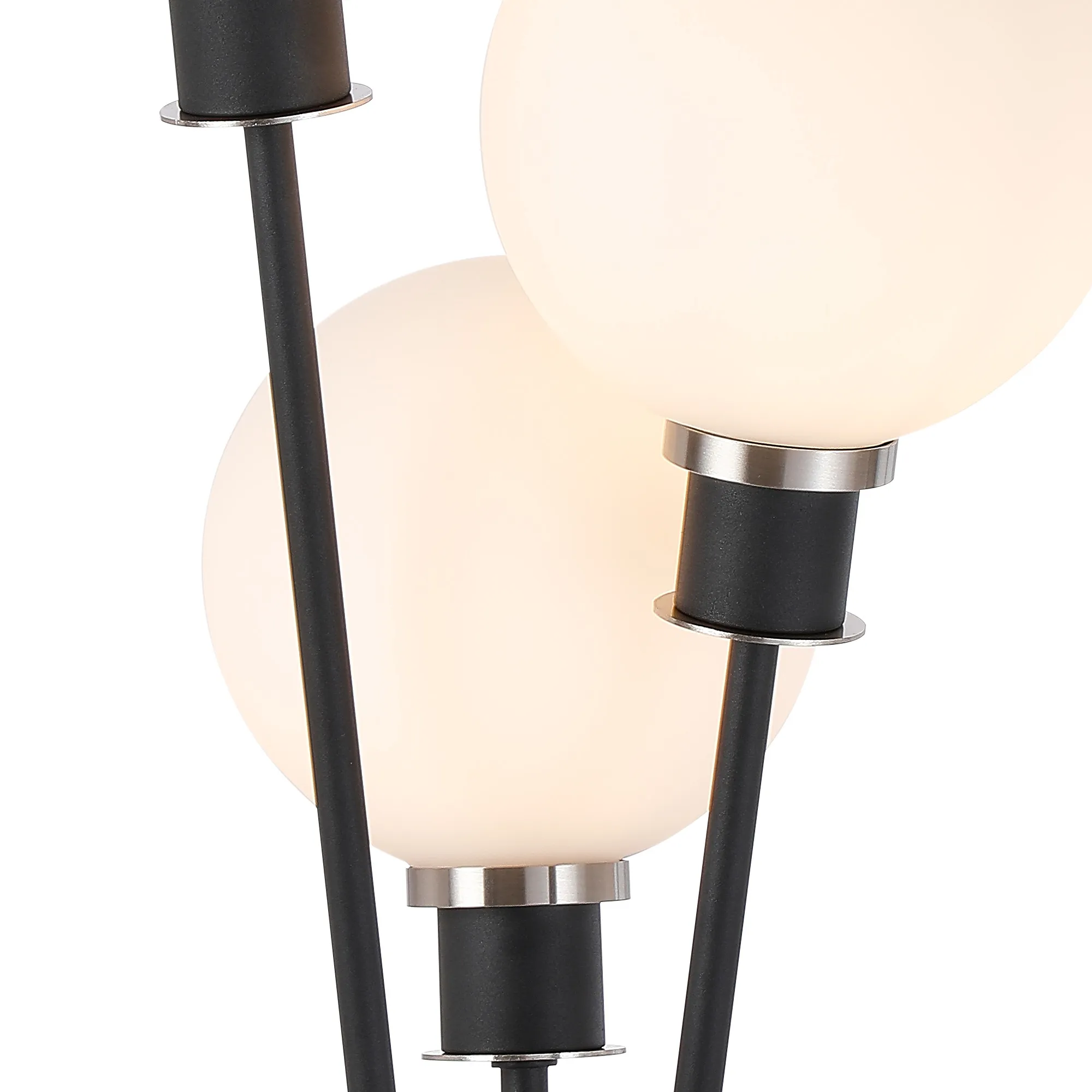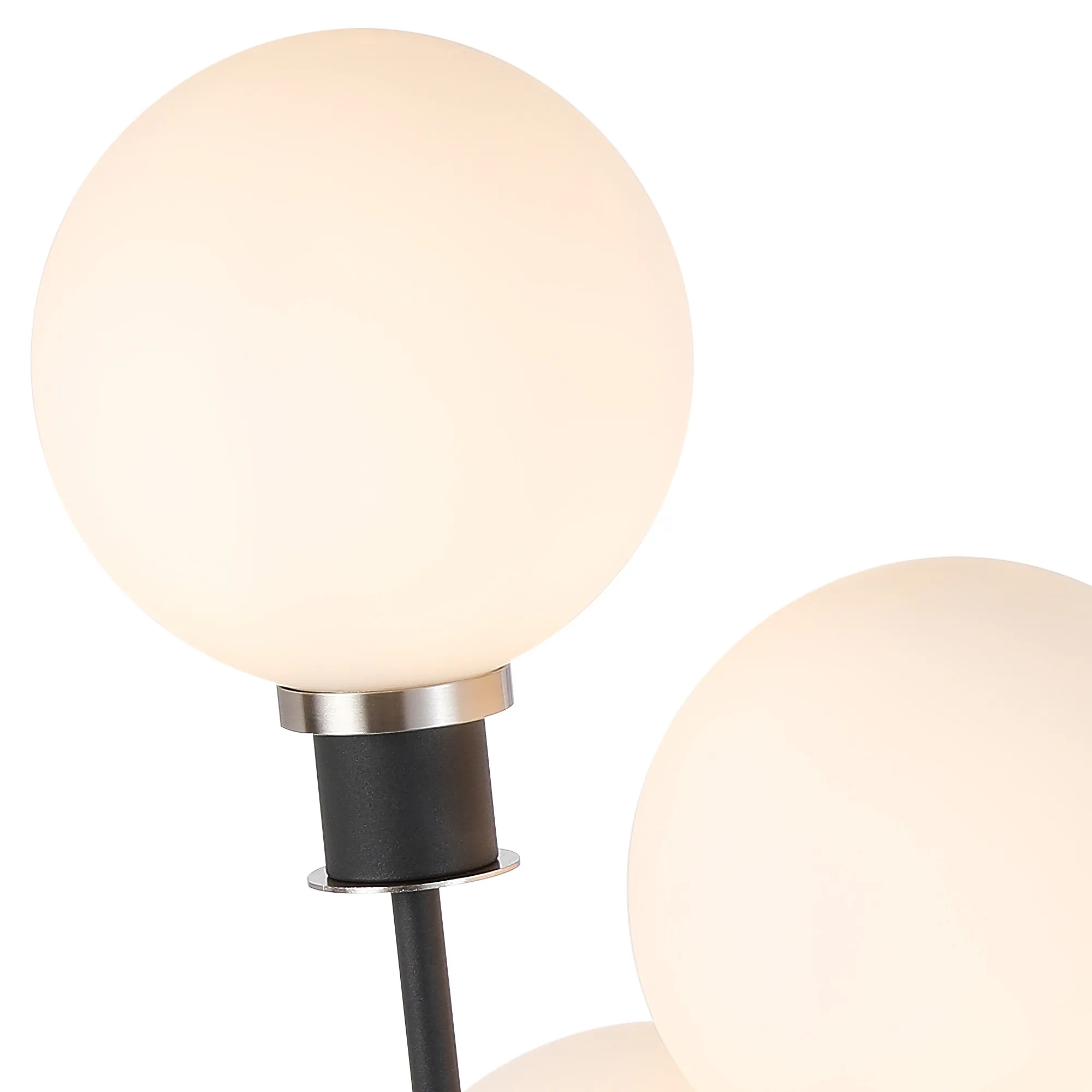 Castana Floor Lamp, 5 Light E14, With 15cm Round Glass Shade Satin Nickel, Opal, Satin Black