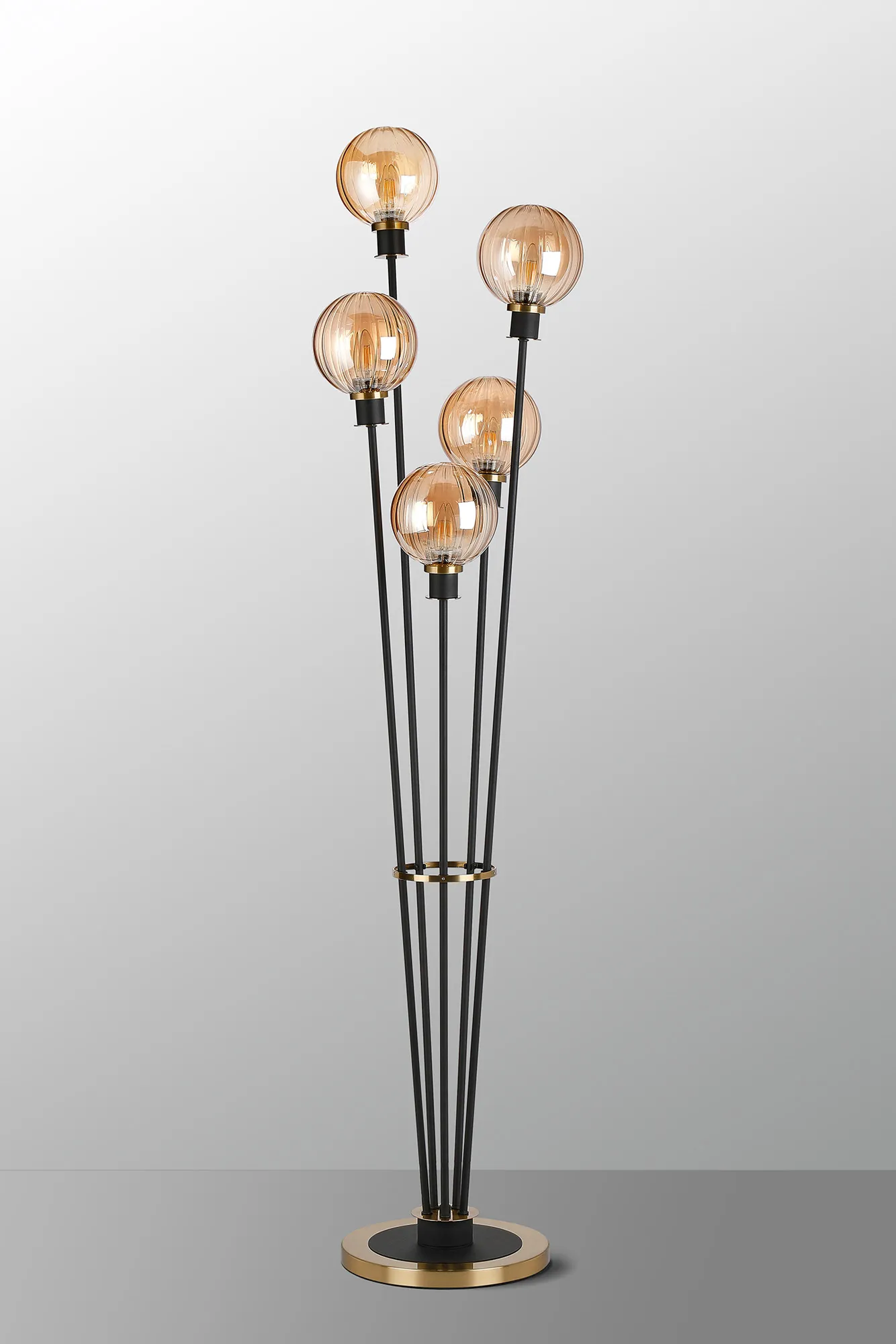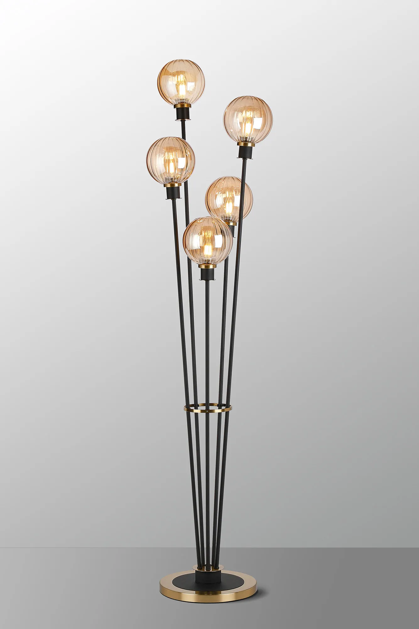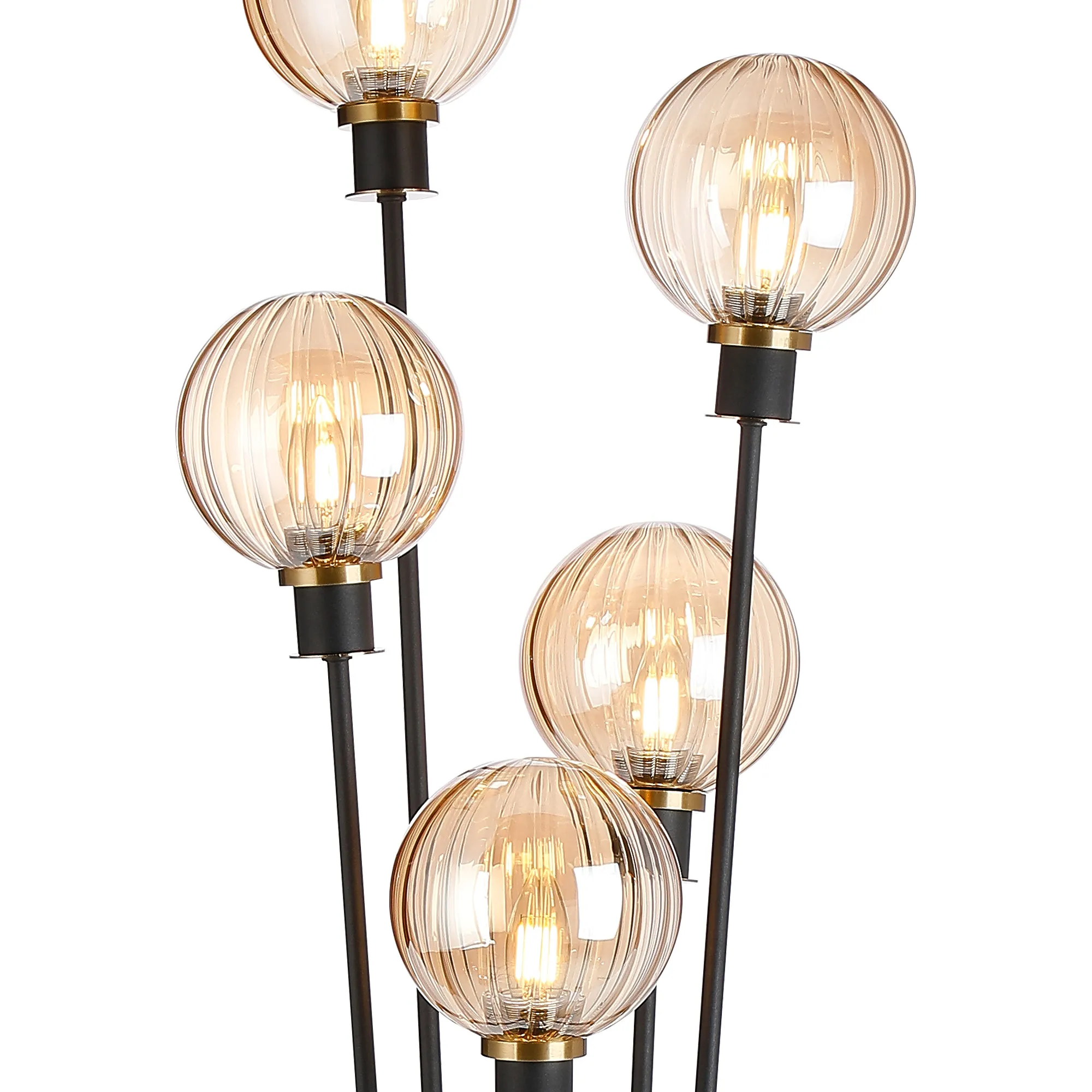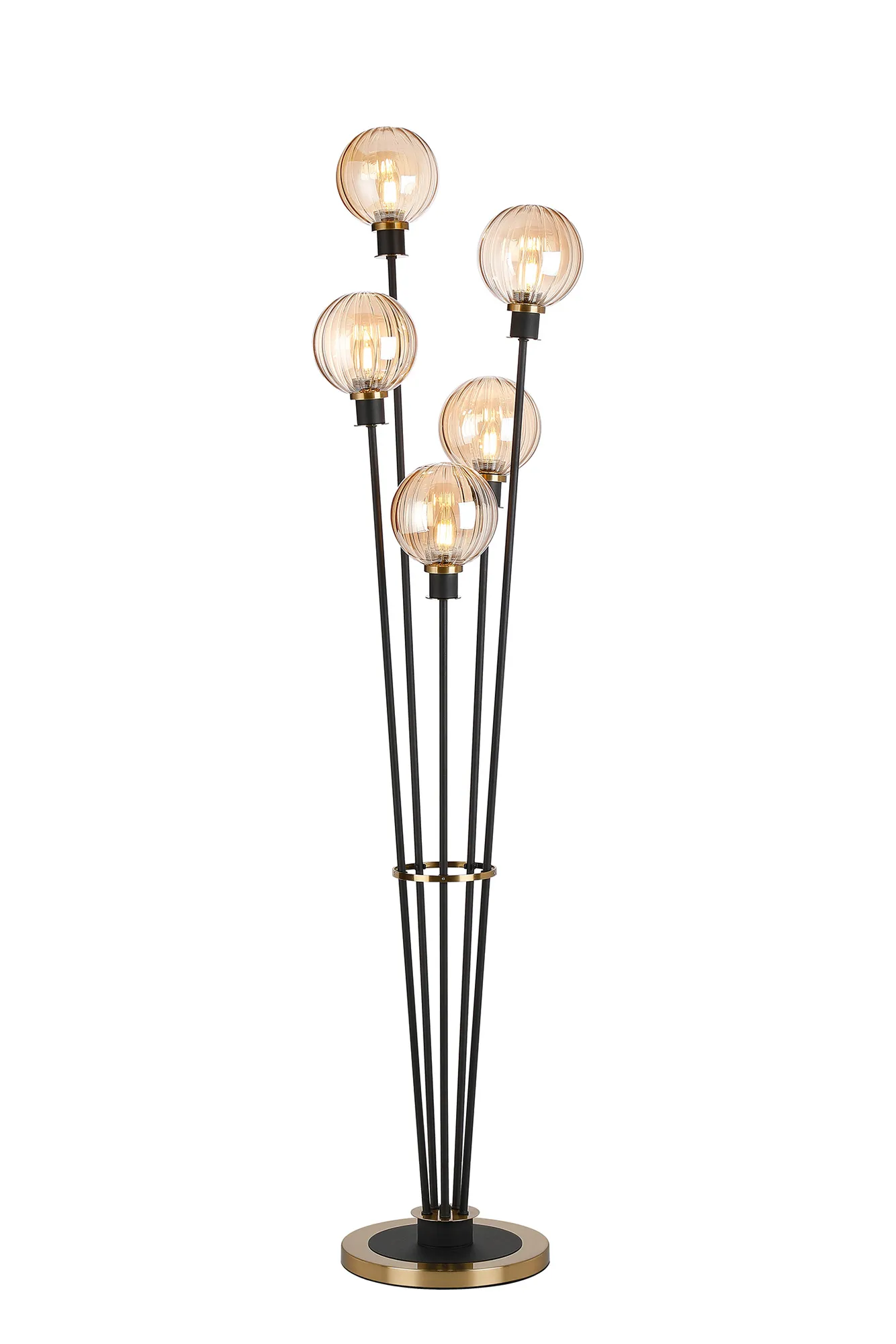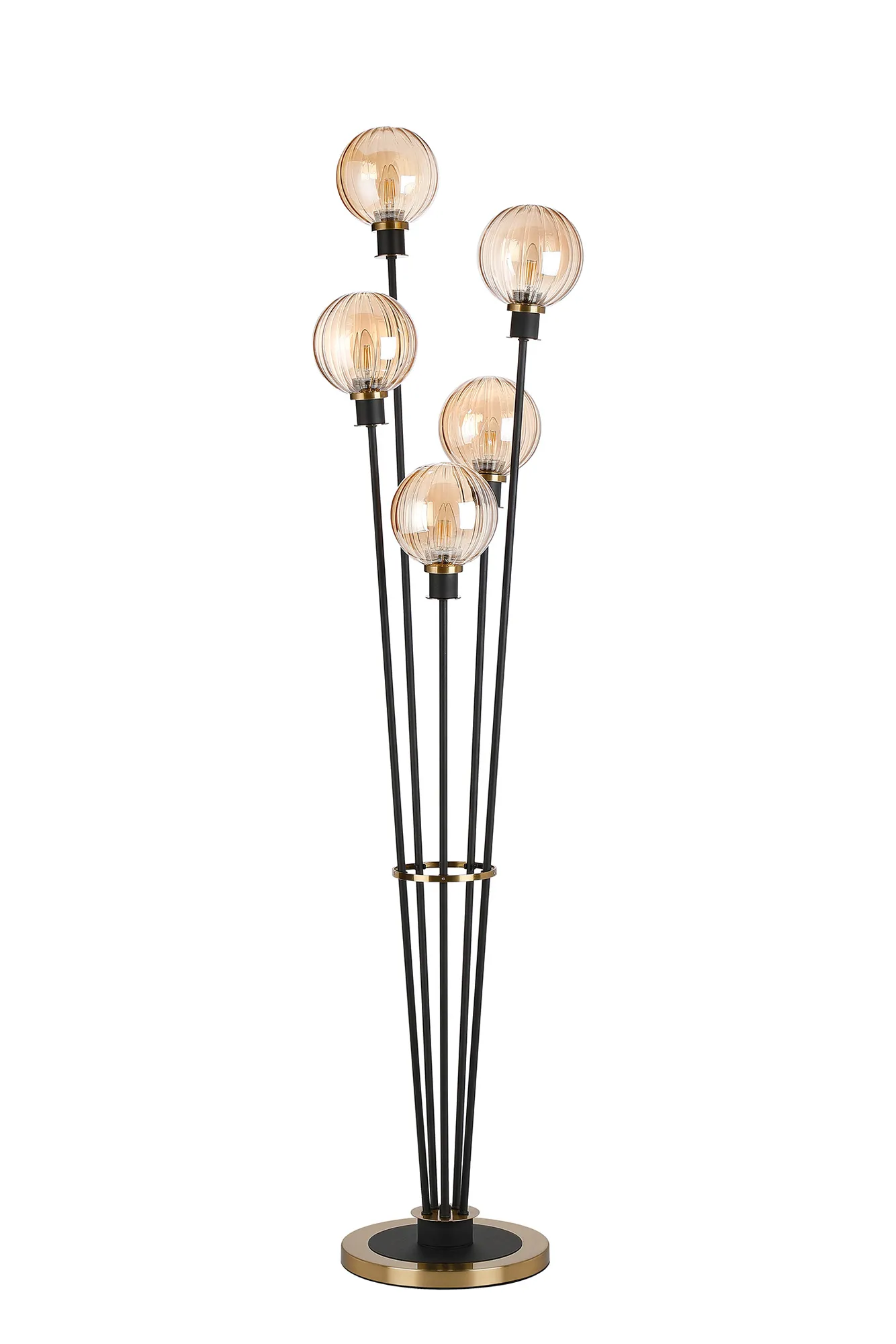 OTHER Castana Floor Lamp, 5 Light E14, With 15cm Round Segment Glass Shade Brass, Amber Plated, Satin Black