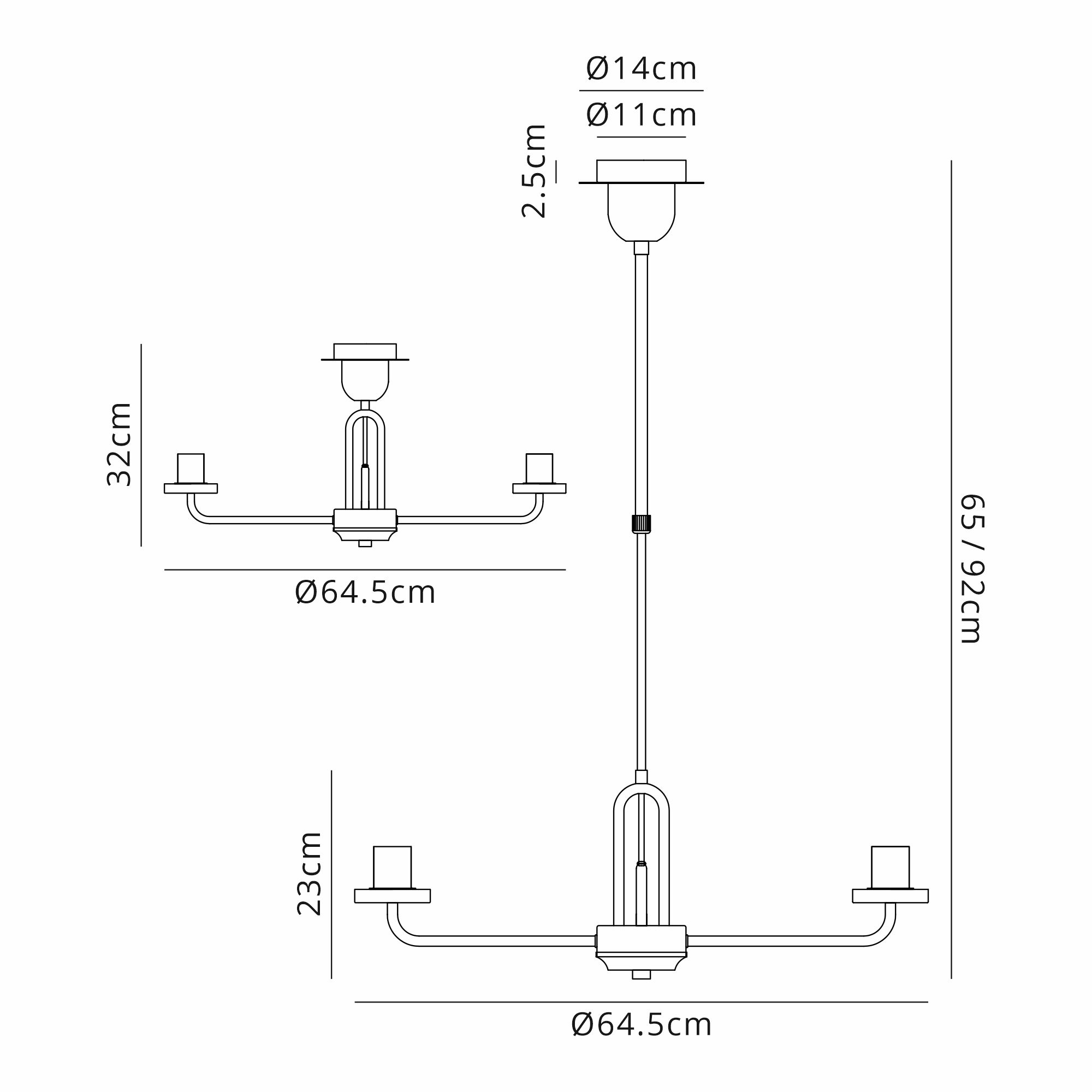 Agliana 44.5cm Telescopic Pendant/Semi Flush Light, (FRAME ONLY), 3 x E27, Matt Black
