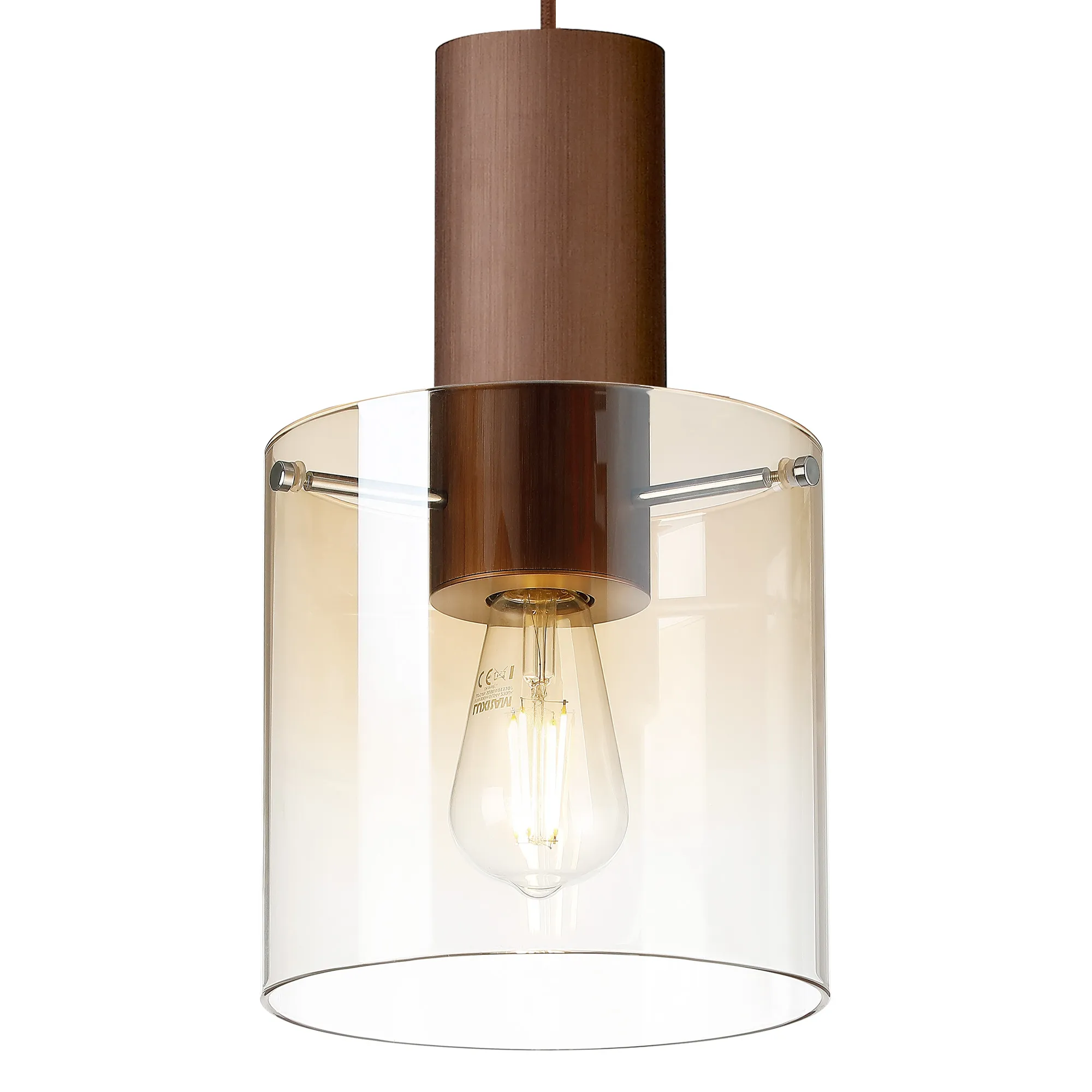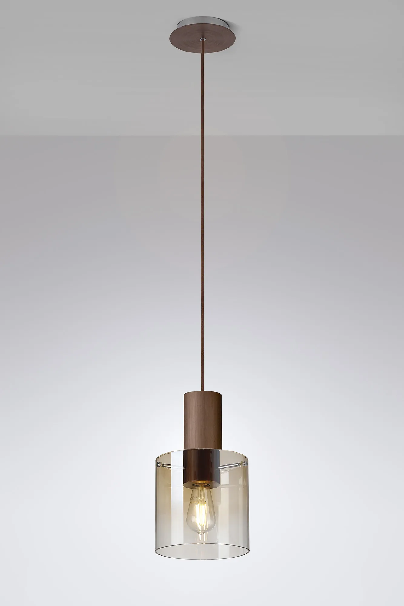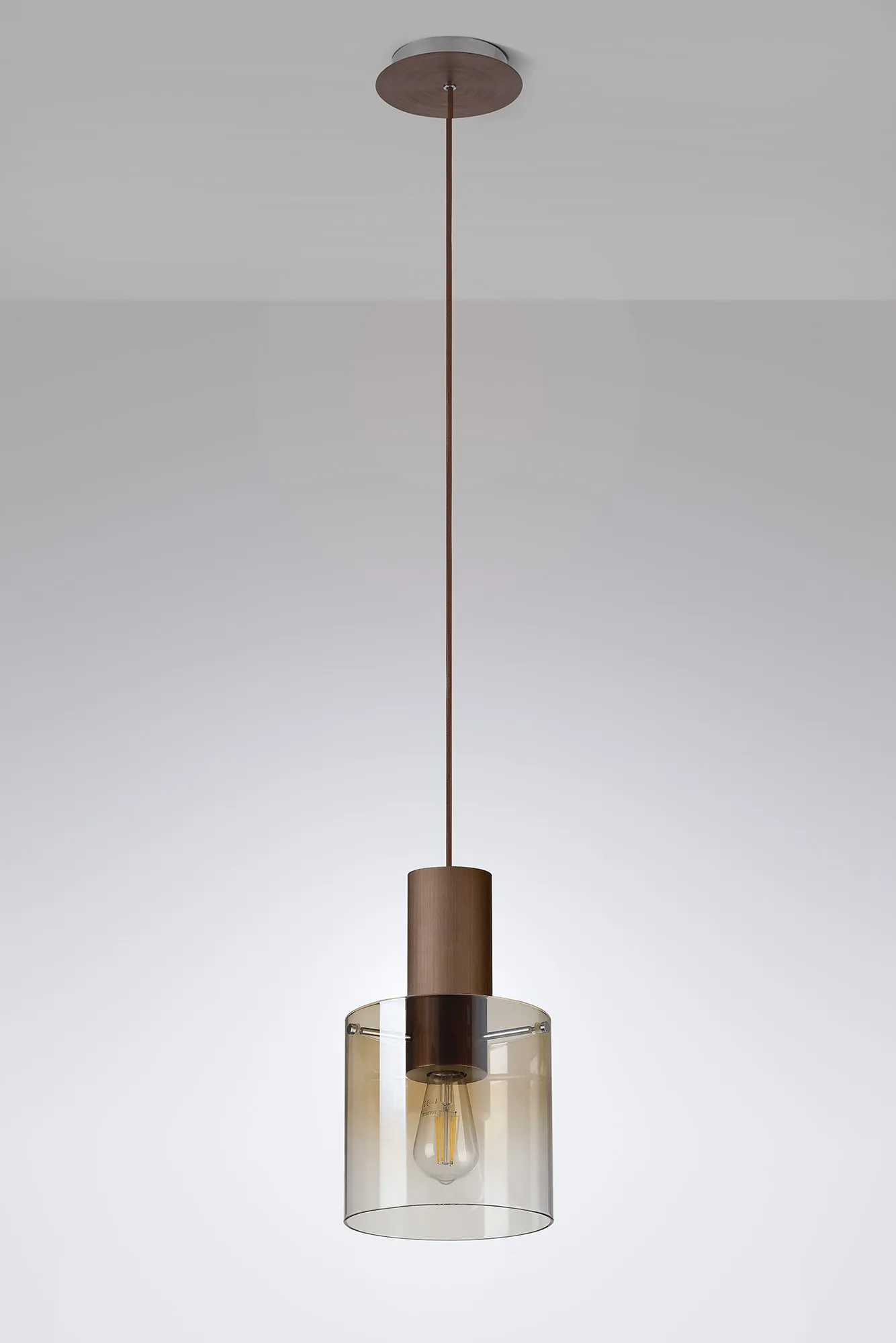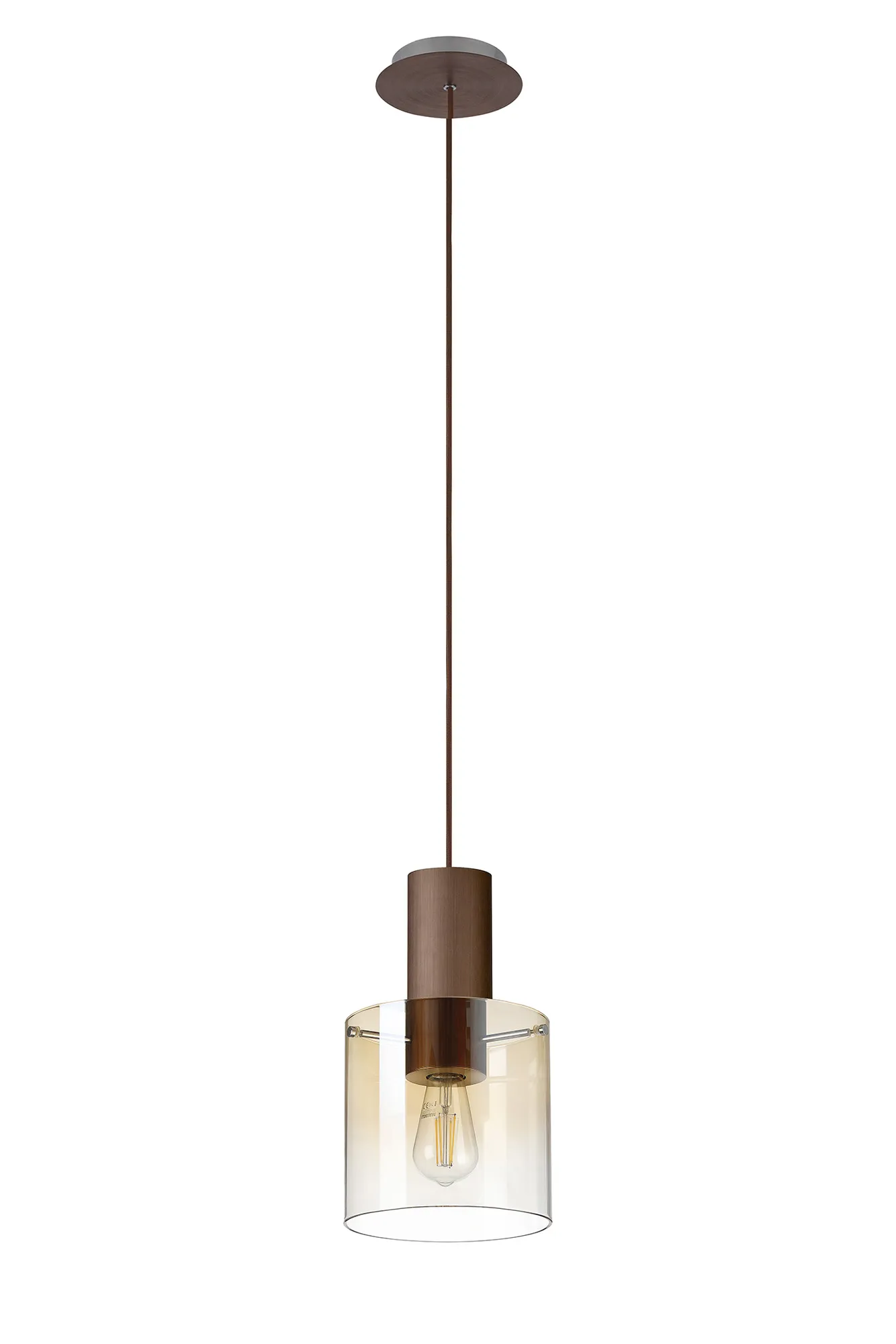OTHER Cantagallo Single Pendant, 1 Light Adjustable E27, Mocha/Amber Fade Glass