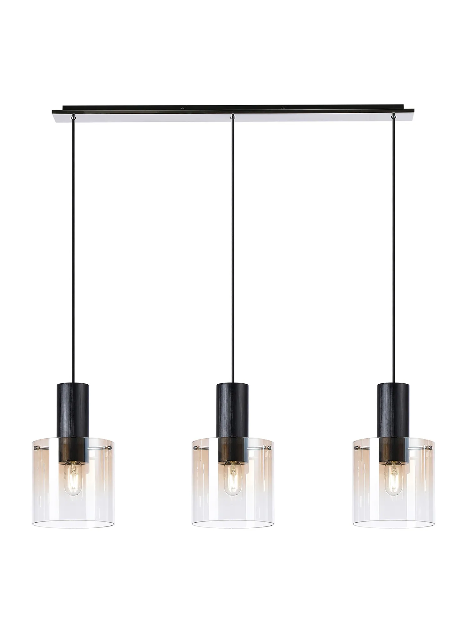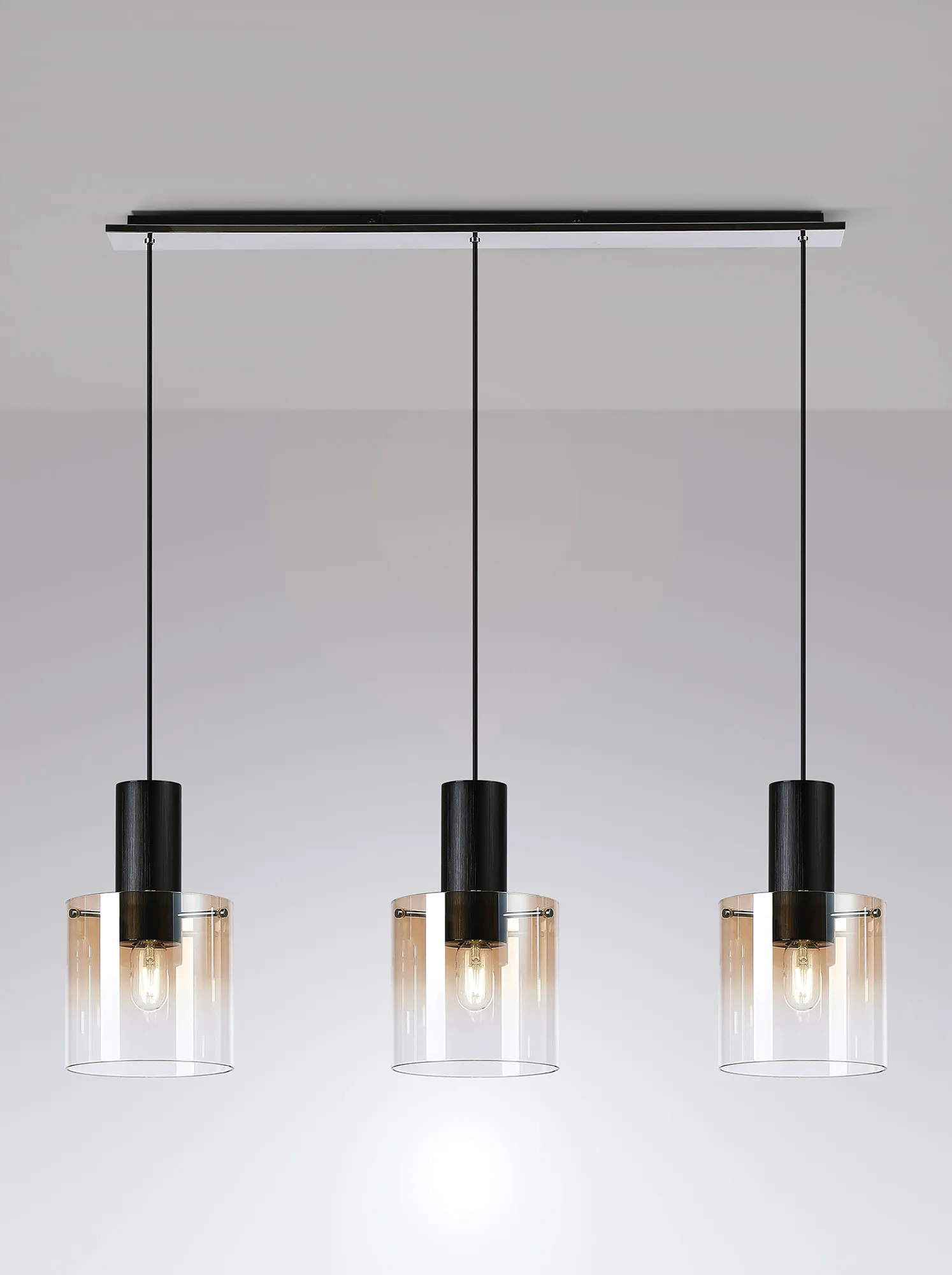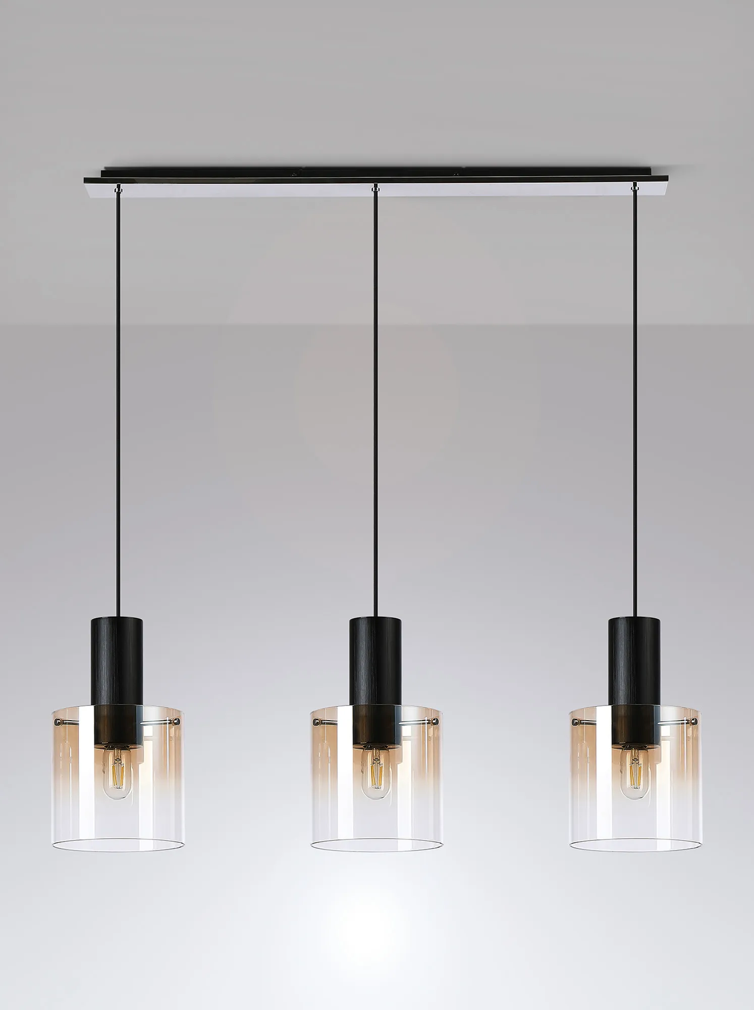 OTHER Cantagallo Linear Pendant, 3 Light Adjustable E27, Black/Amber Fade Glass