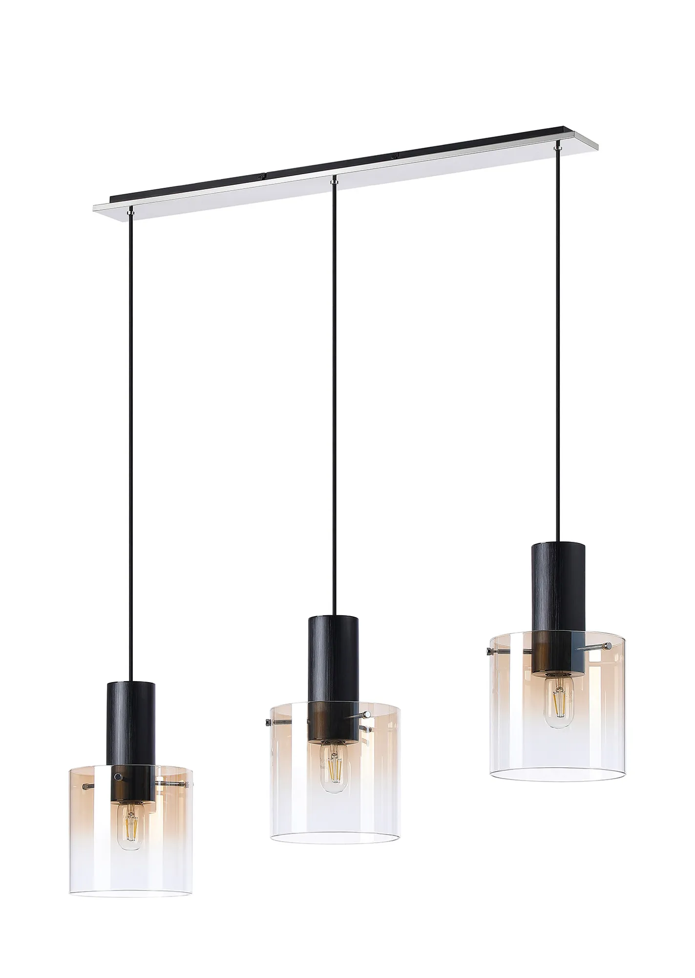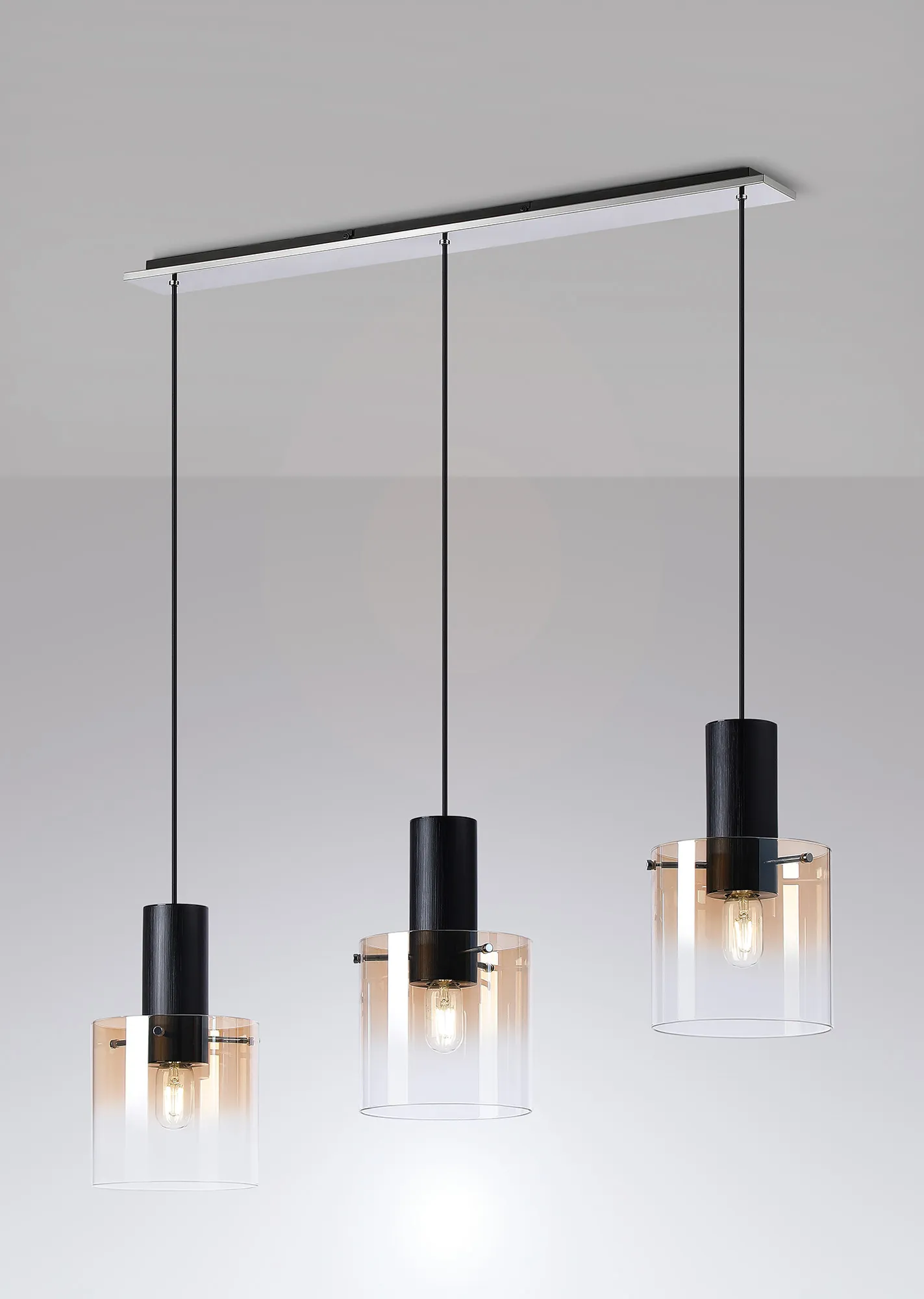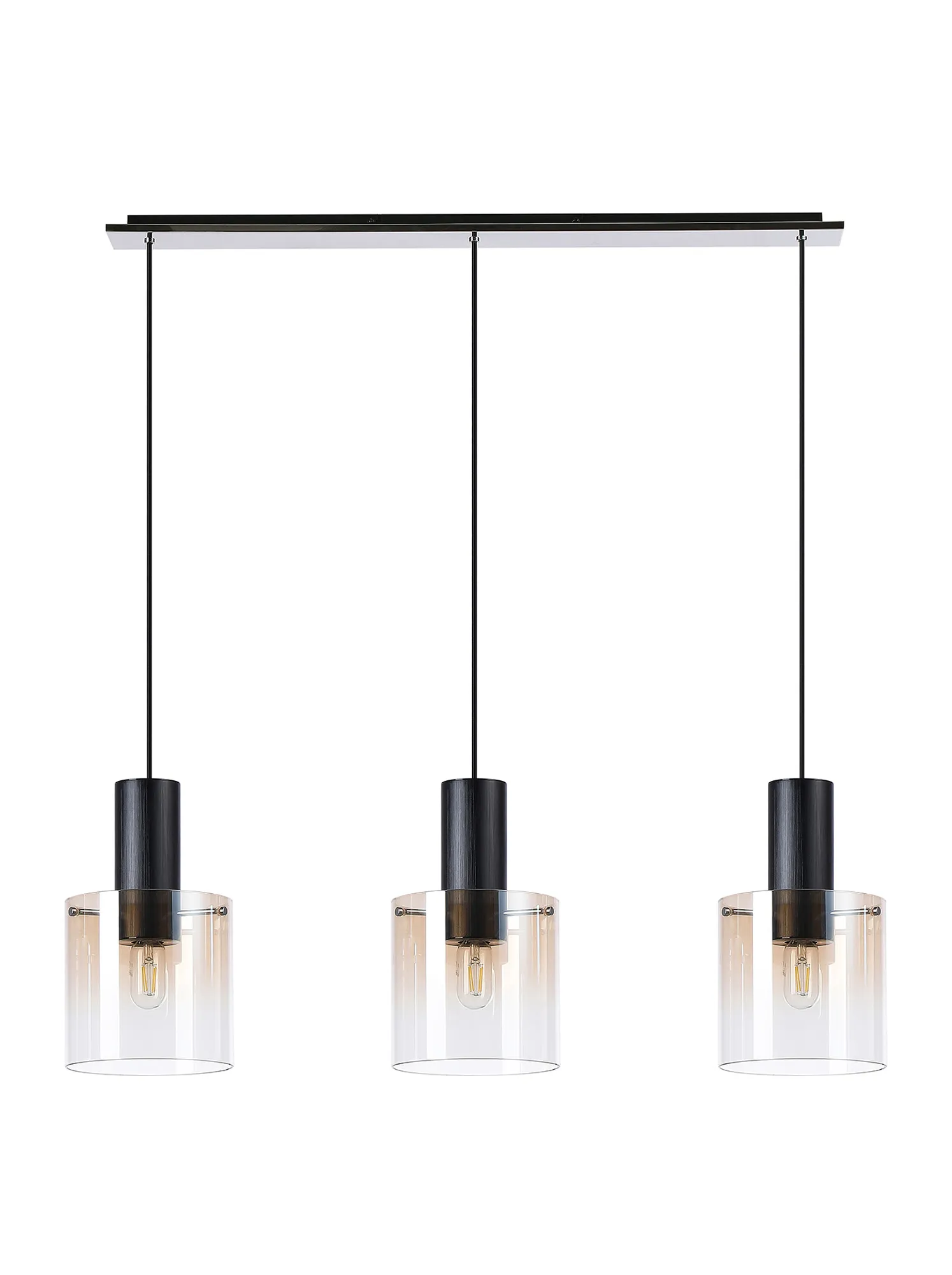 OTHER Cantagallo Linear Pendant, 3 Light Adjustable E27, Black/Amber Fade Glass