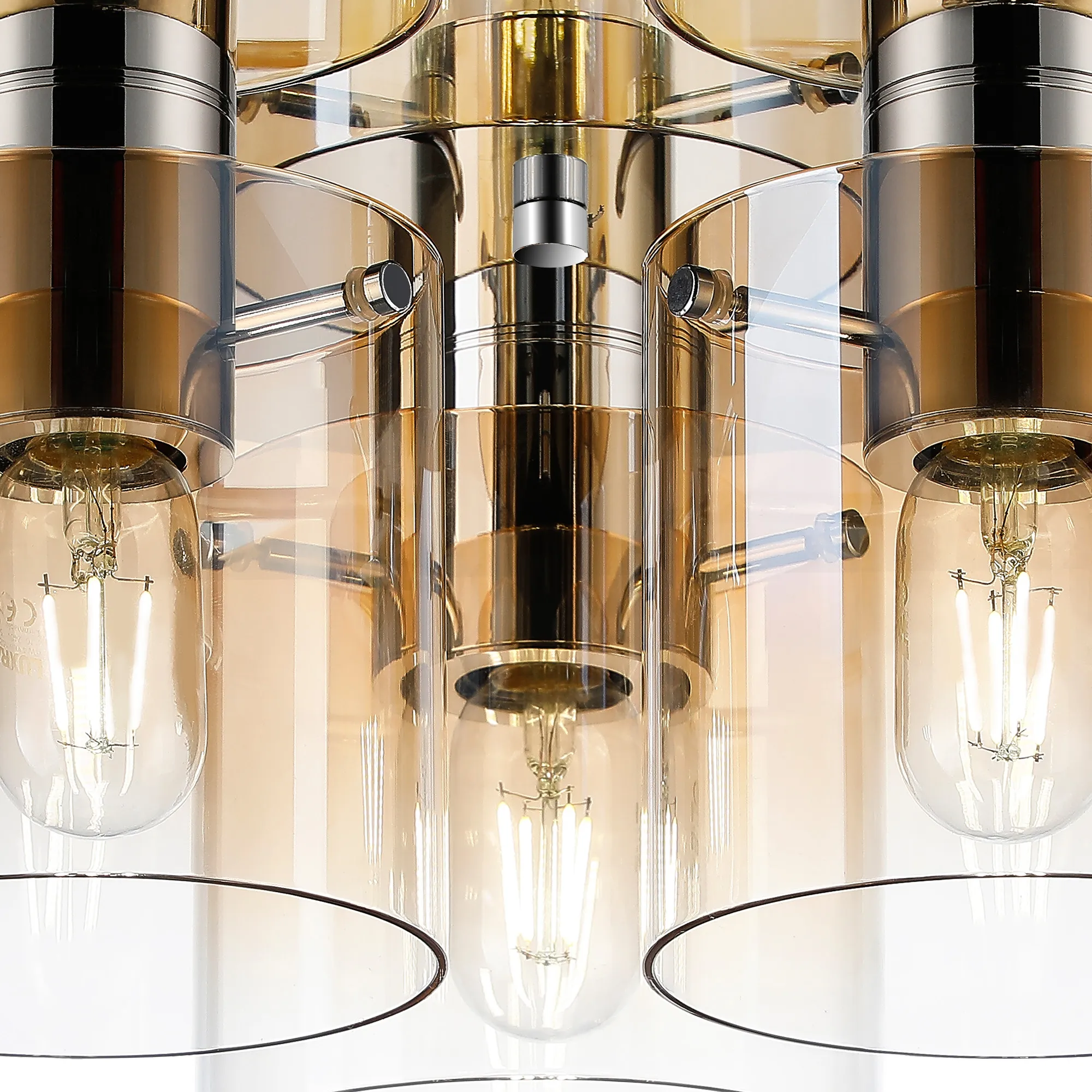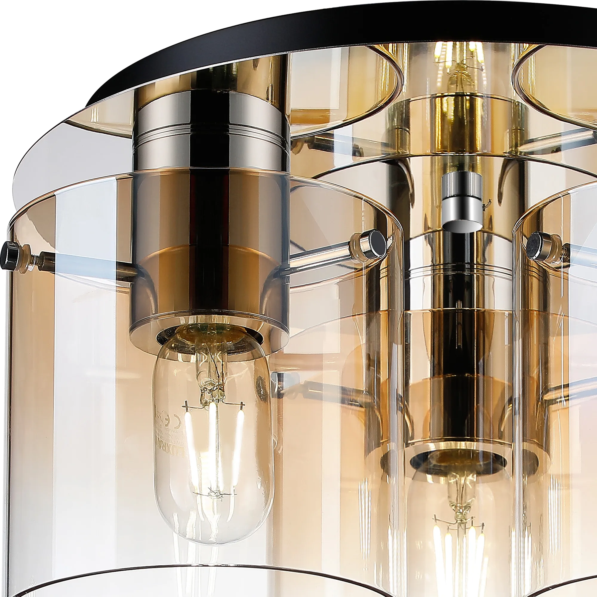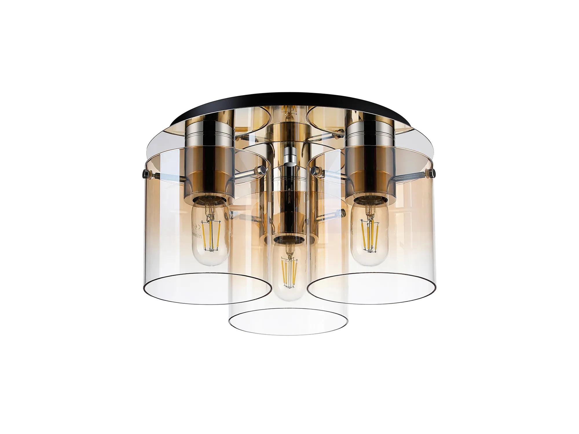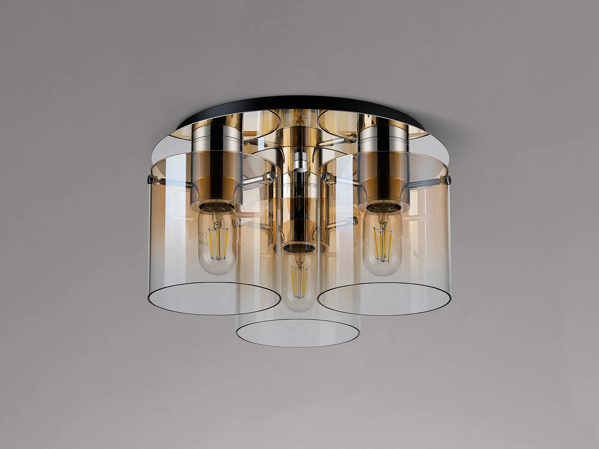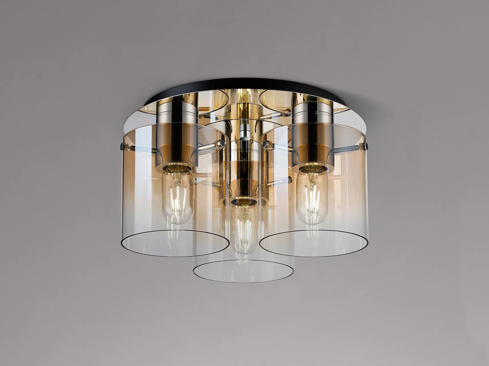 OTHER Cantagallo Round Ceiling Flush, 3 Light Flush Fitting, Polished Nickel/Black/Amber Fade Glass