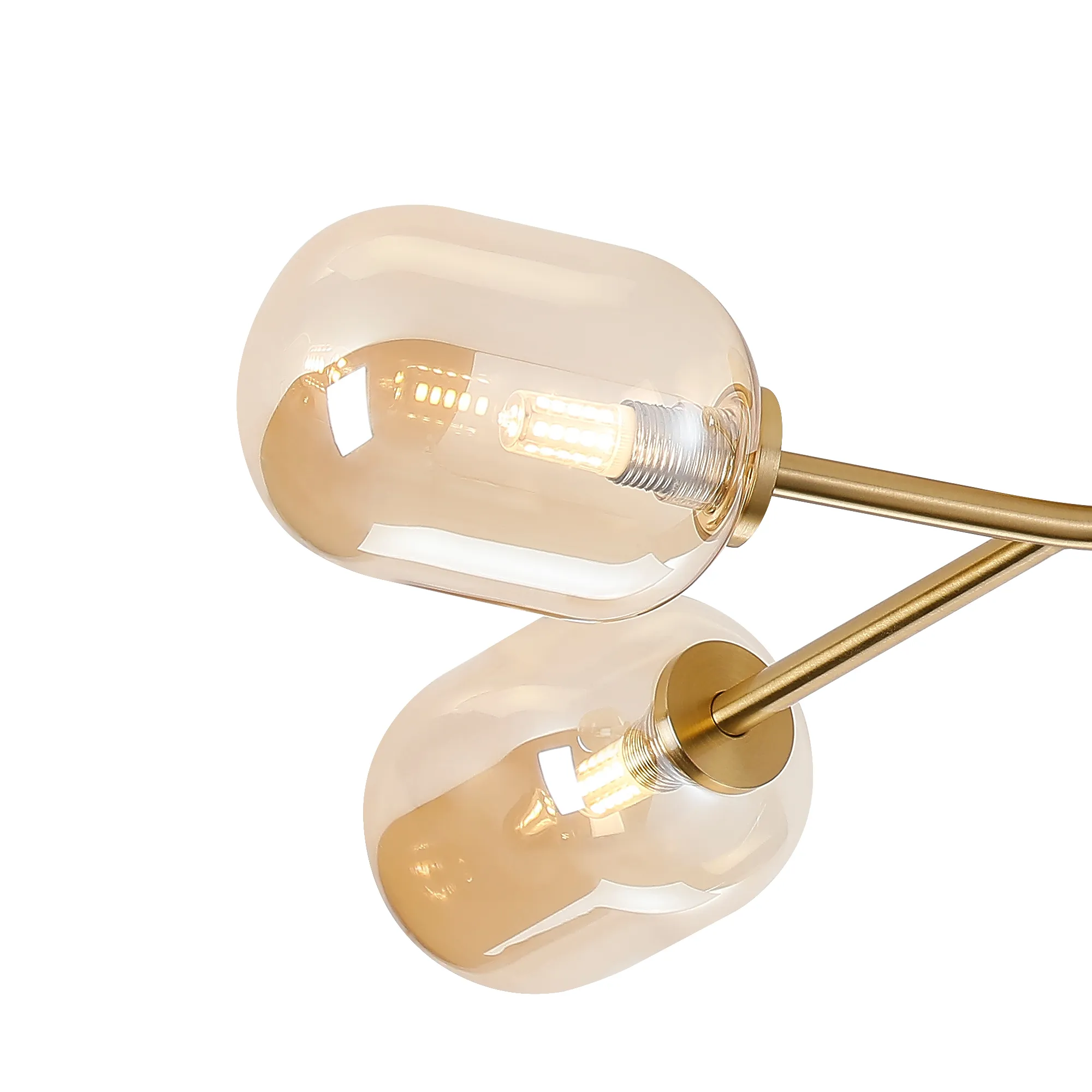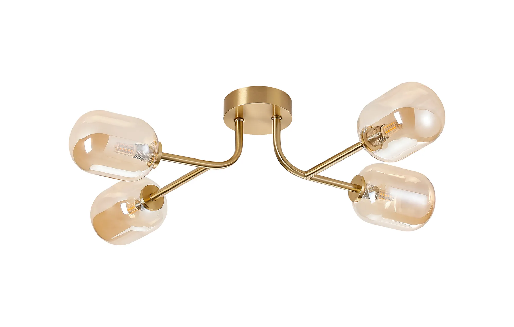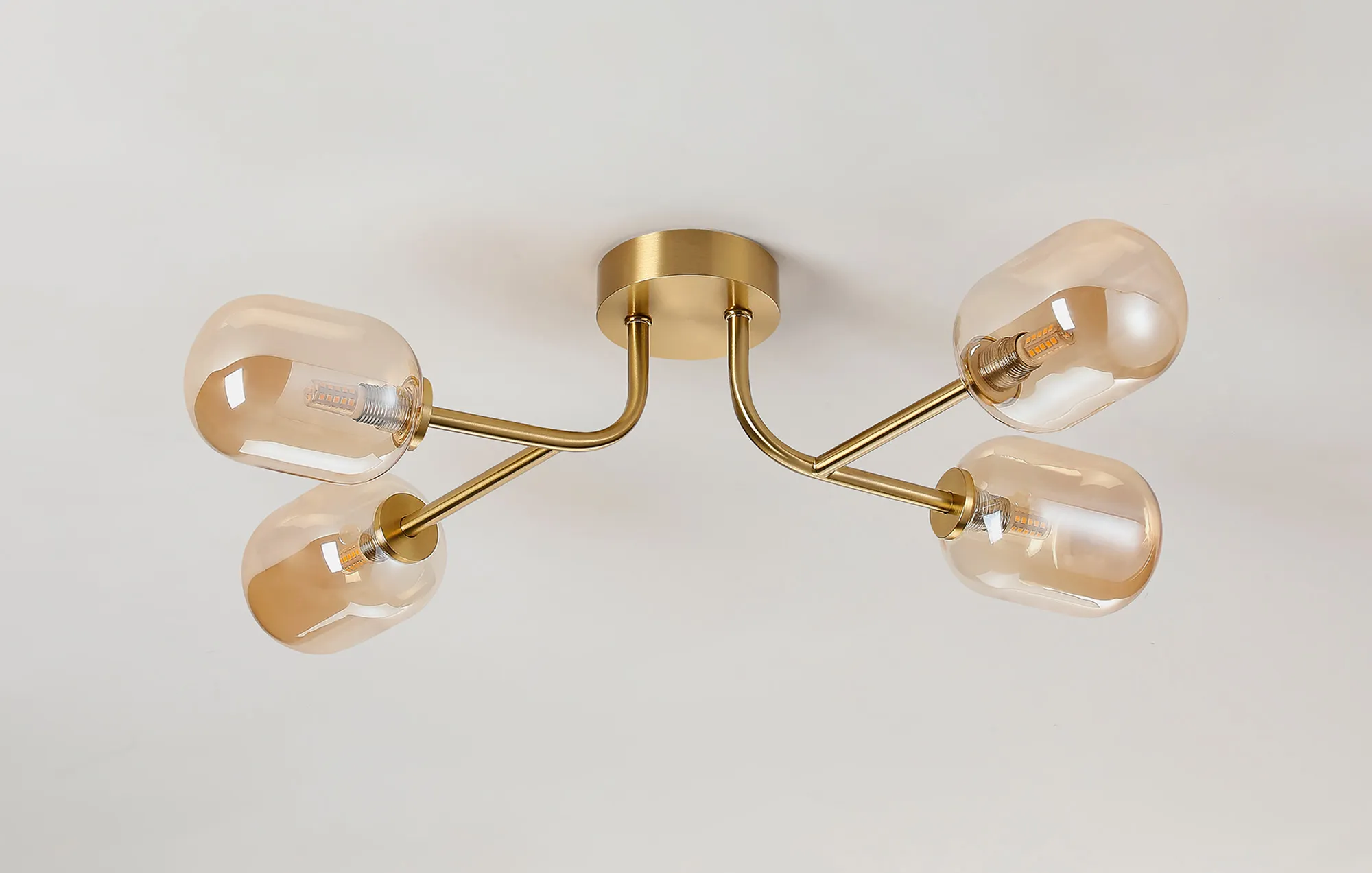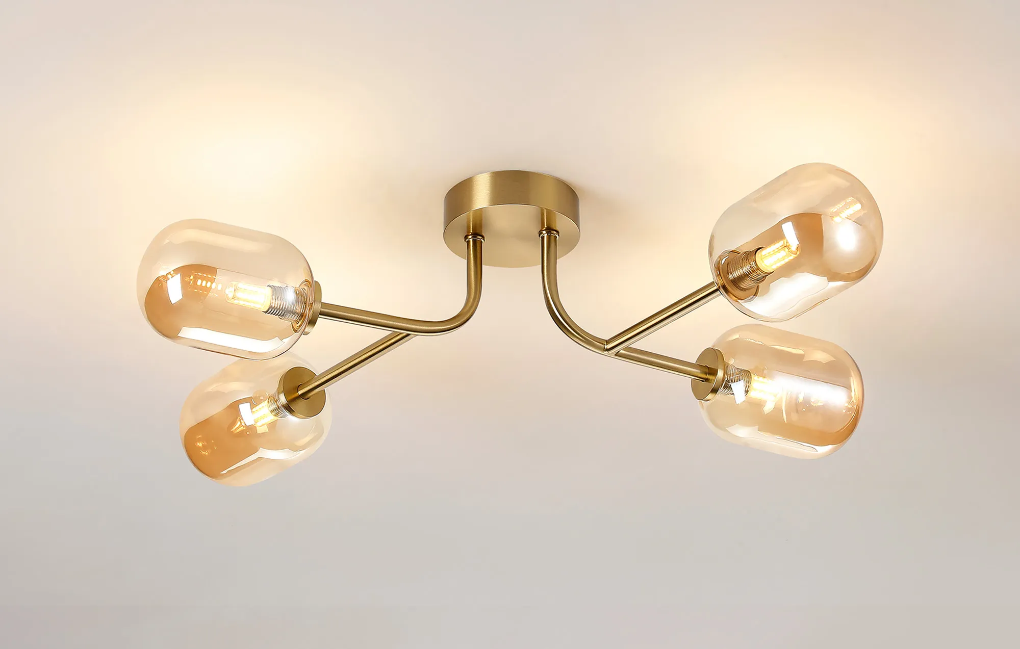 OTHER Casalserugo Linear Semi Flush Ceiling 4 Light IP44 Brass Gold/Amber Smooth Tubular Glass