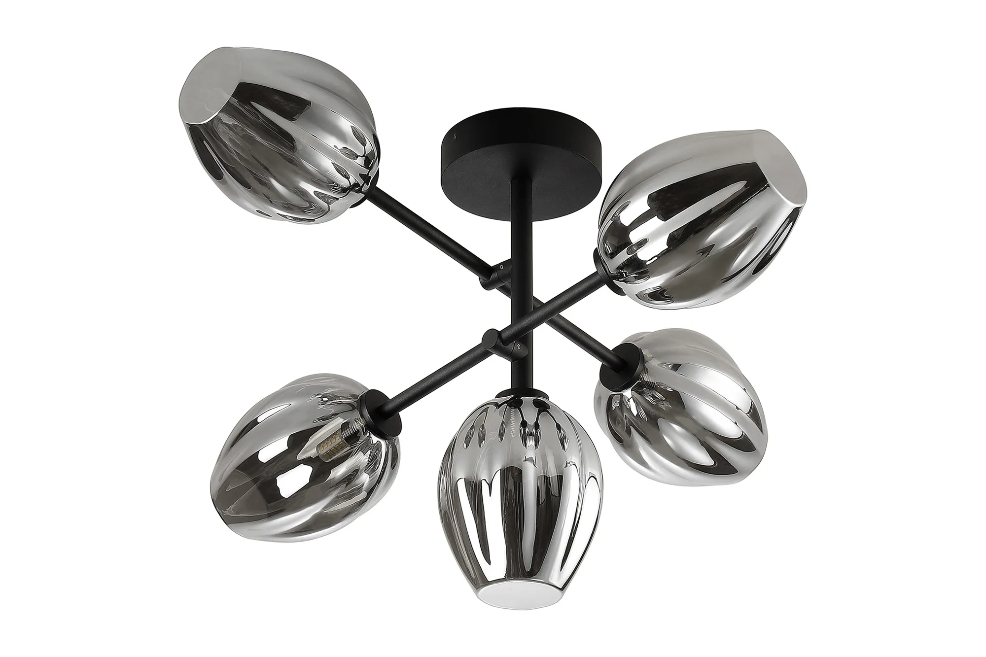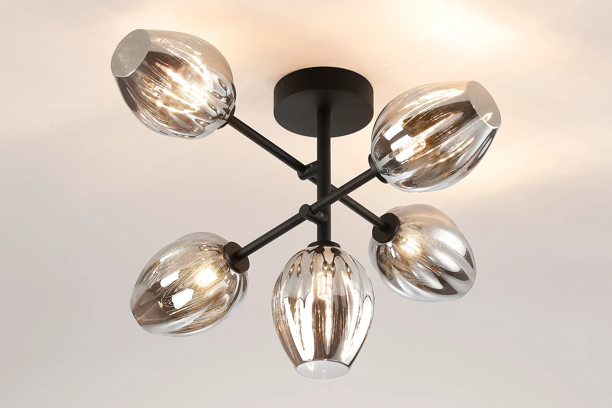 Casalserugo Semi Flush Ceiling Tiered Adjustable Arms, 5 Light G9, IP44, Satin Black/Clear Tulip Glass Shade
