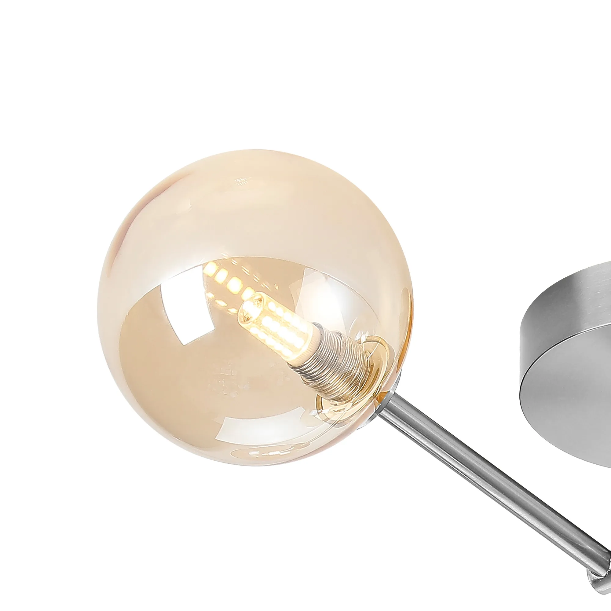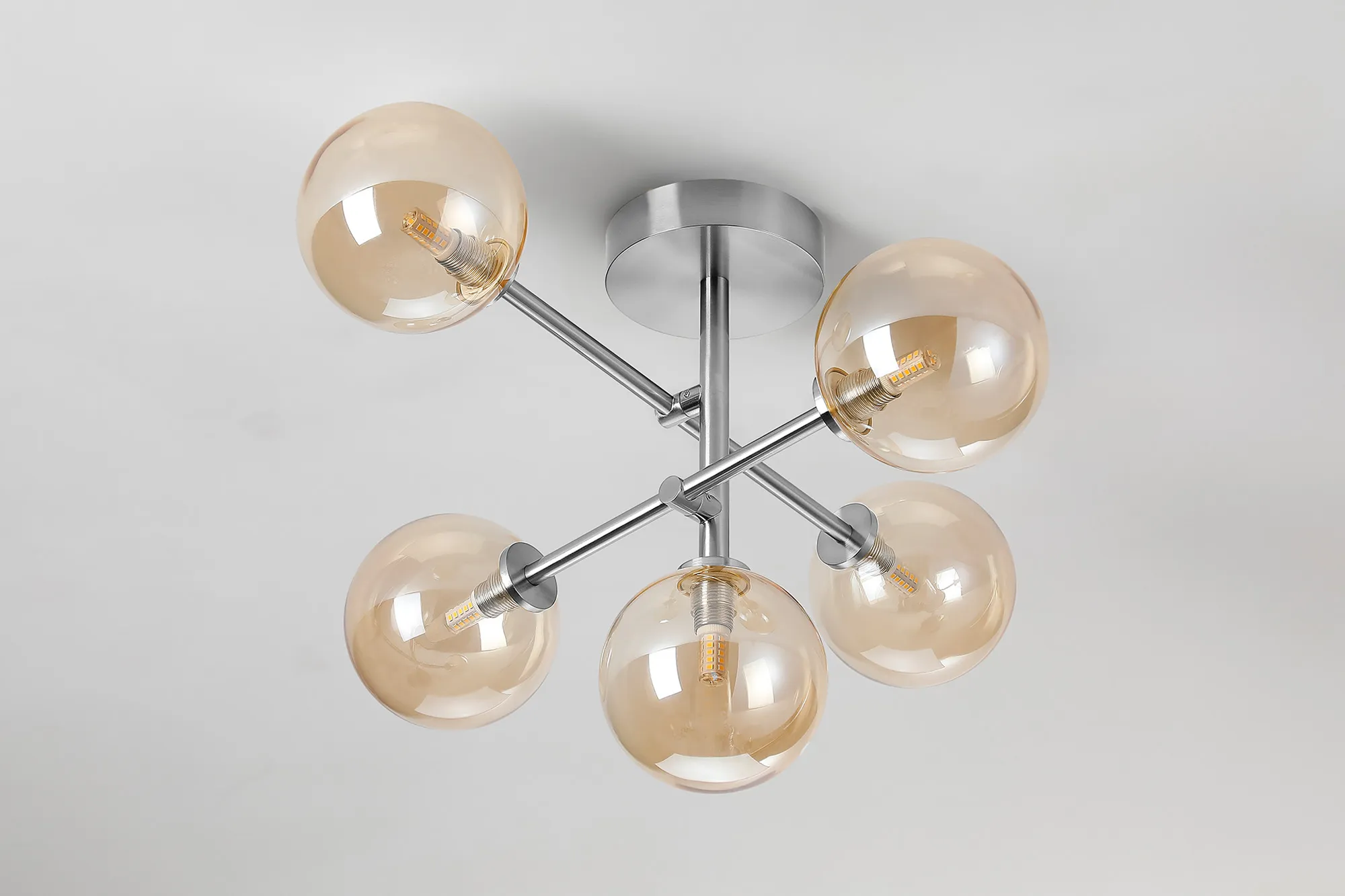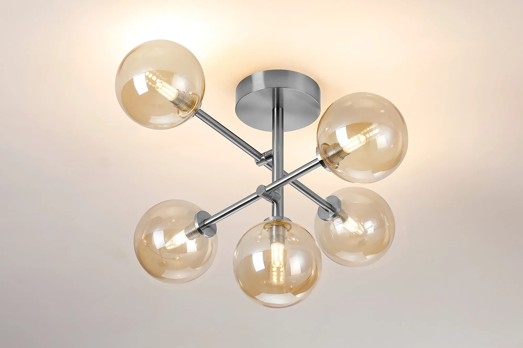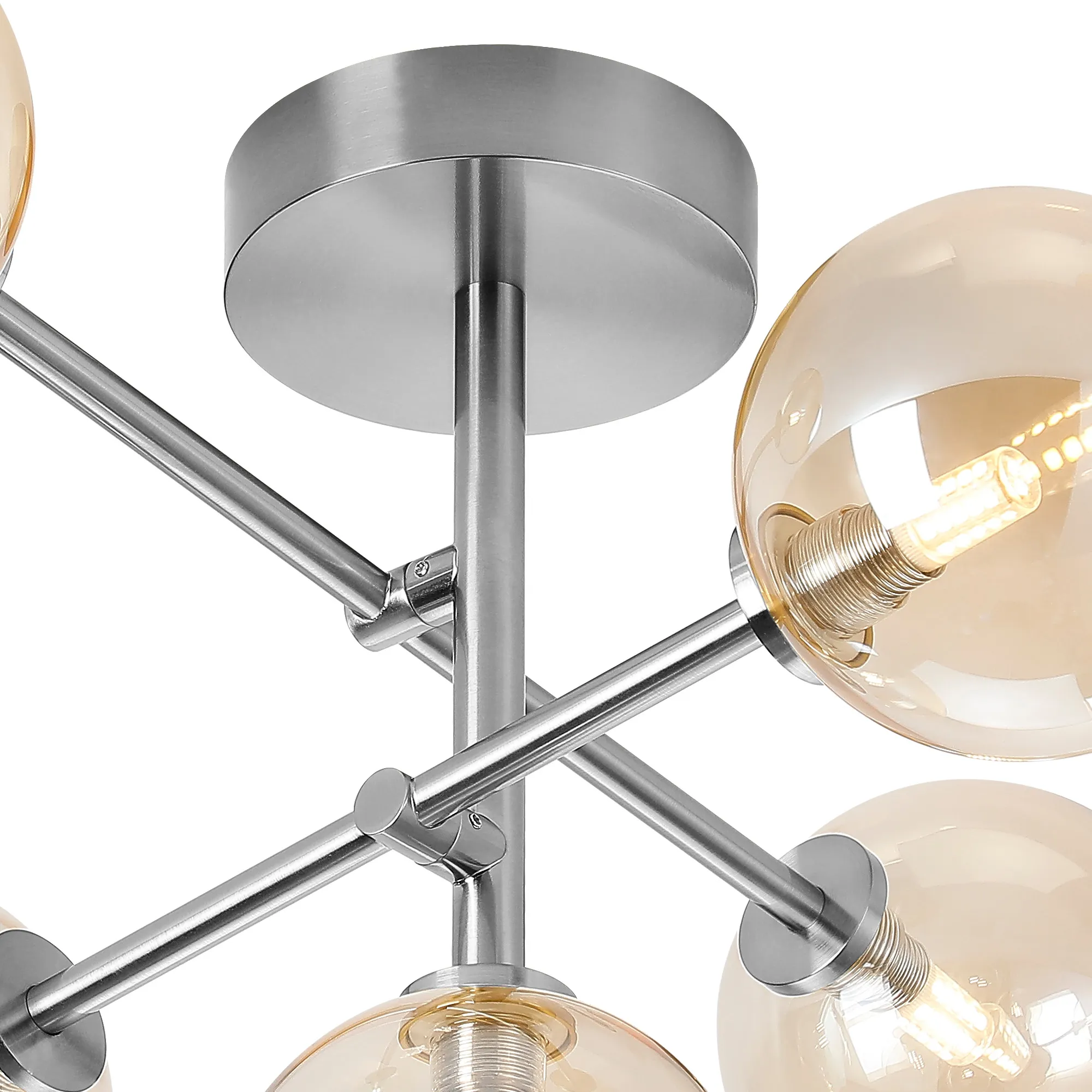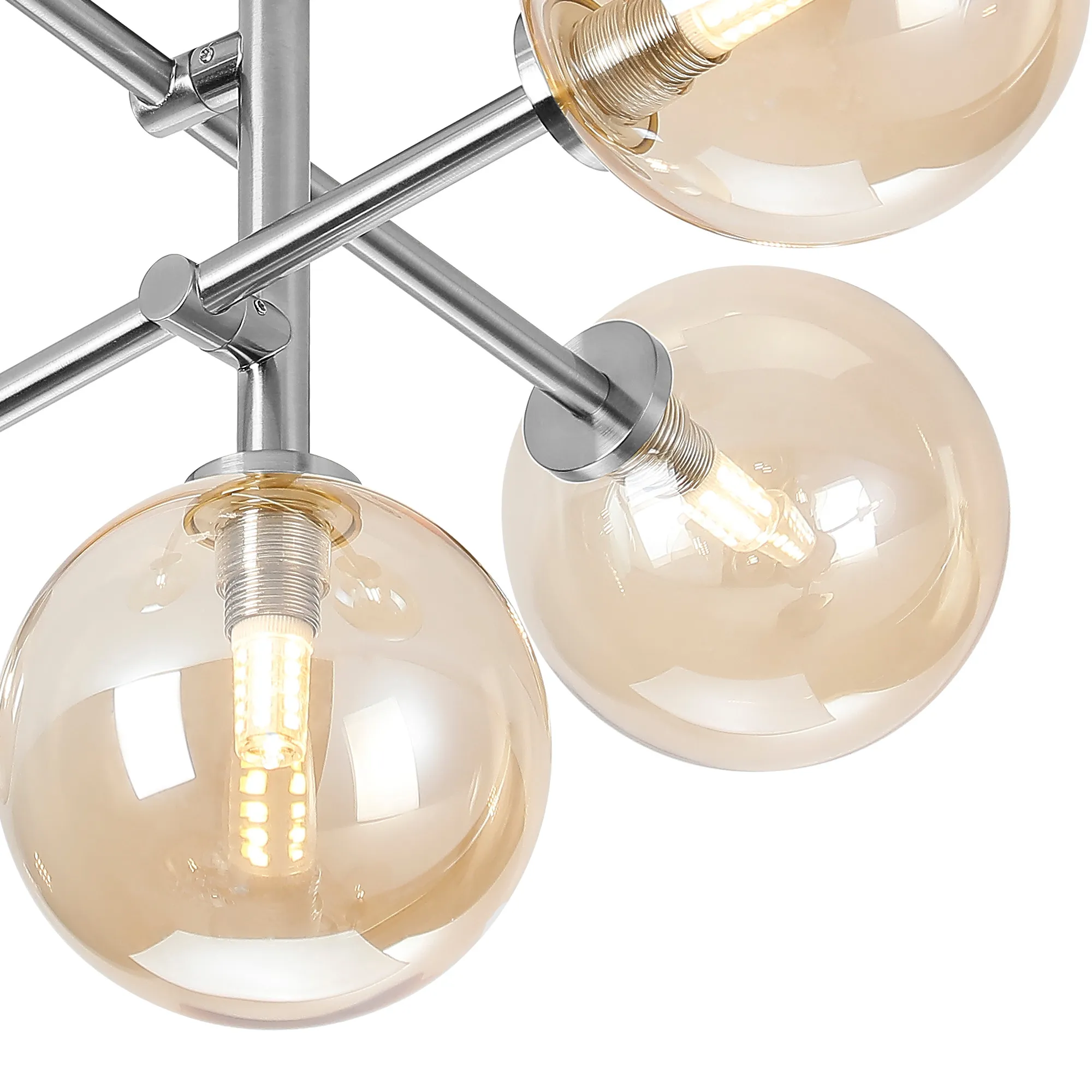Casalserugo Semi Flush Ceiling Tiered Adjustable Arms, 5 Light G9, IP44, Polished Chrome/Amber Ribbed Round Glass