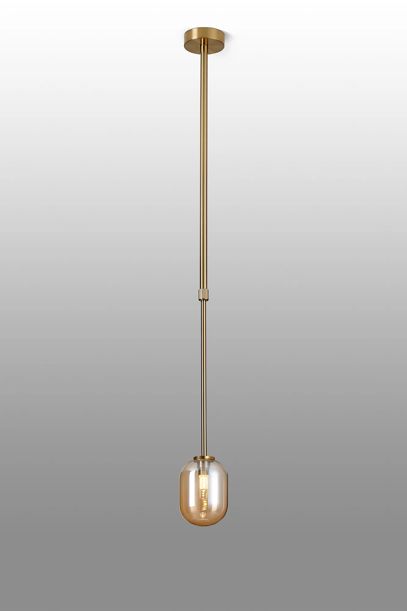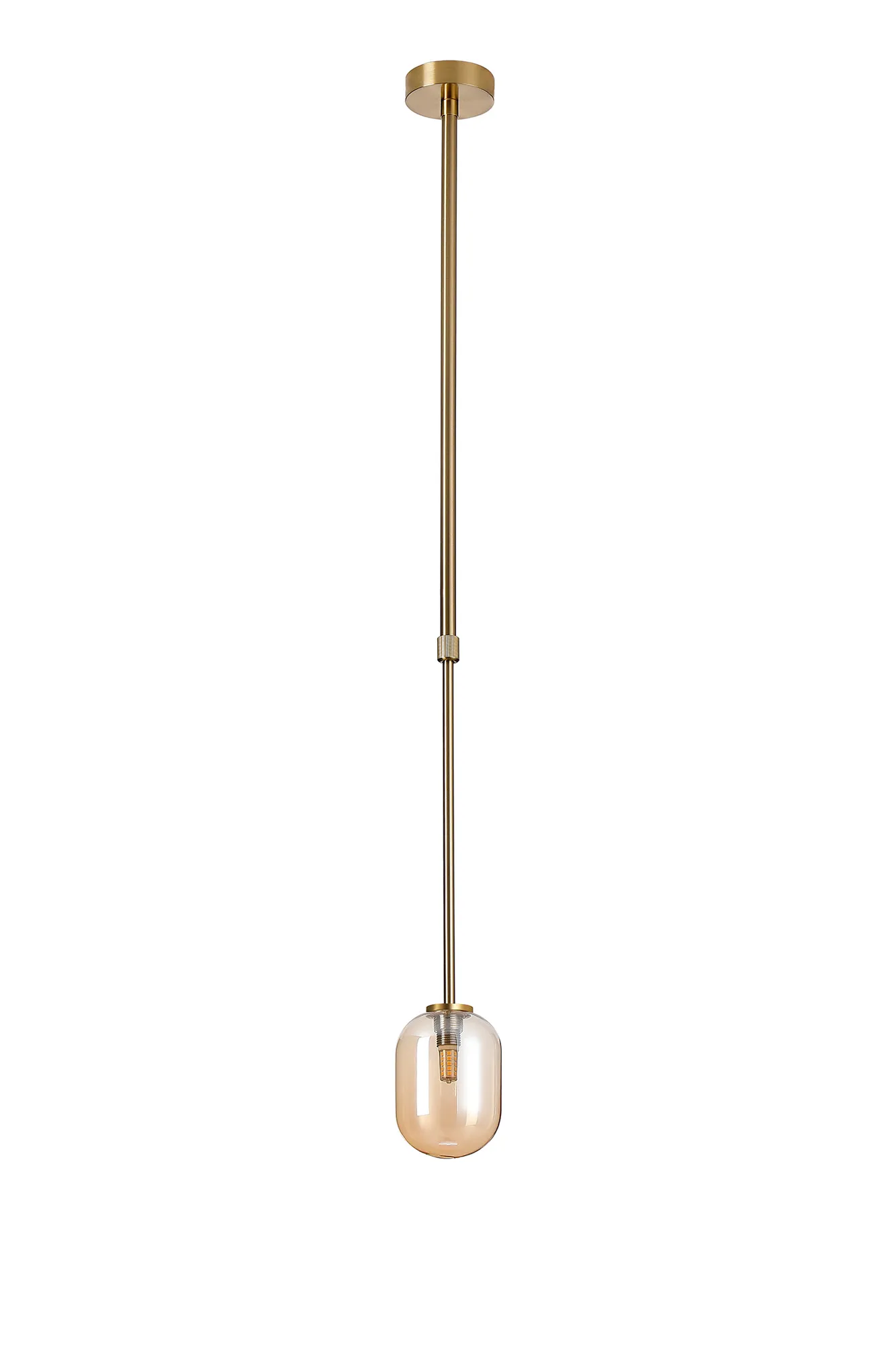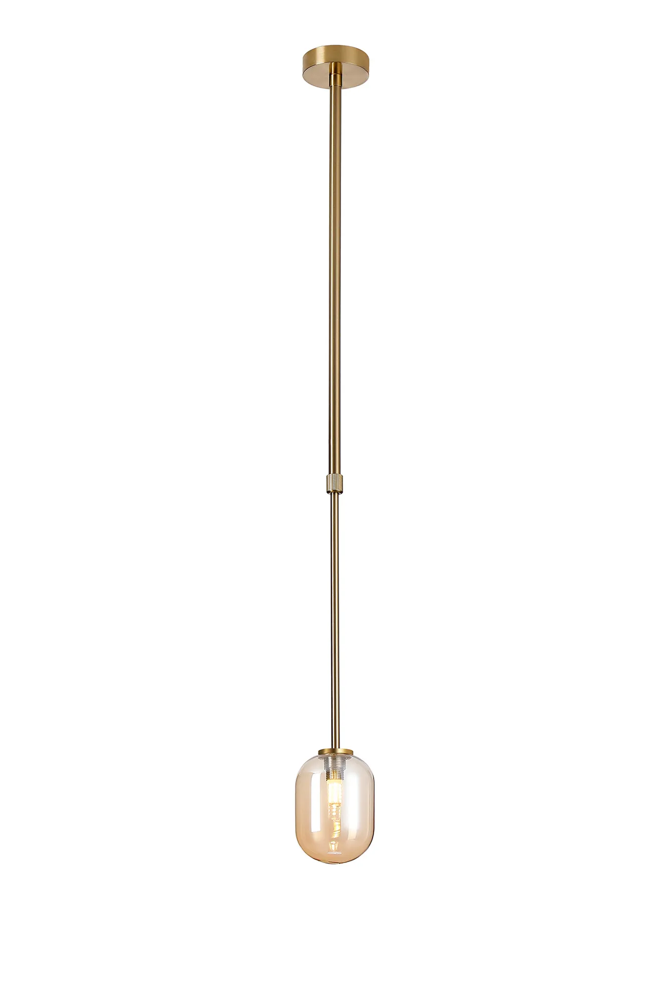 OTHER Casalserugo Telescopic Pendant 1 Light IP44 Brass Gold/Amber Smooth Tubular Glass