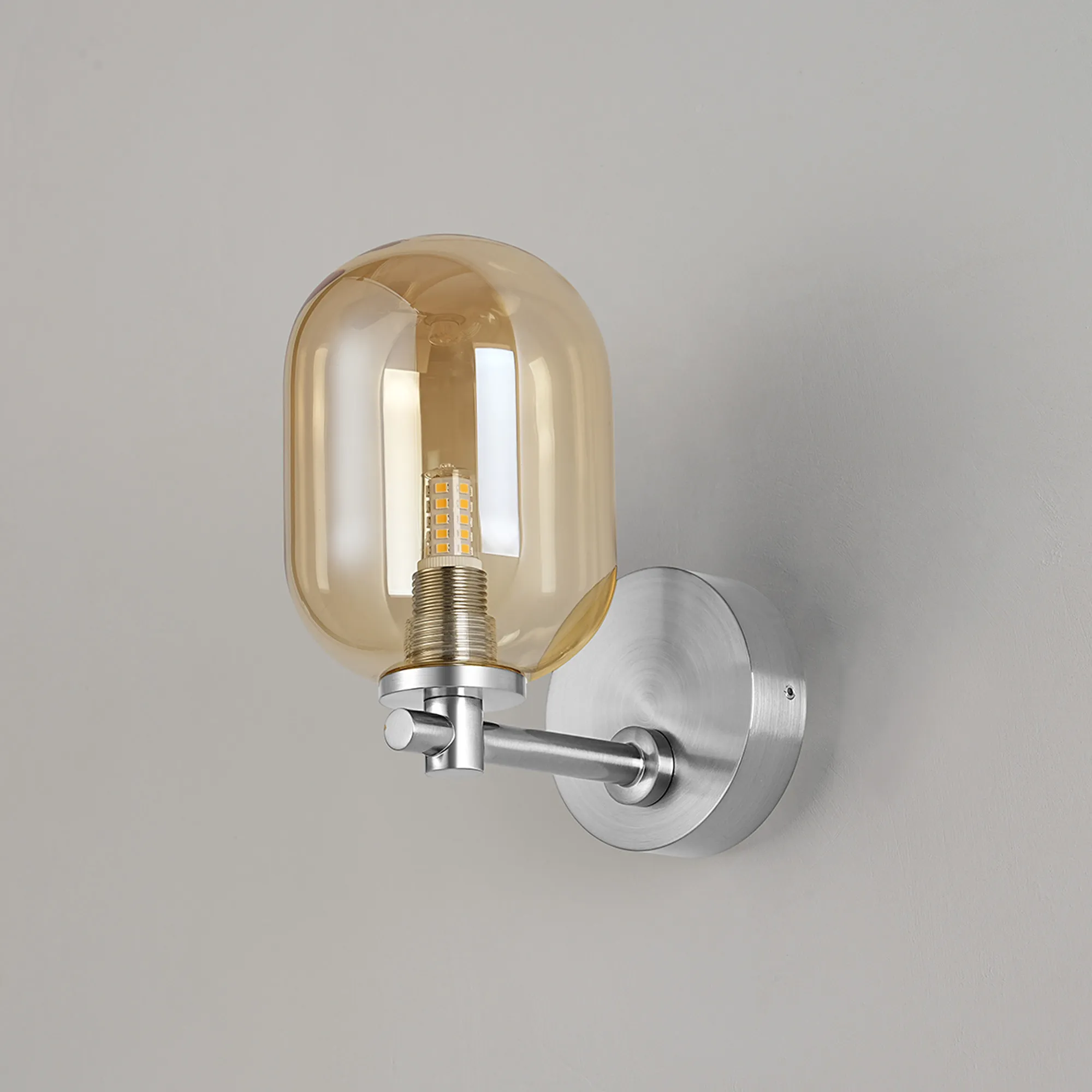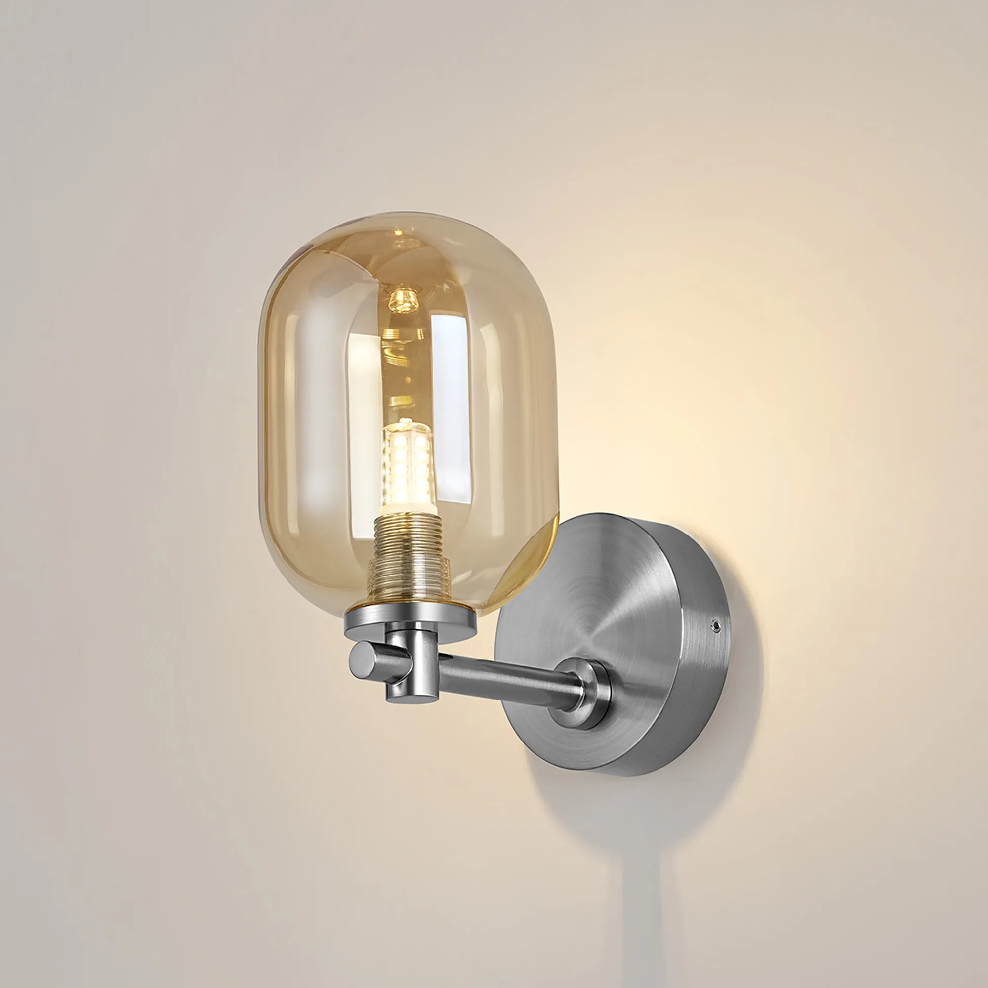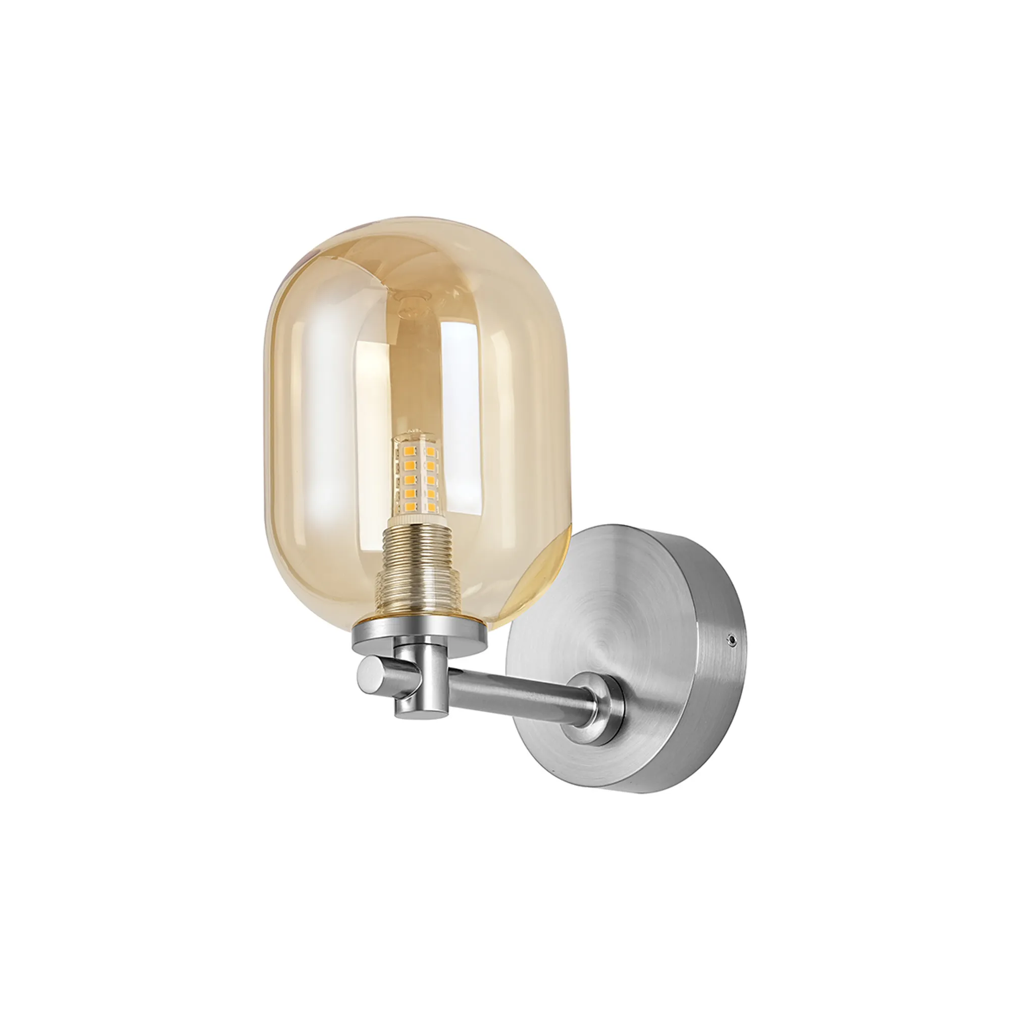 OTHER Casalserugo Short Arm Wall Light, 1 Light G9, IP44, Polished Chrome/Amber Smooth Tubular Glass