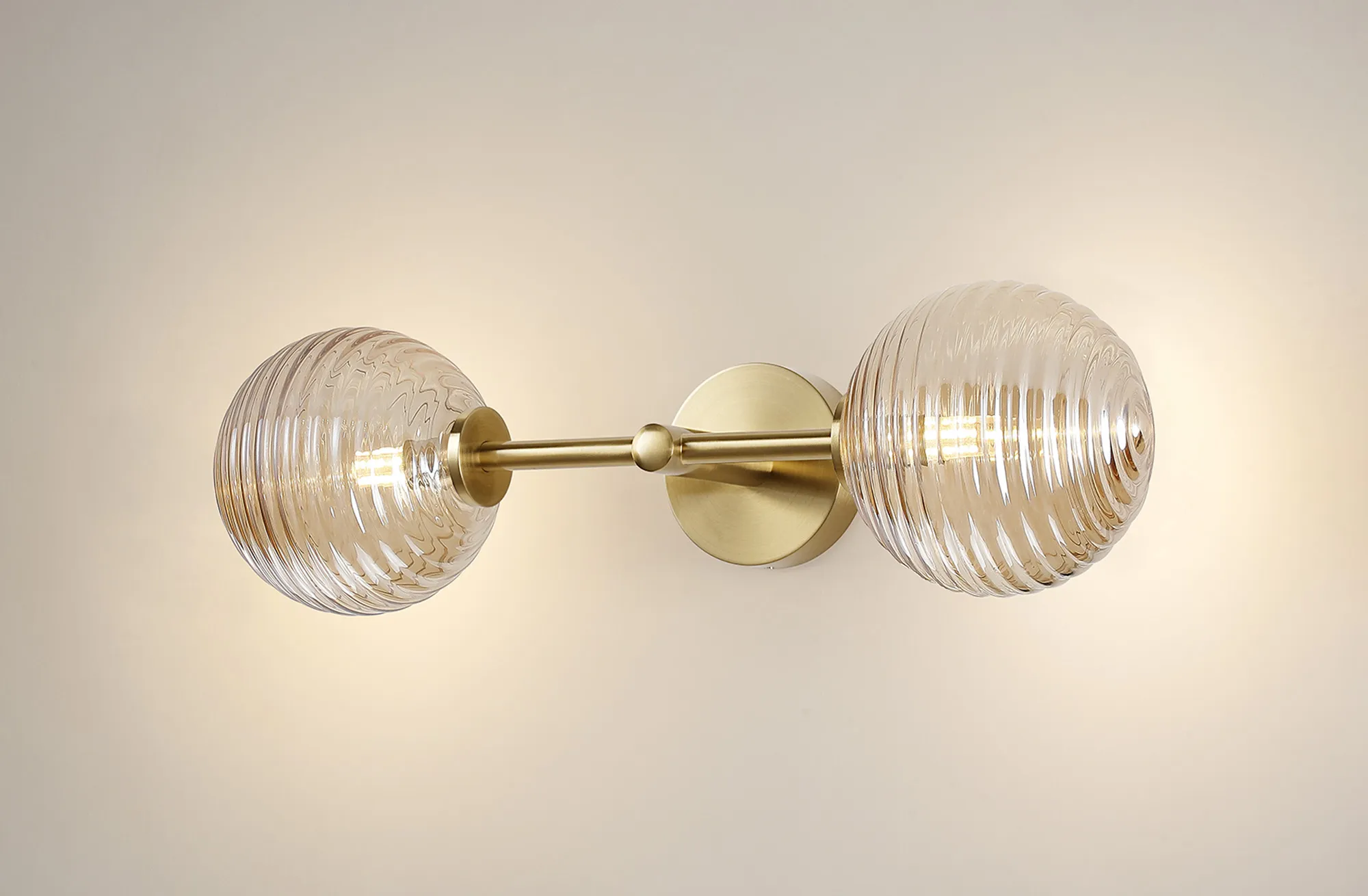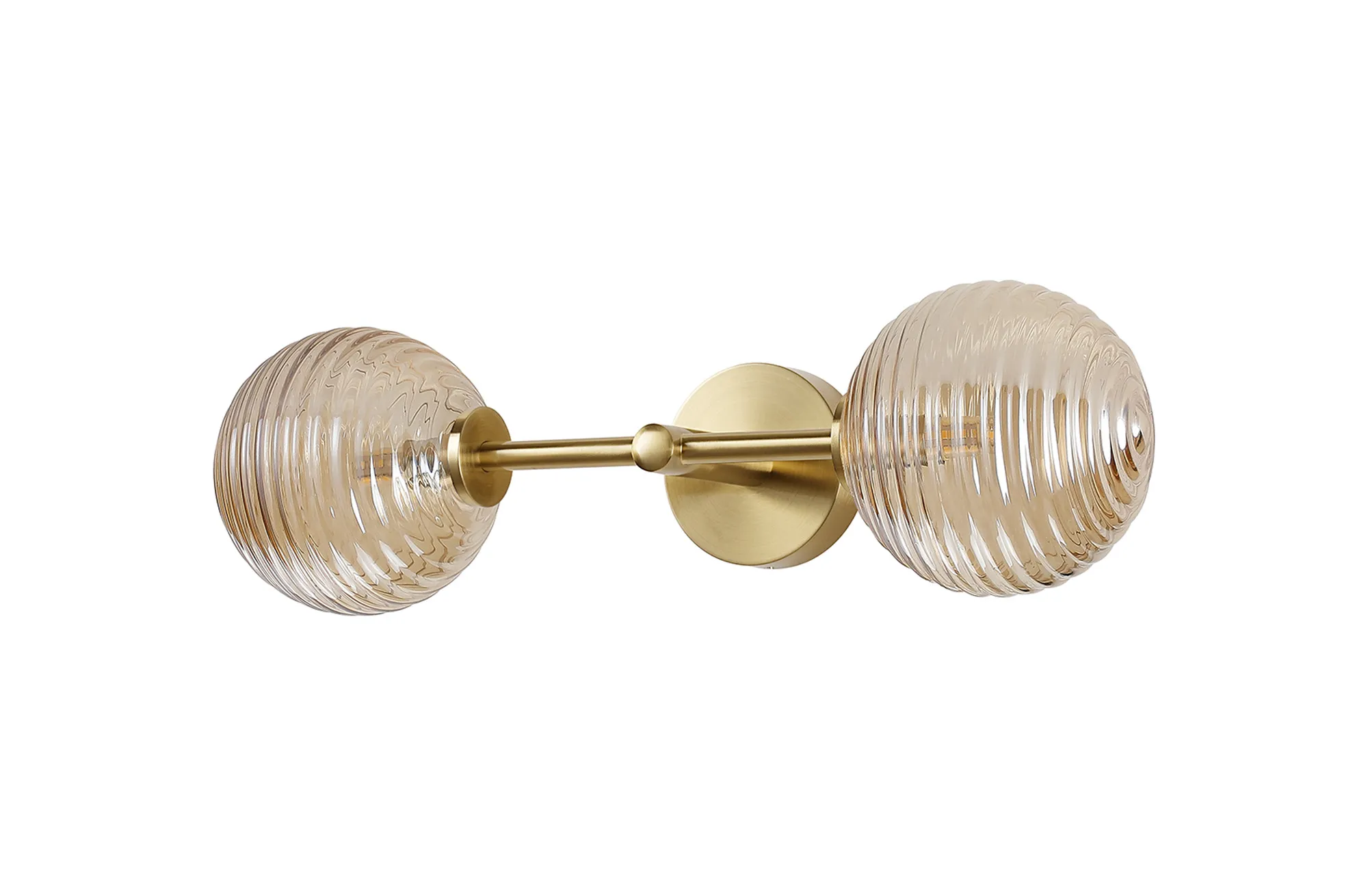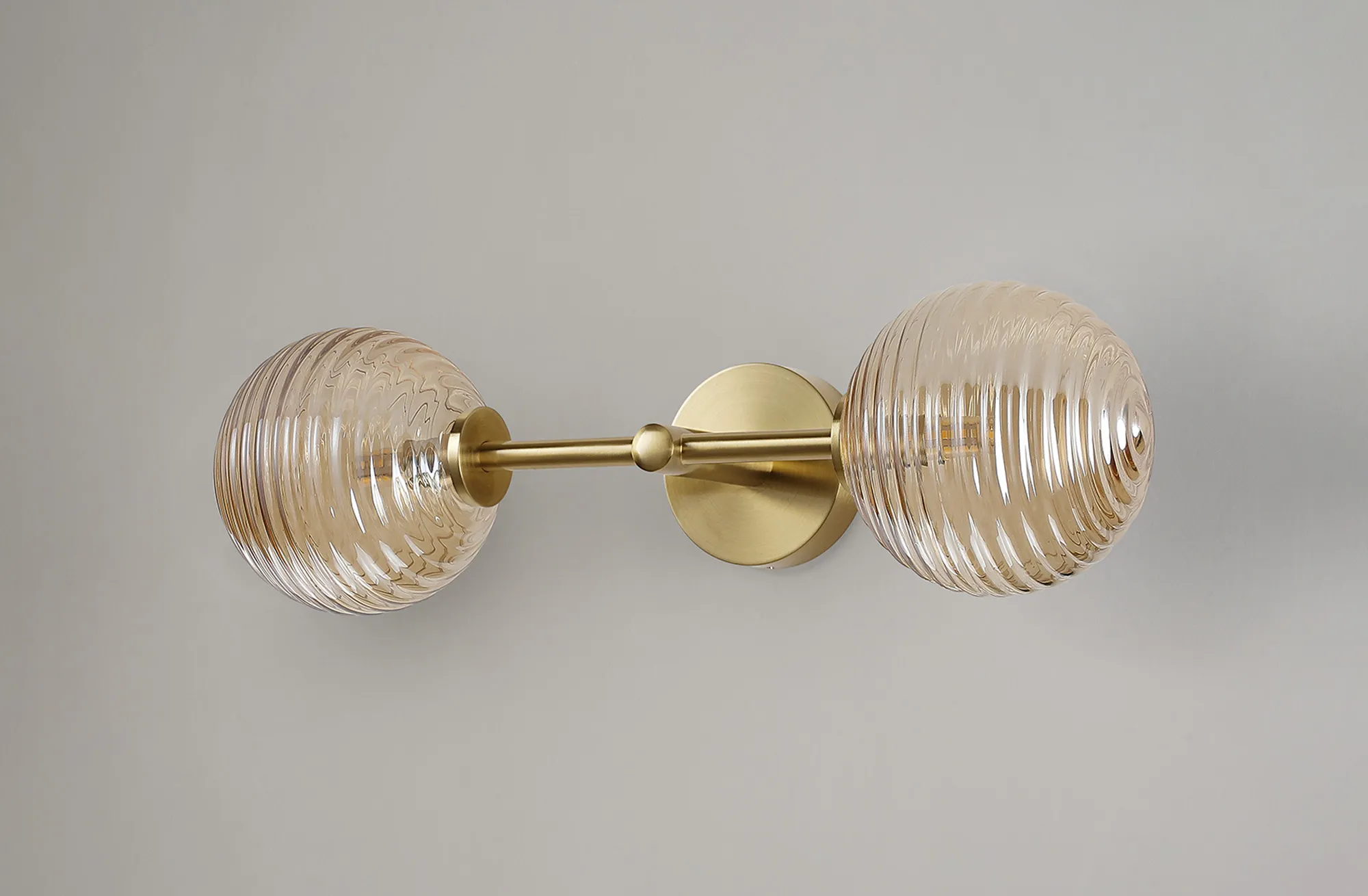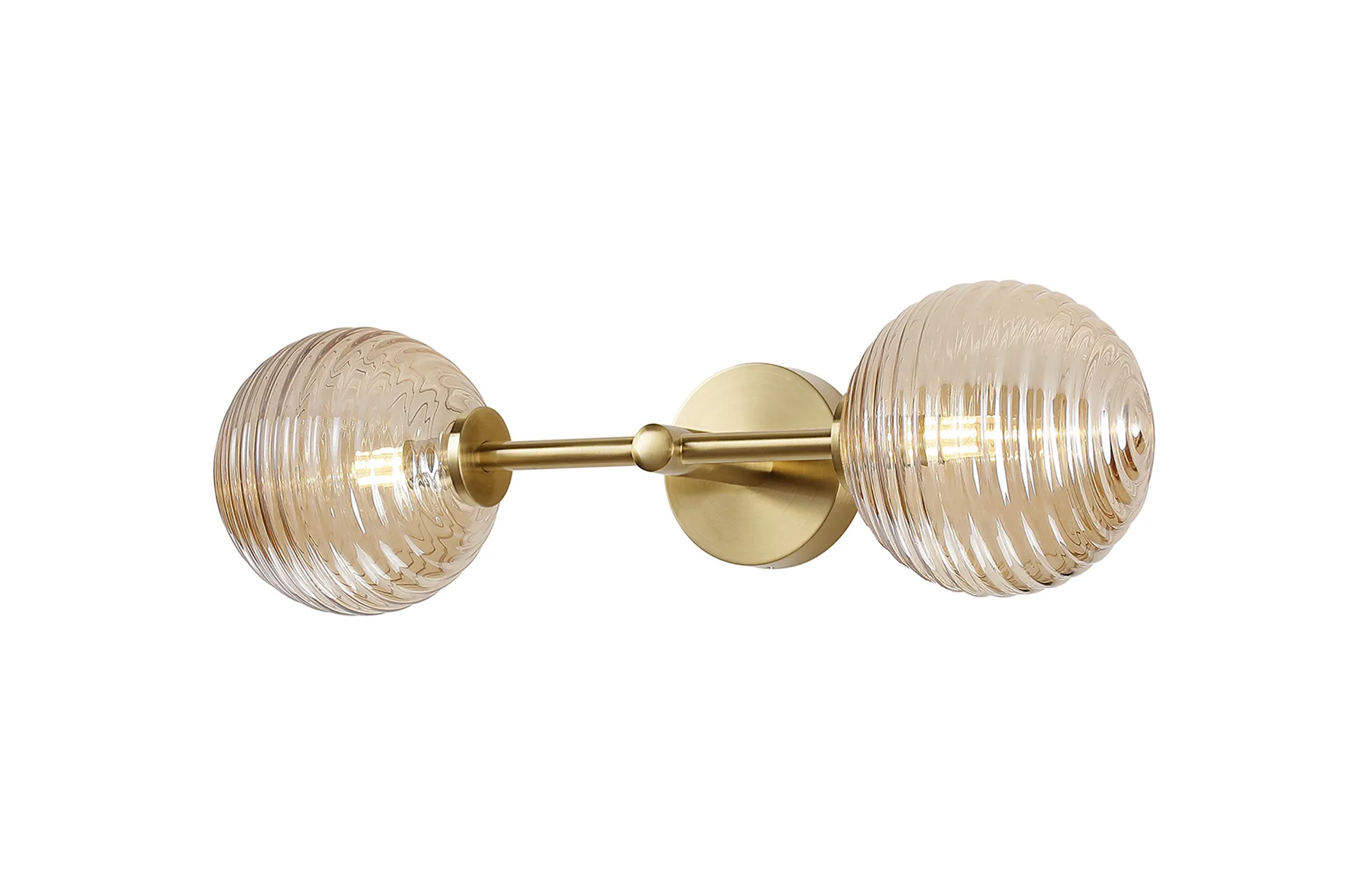 OTHER Casalserugo Medium Arm Wall Lamp 2 Light IP44 Brass Gold/Amber Ribbed Round Glass