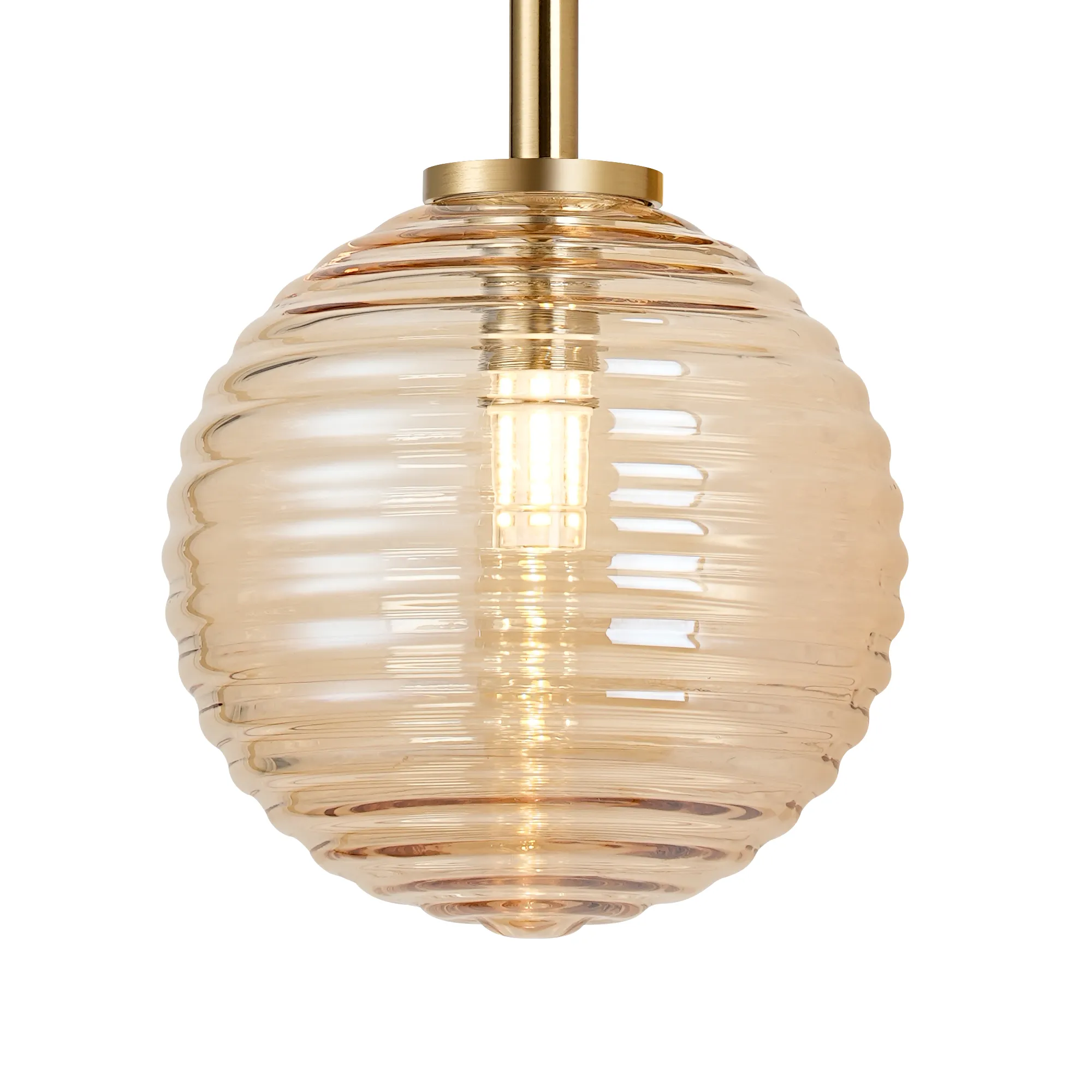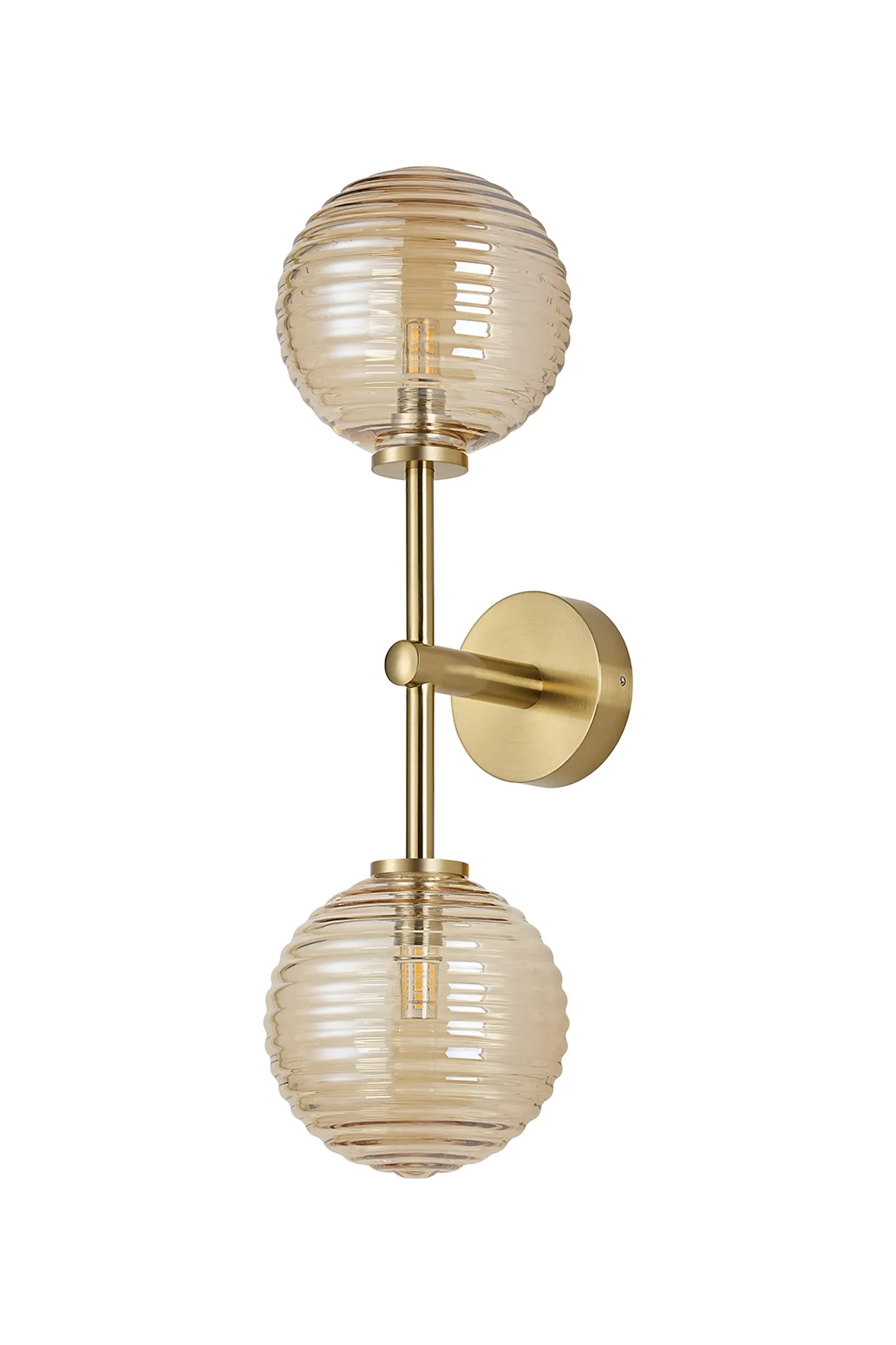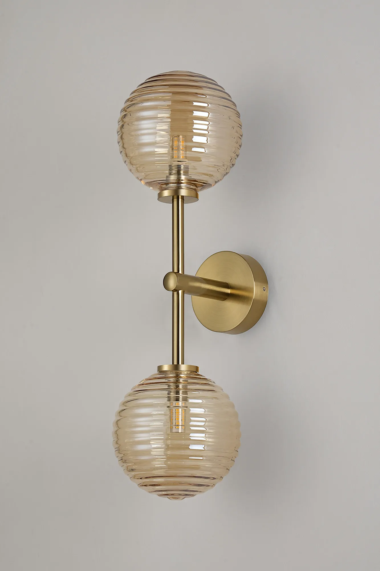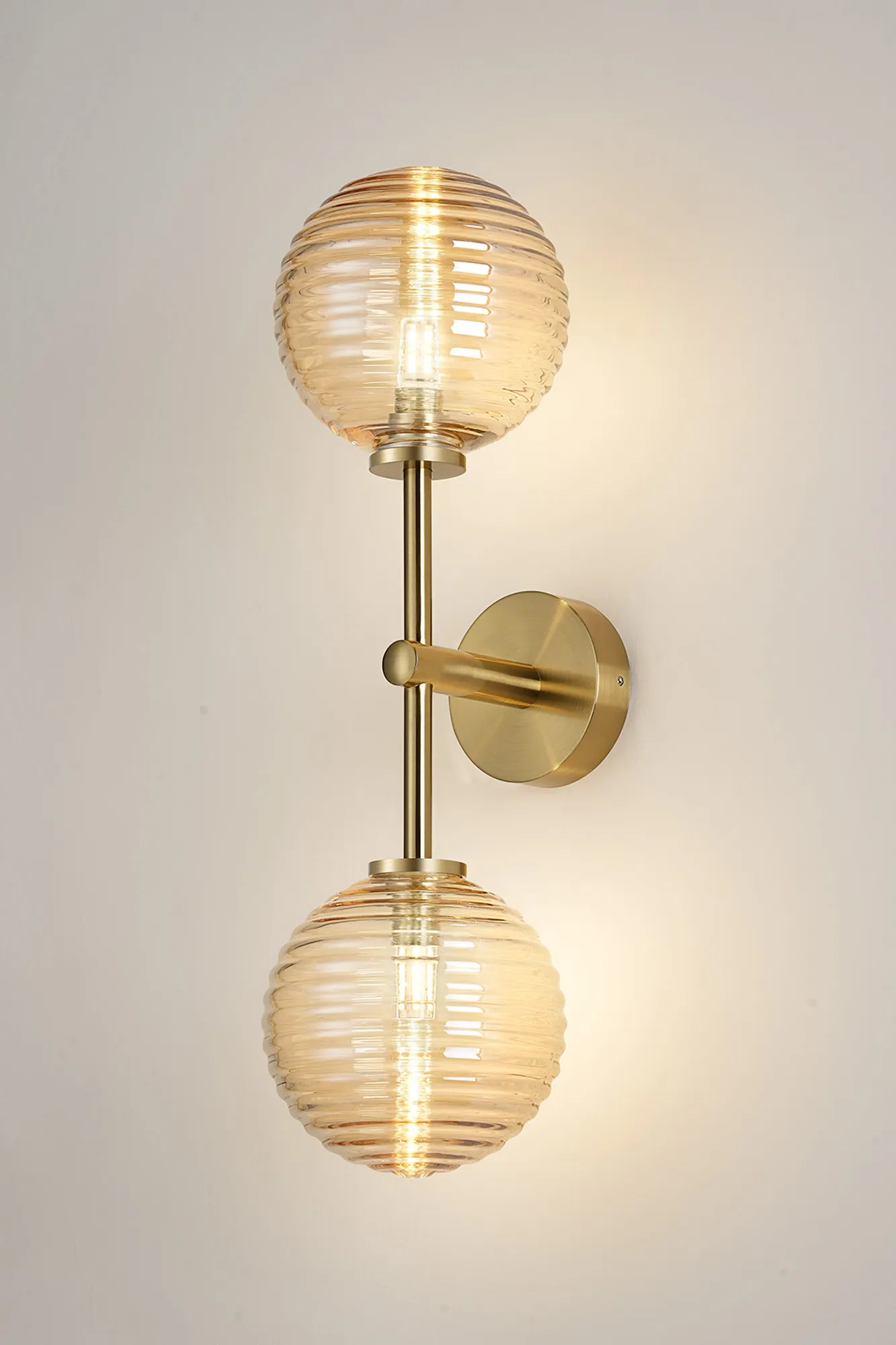 OTHER Casalserugo Medium Arm Wall Lamp 2 Light IP44 Brass Gold/Amber Ribbed Round Glass