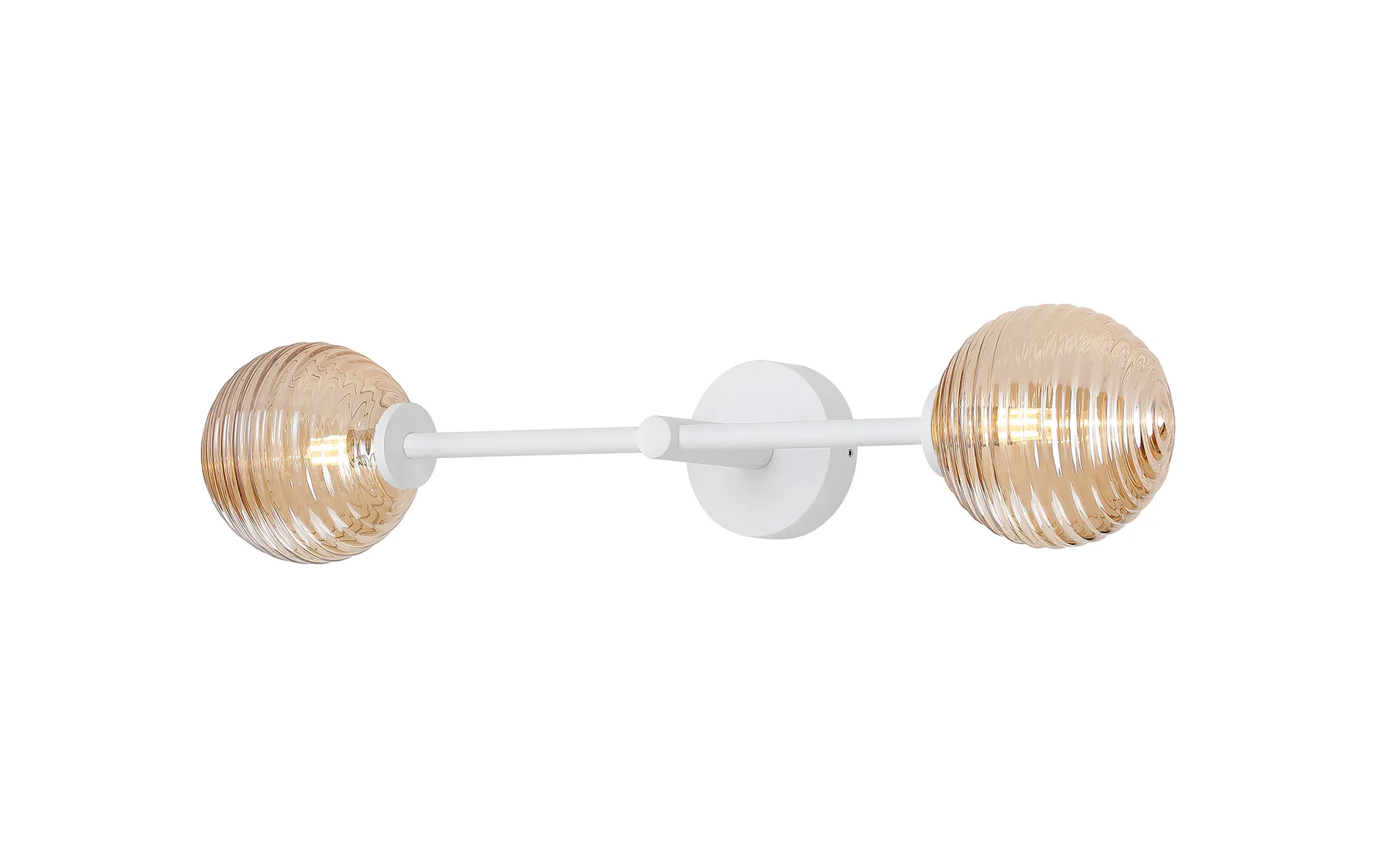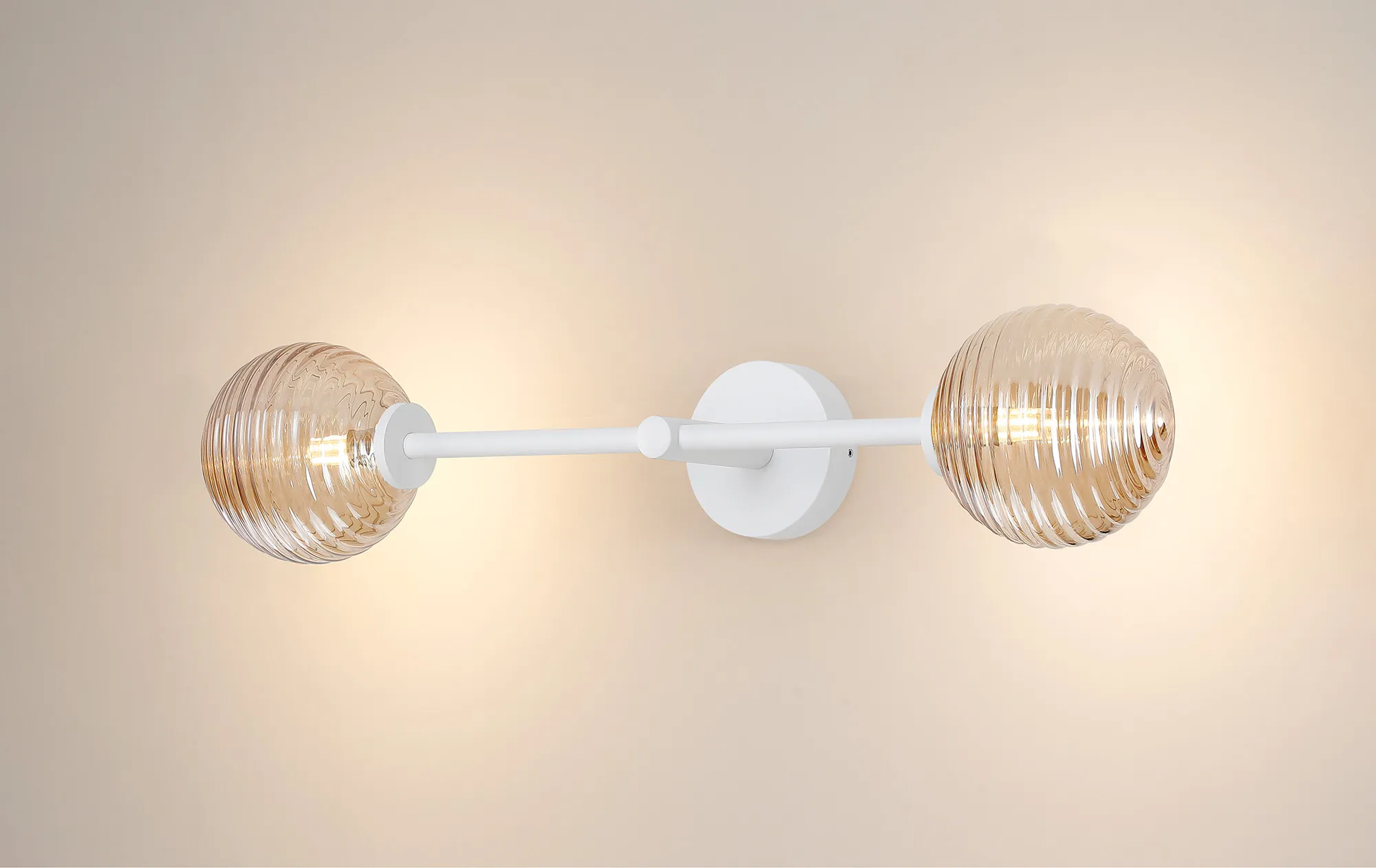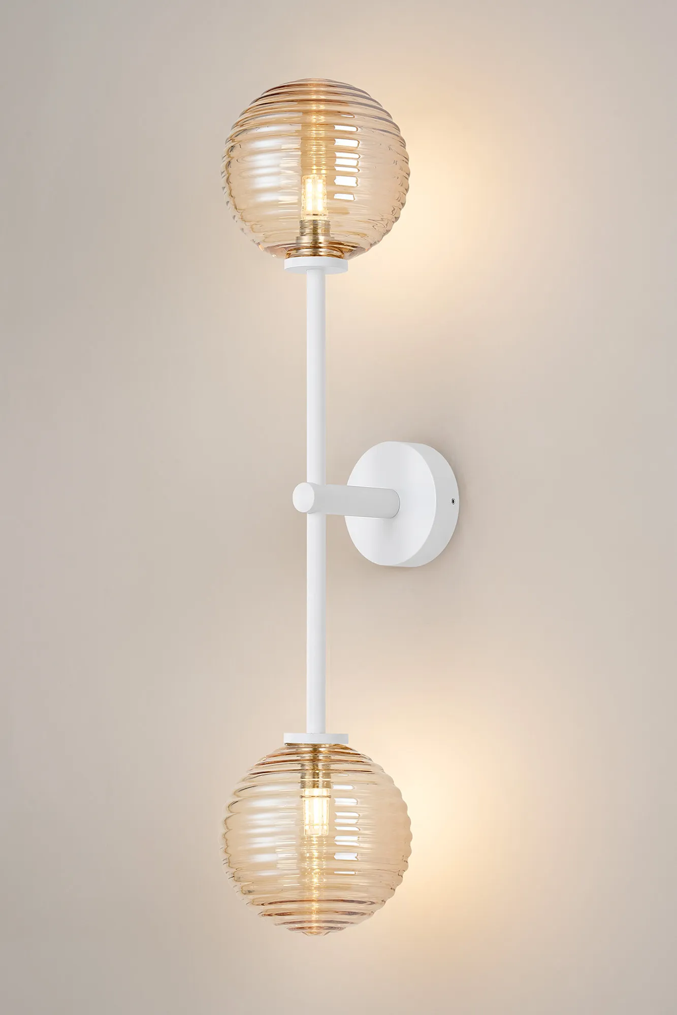 OTHER Casalserugo Tall Arm Wall Light, 2 Light G9, IP44, Satin White/Amber Ribbed Round Glass