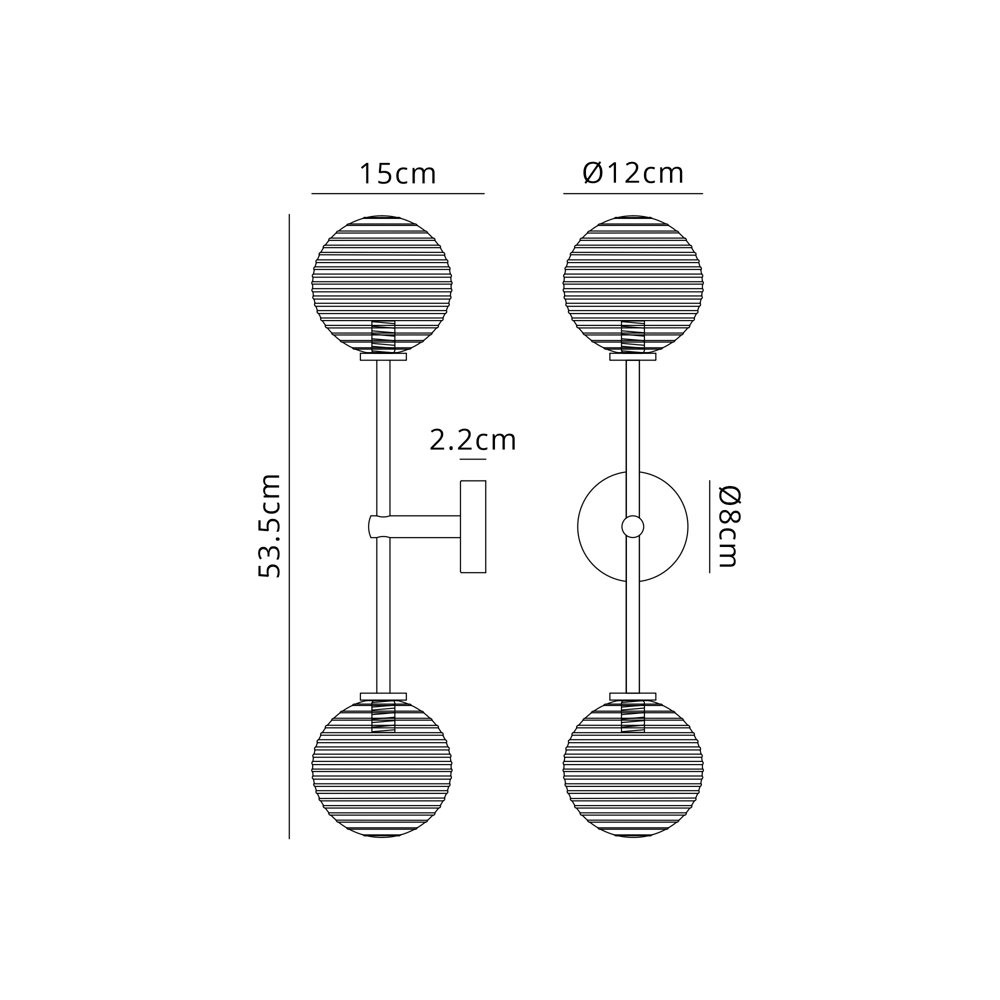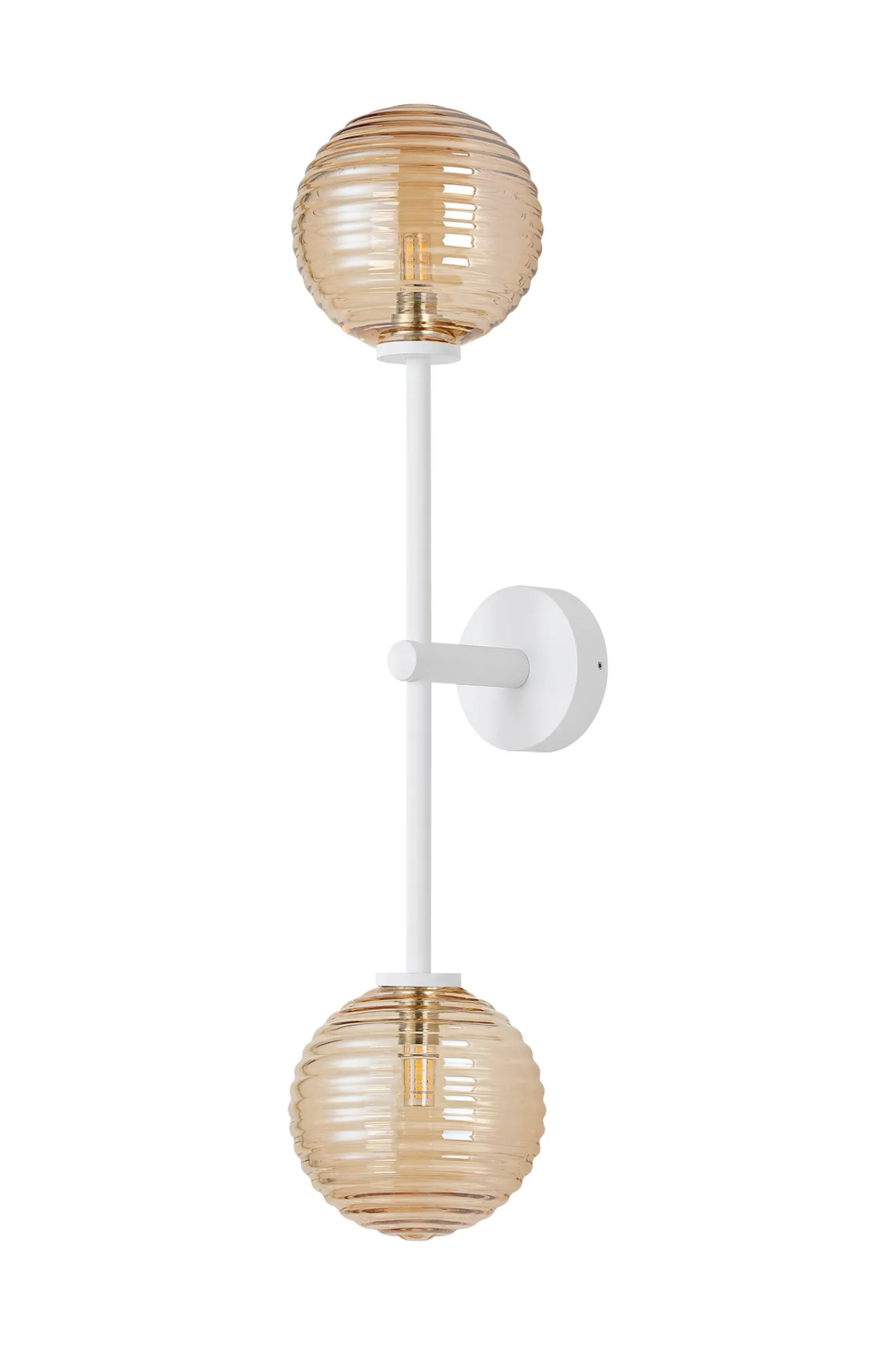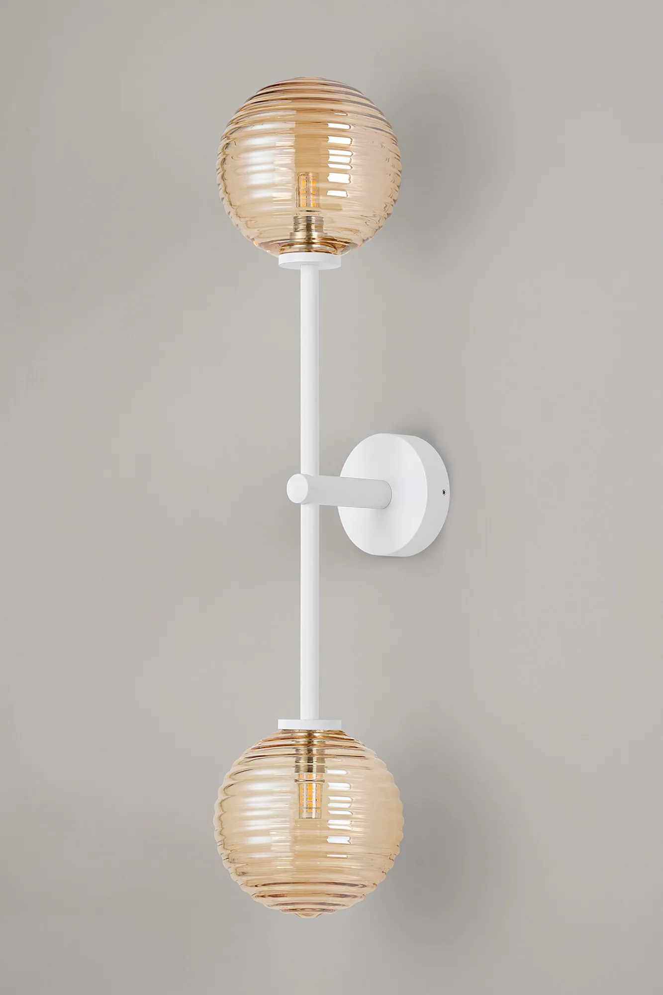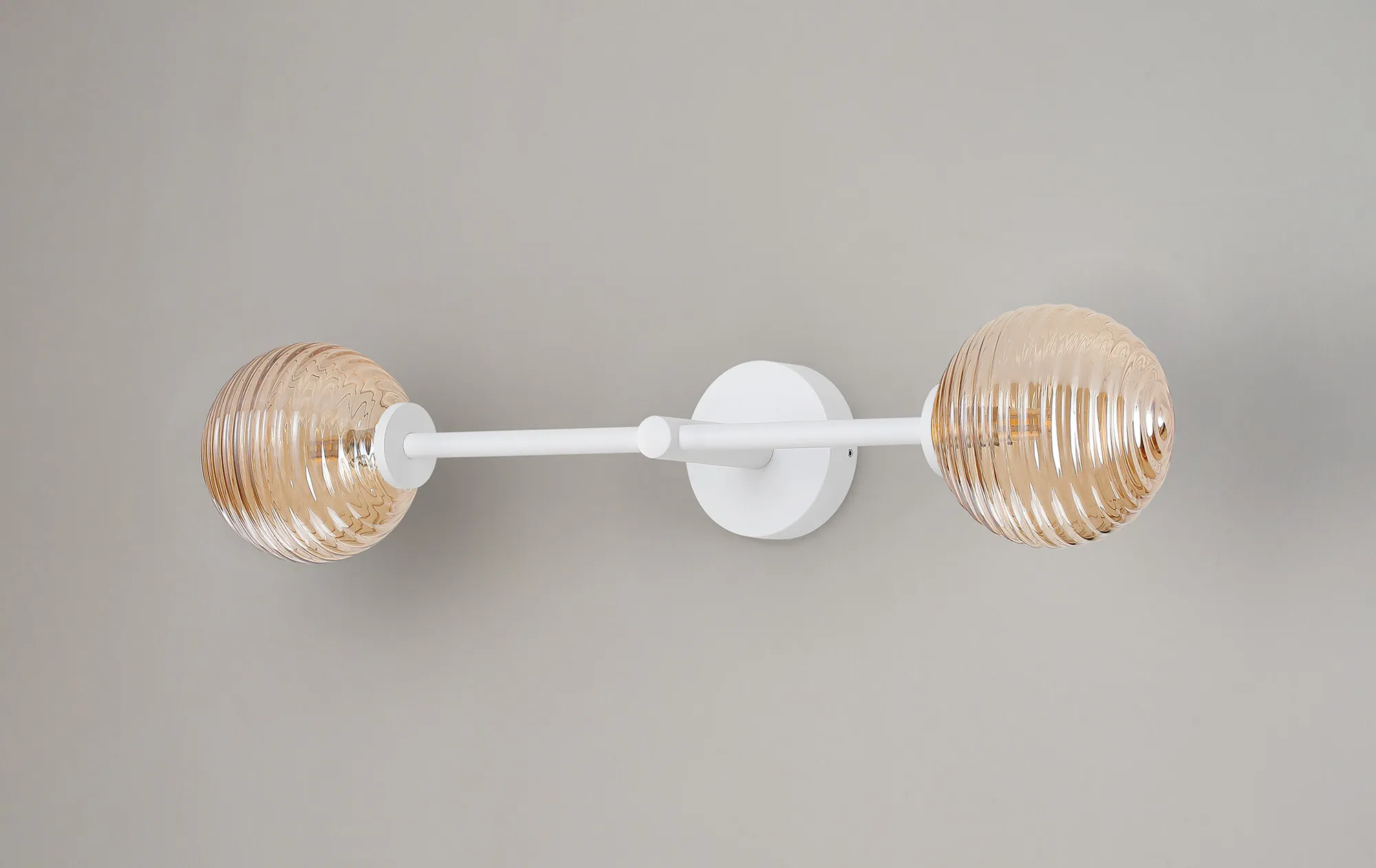 OTHER Casalserugo Tall Arm Wall Light, 2 Light G9, IP44, Satin White/Amber Ribbed Round Glass