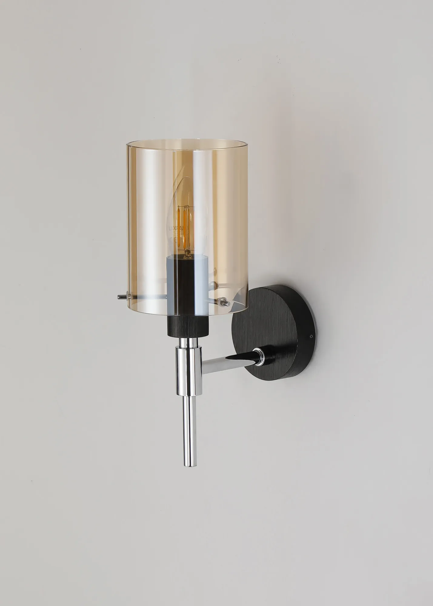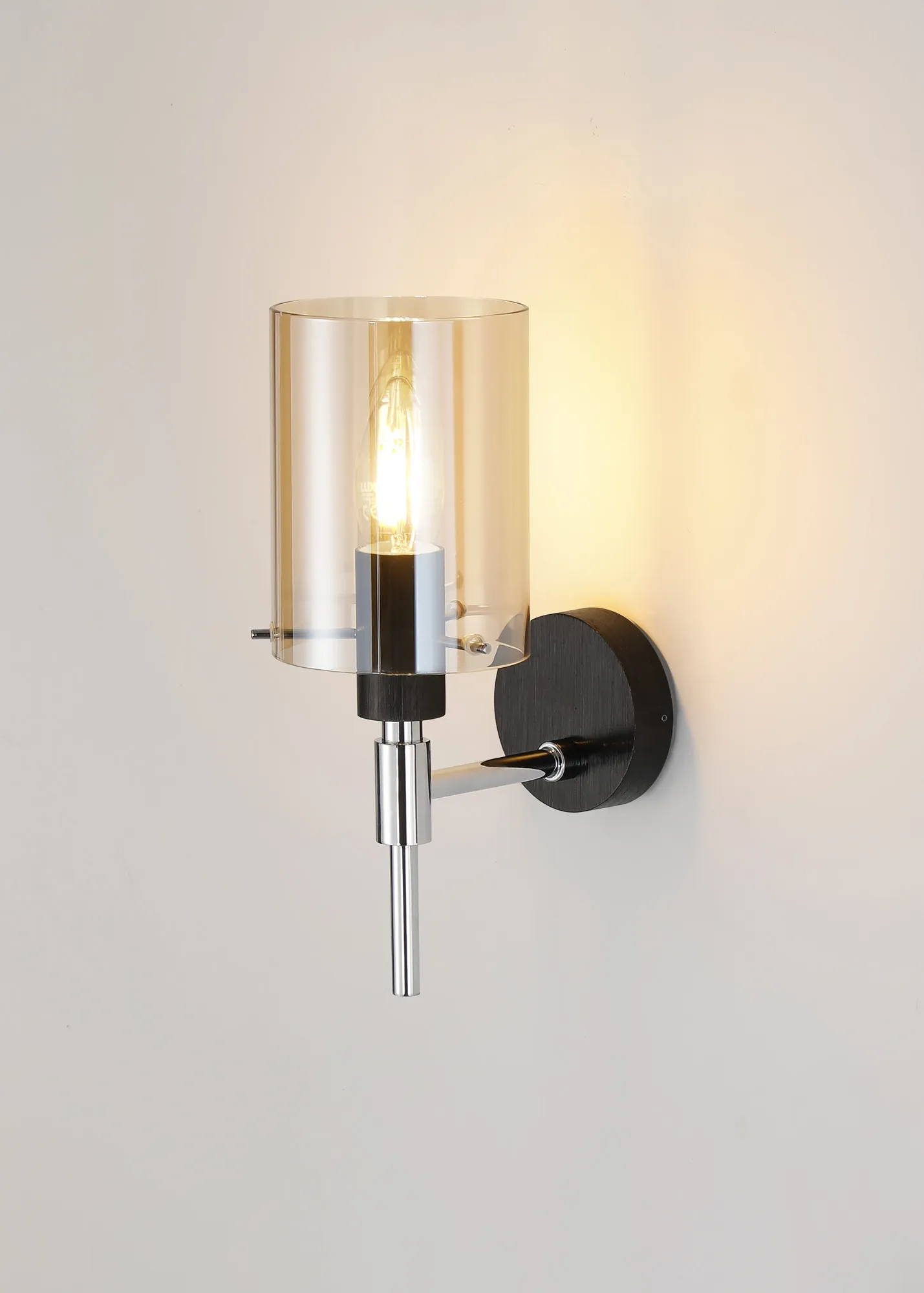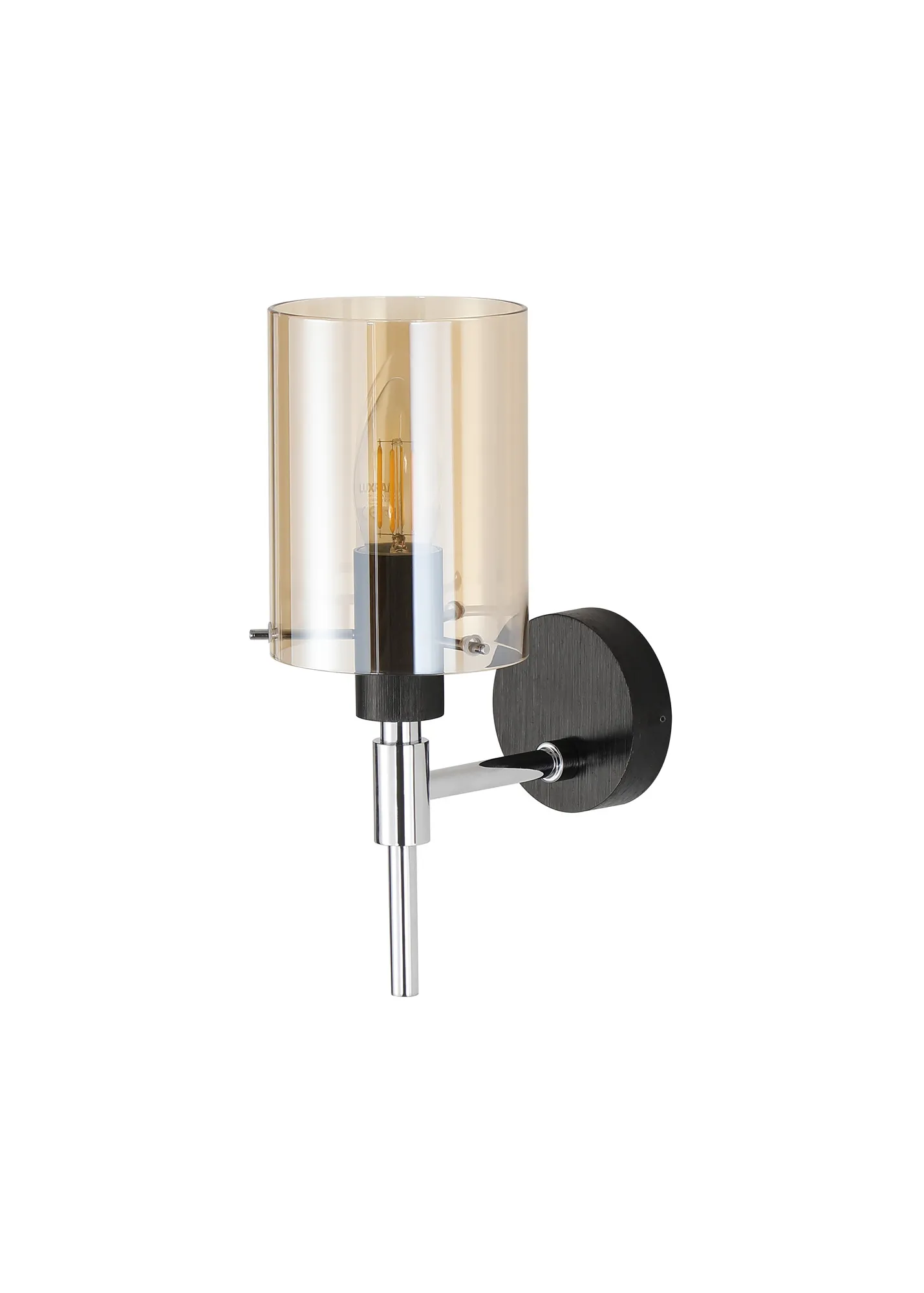 OTHER Bressanvido Wall Lamp 1 Light IP44 Cylinder Glass Black/Polished Chrome/Amber