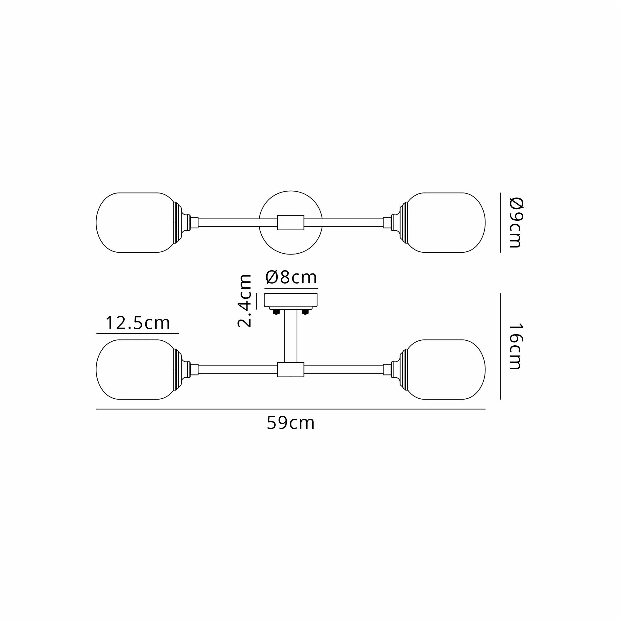Cadoneghe Ceiling/Wall Light Linear, 2 Light G9, IP44, Polished Nickel/Amber Smooth Round Glass