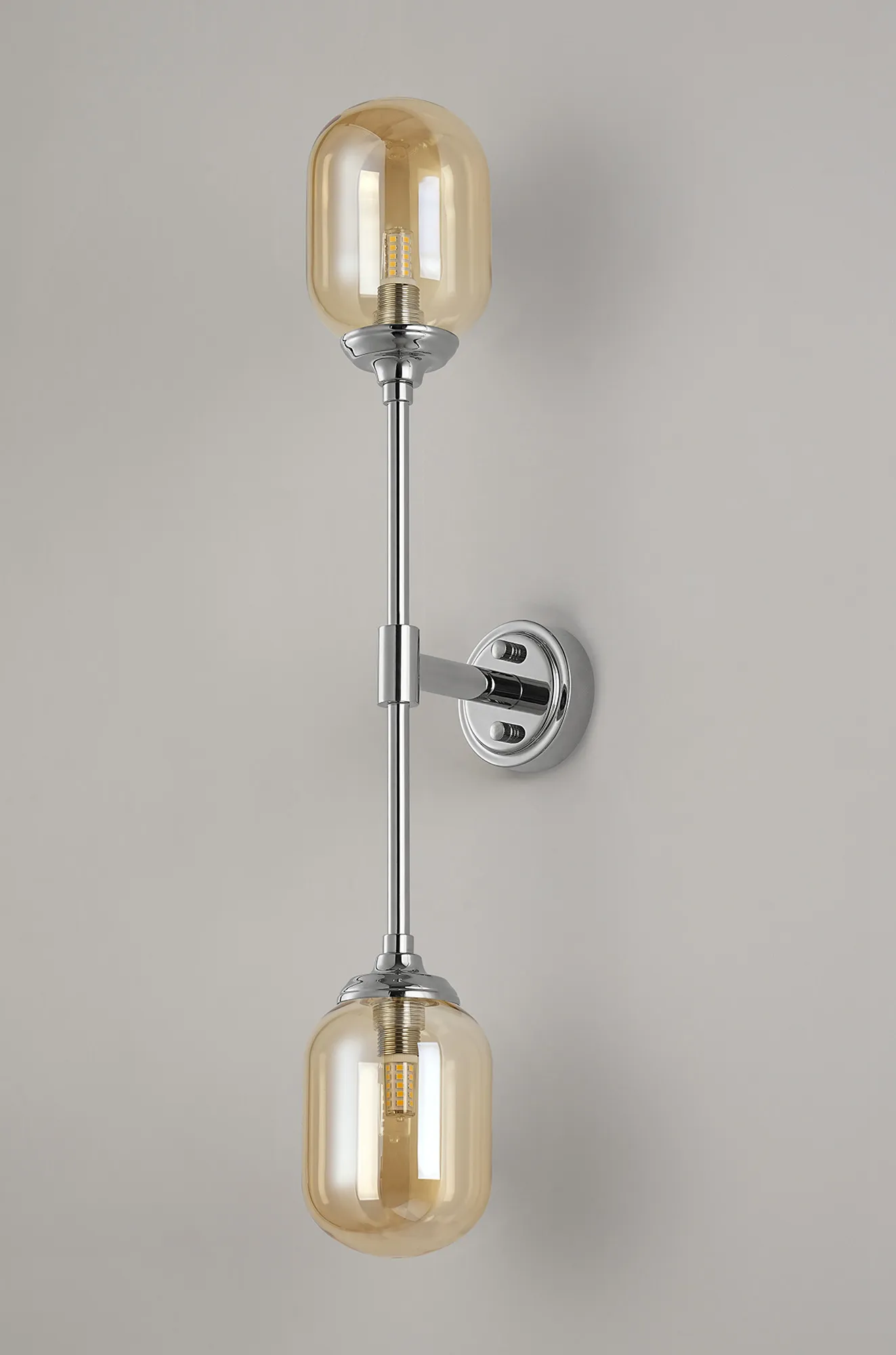 Cadoneghe Ceiling/Wall Light Linear 2 Light IP44 Polished Nickel/Amber Smooth Round Glass