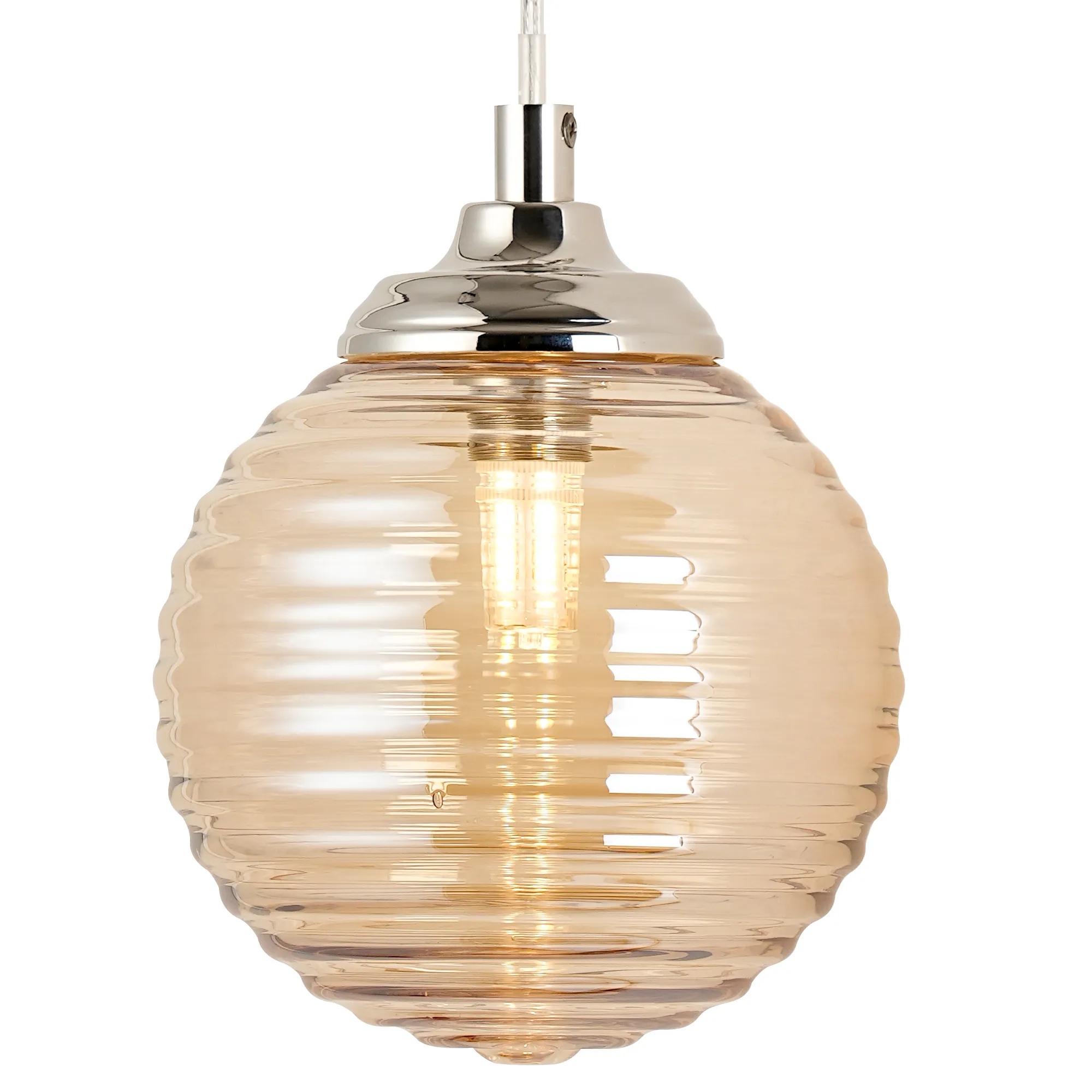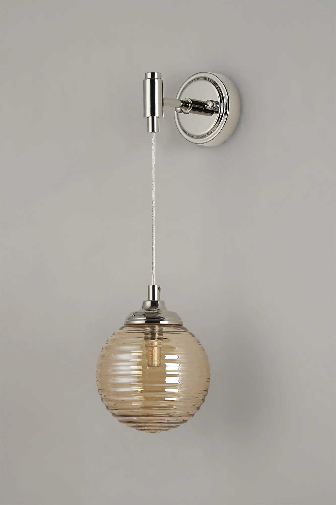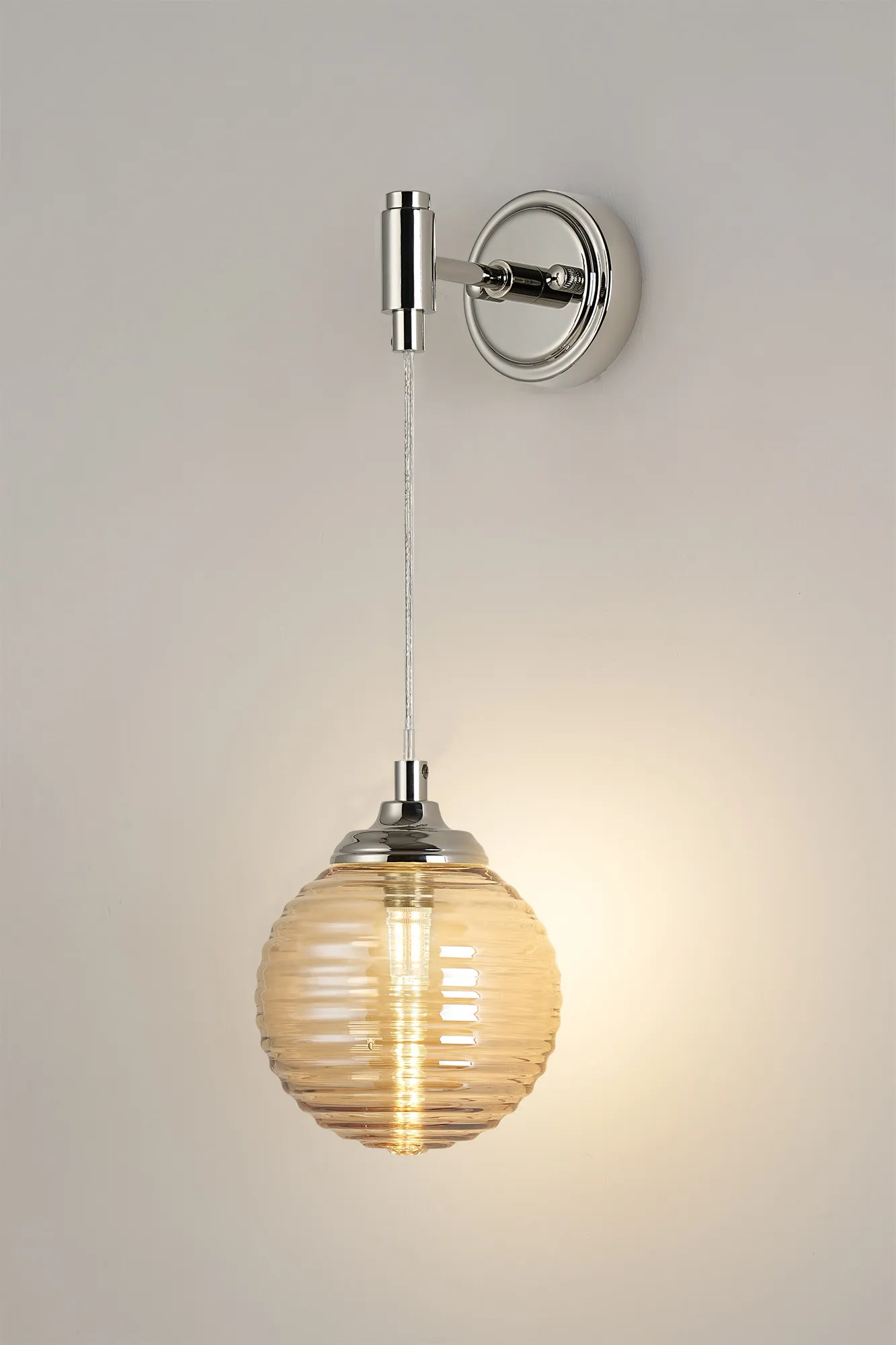 OTHER Cadoneghe Adjustable Wall Light 1 Light IP44 Polished Nickel/Amber Ribbed Round Glass