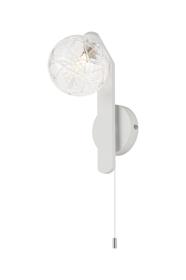 Trevignano Pull Switch Wall Light, 1 x G9, IP44, White/Polished Chrome/Clear Cross Pattern Round Glass
