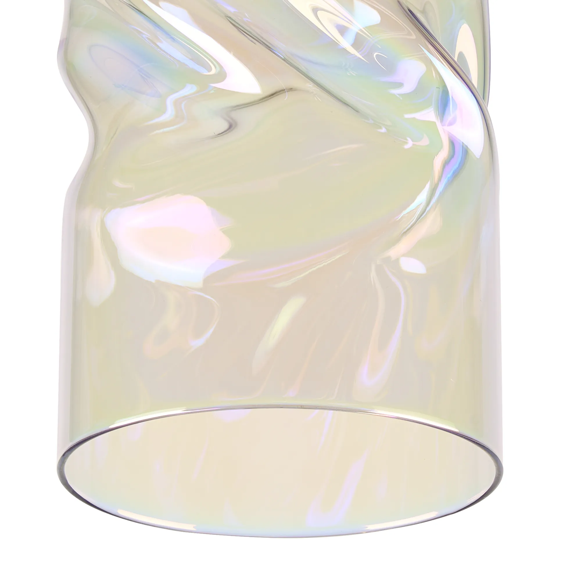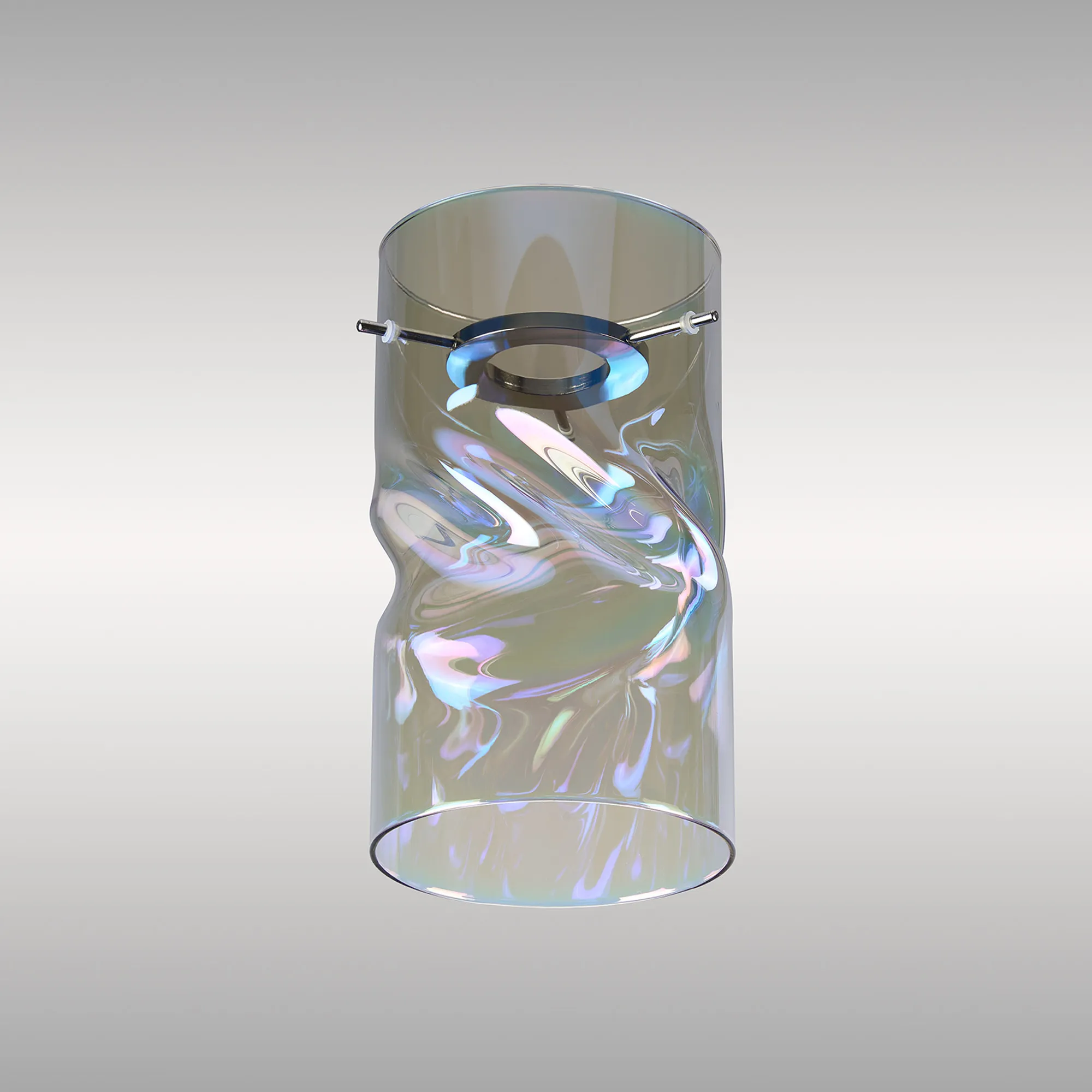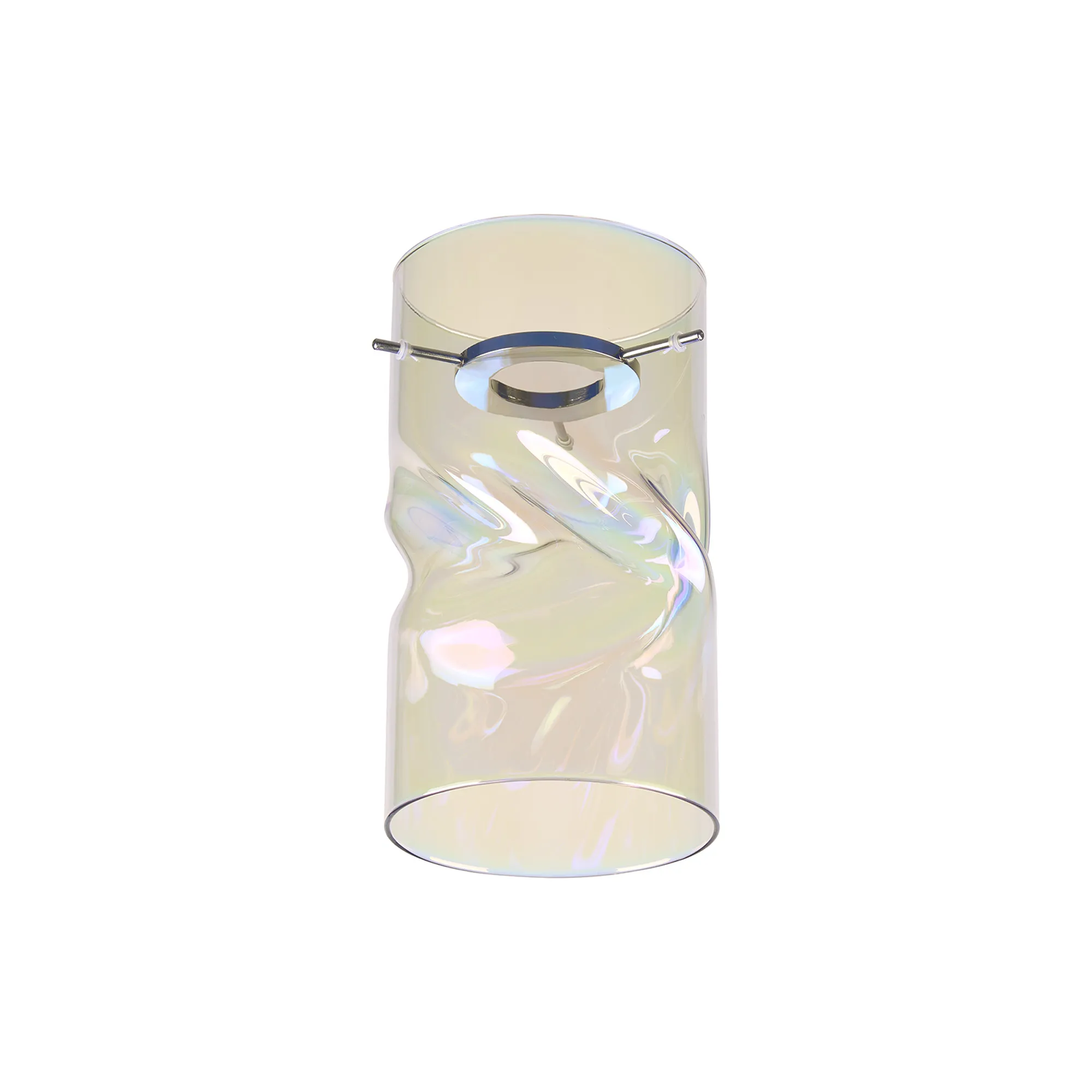 Nave 12x22cm Twisted Cylinder Deep Iridescent Glass Shade c/w Polished Chrome 3 Rod Suspension Plate