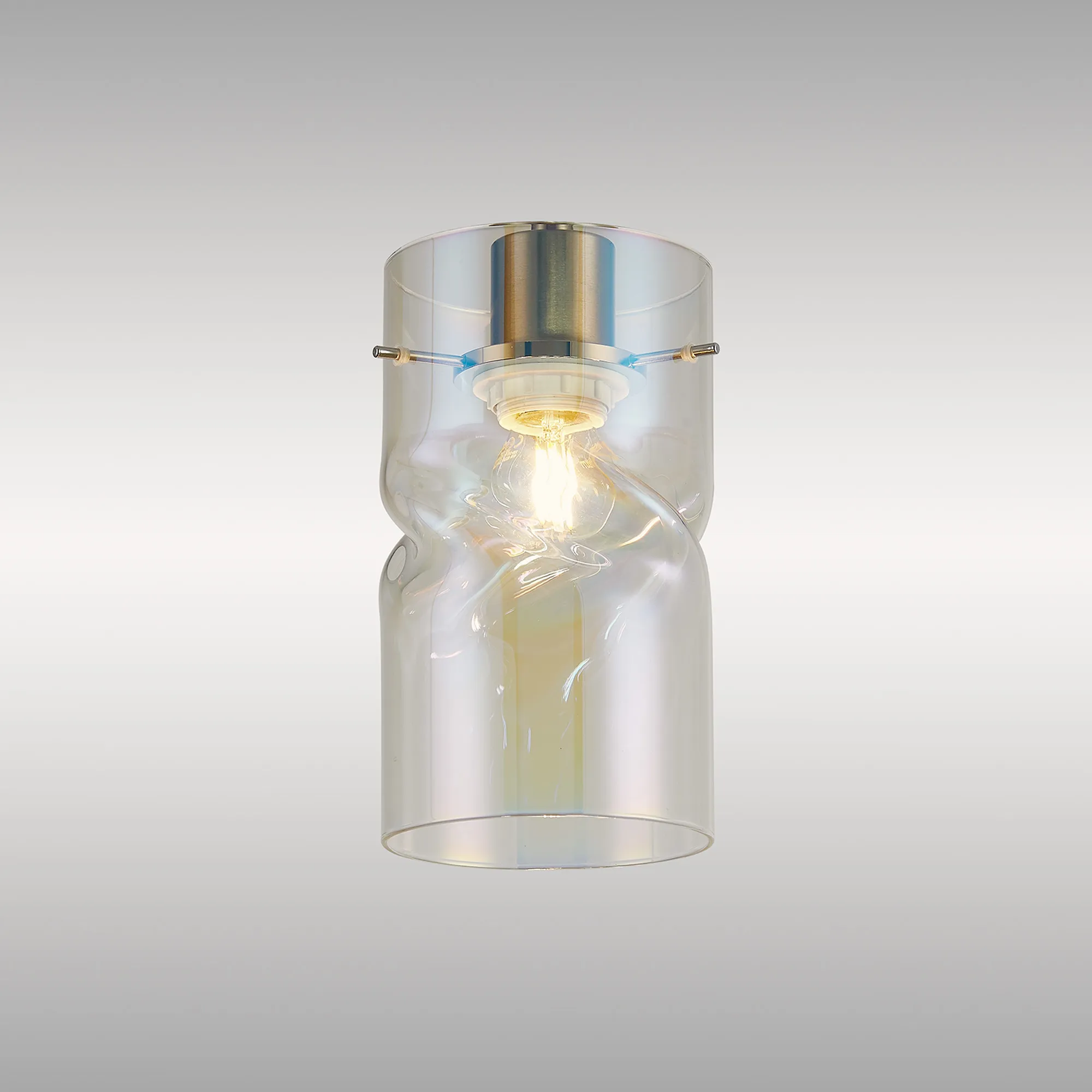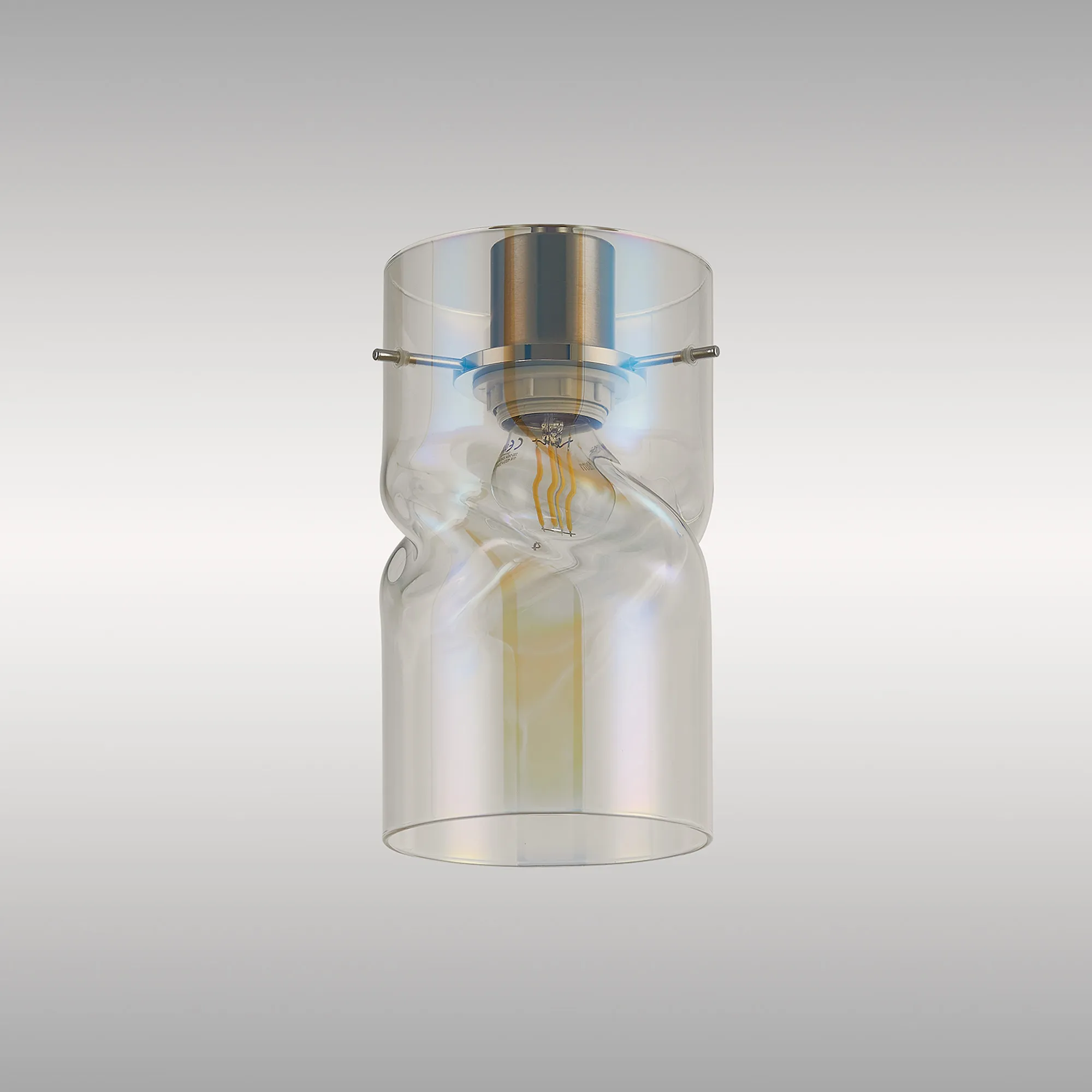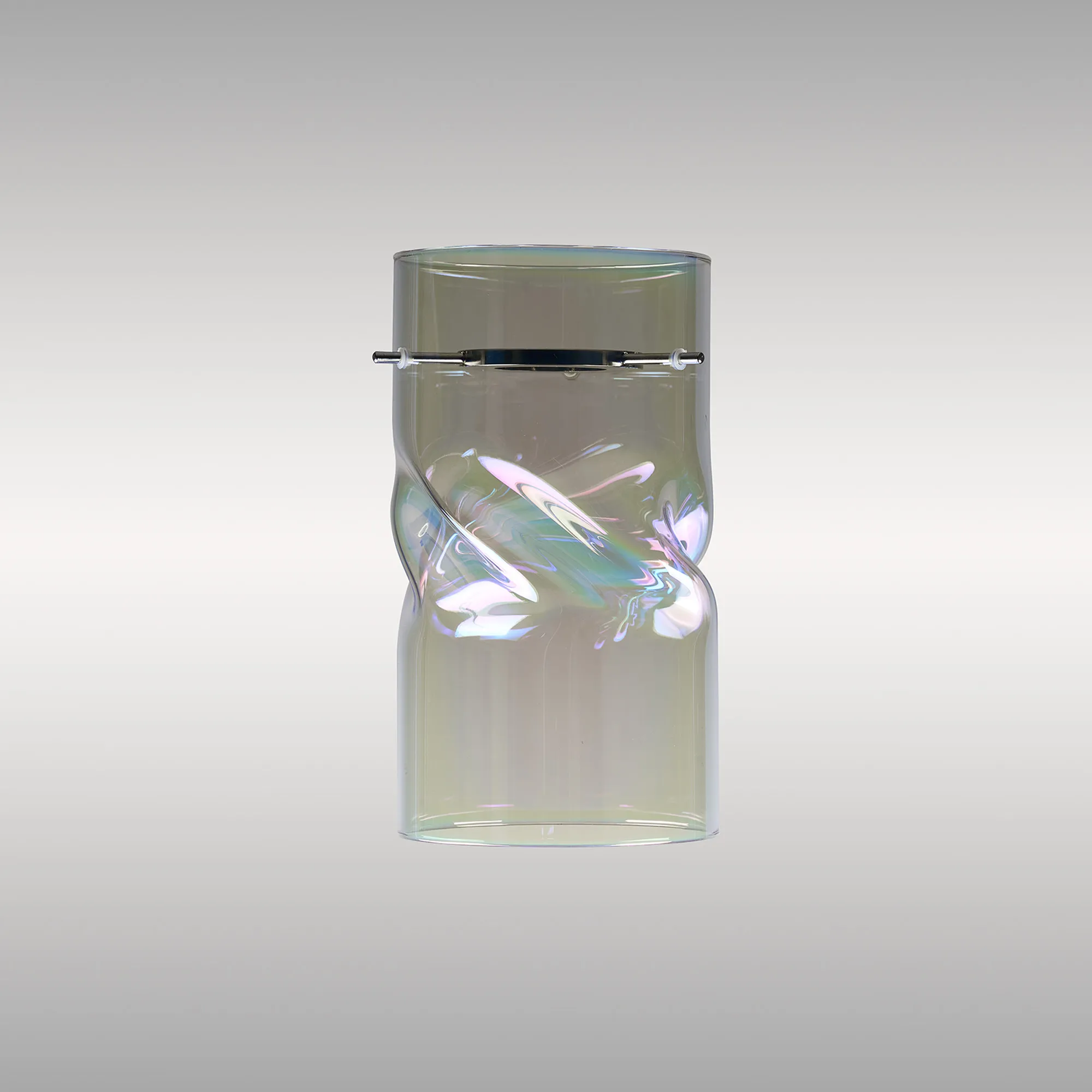 Nave 12x22cm Twisted Cylinder Deep Iridescent Glass Shade c/w Polished Chrome 3 Rod Suspension Plate
