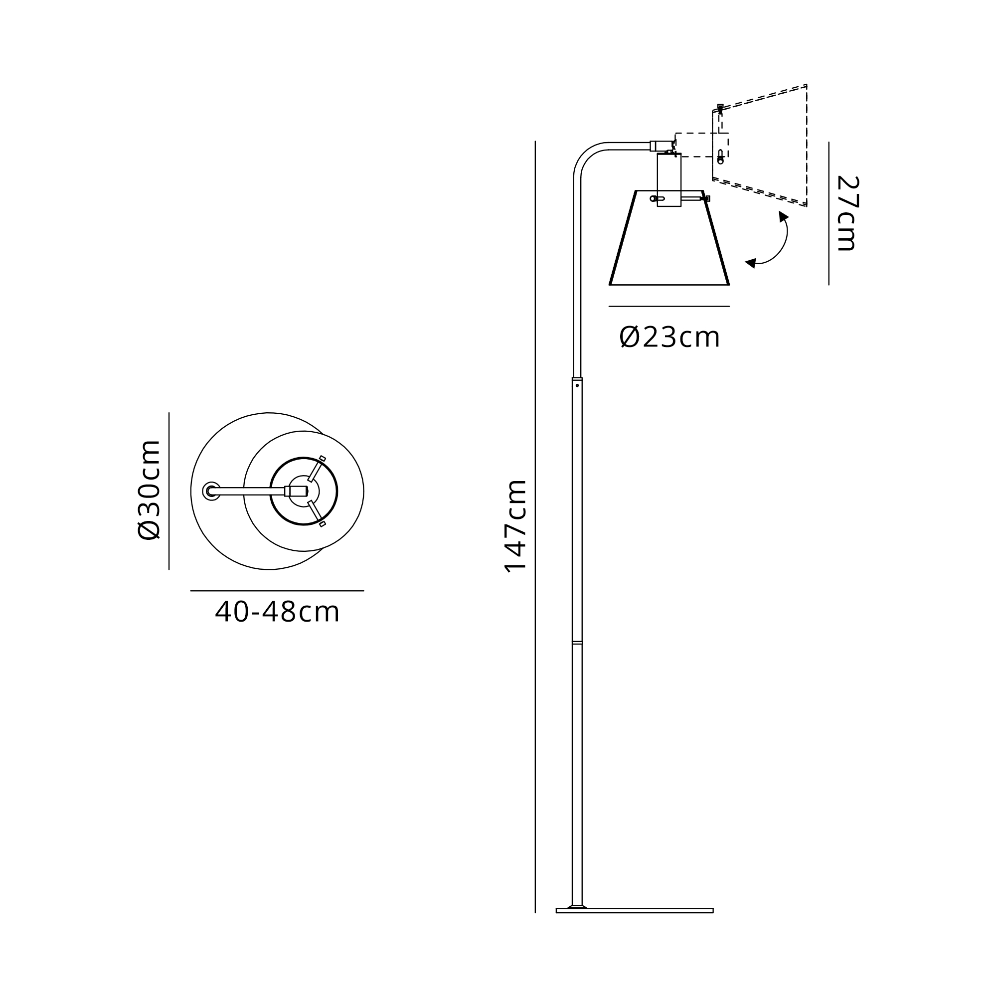 Shade Hole Diameter (mm) Top Hole D:130mm Bottom Hole D:230mm
