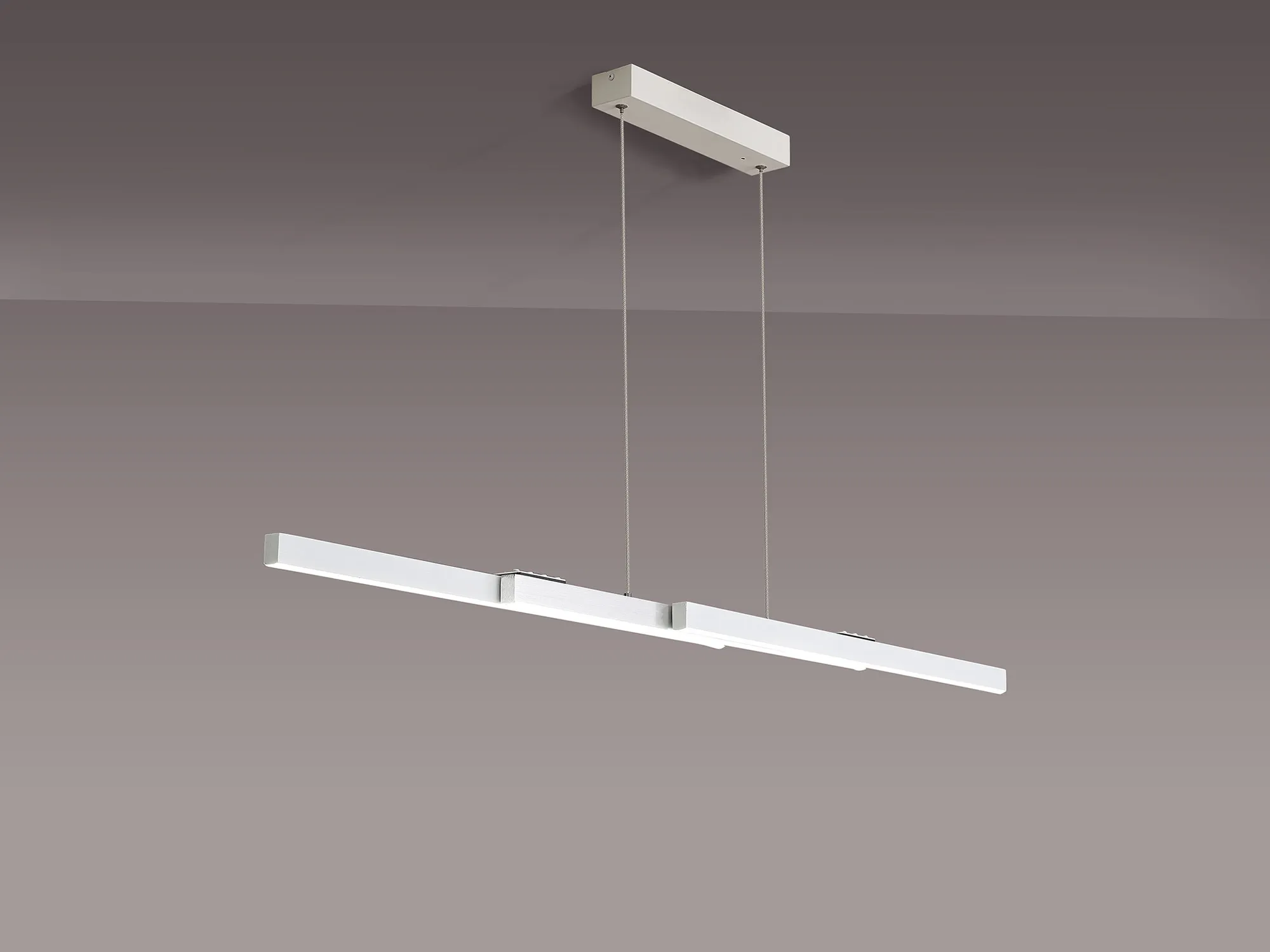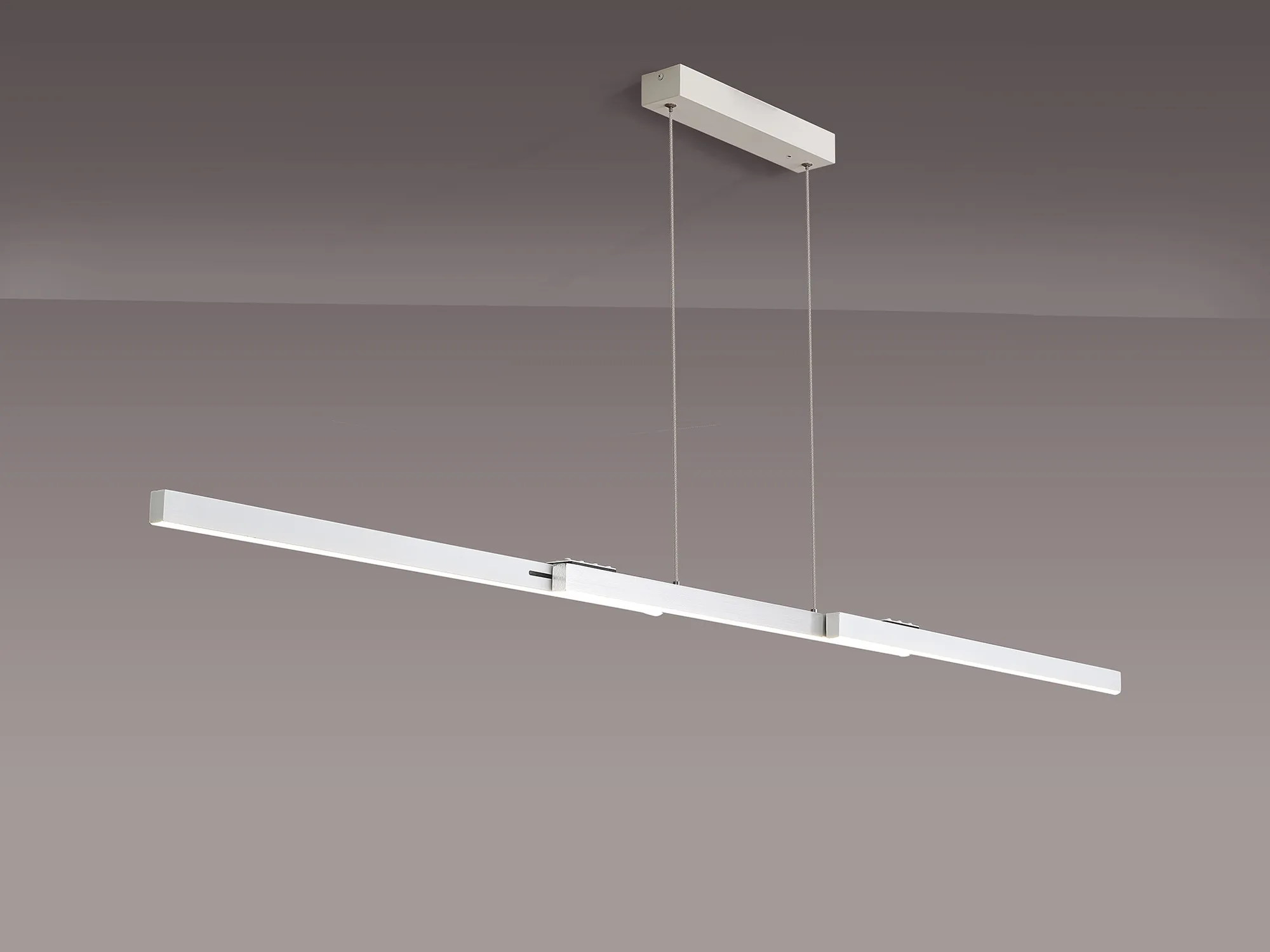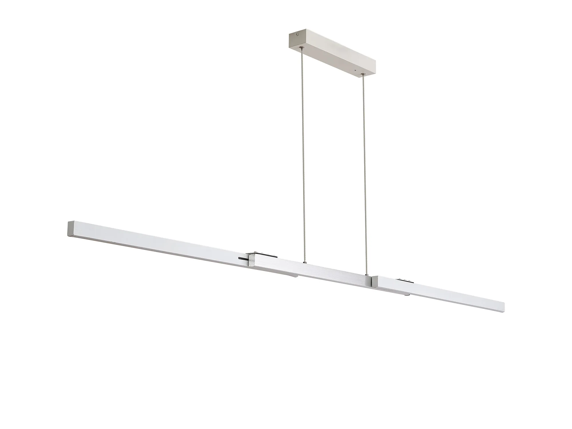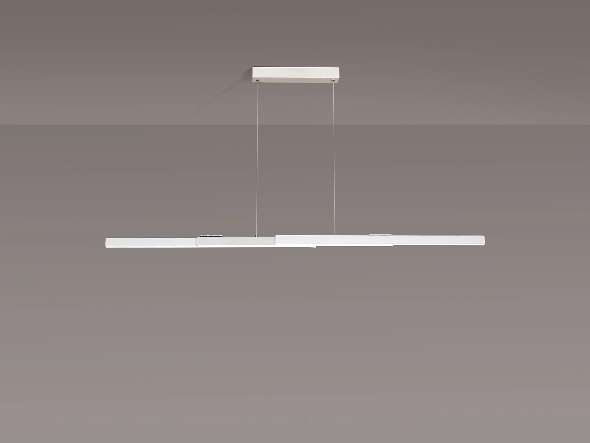 Available in either a satin black/gold or sand white/aluminium colour finish, Calvene presents an innovative lighting concept. The linear LED pendants have the adaptable function of an expanding structure. The compact size can be lengthened in width as well as height making it an ideal solution for a variety of required specifications. With two size options the 40W LED pendant also includes a remote control and is CCT tuneable.