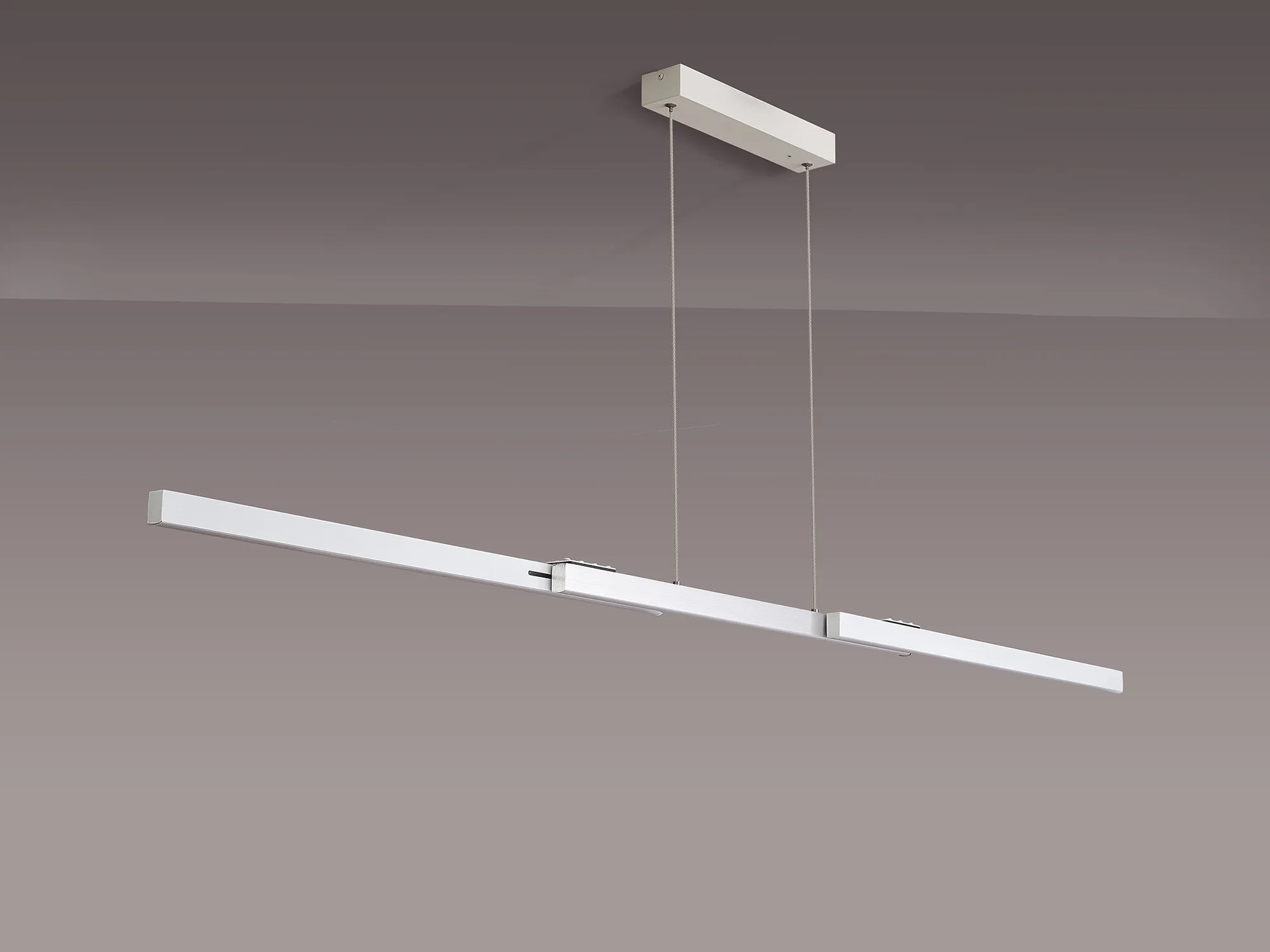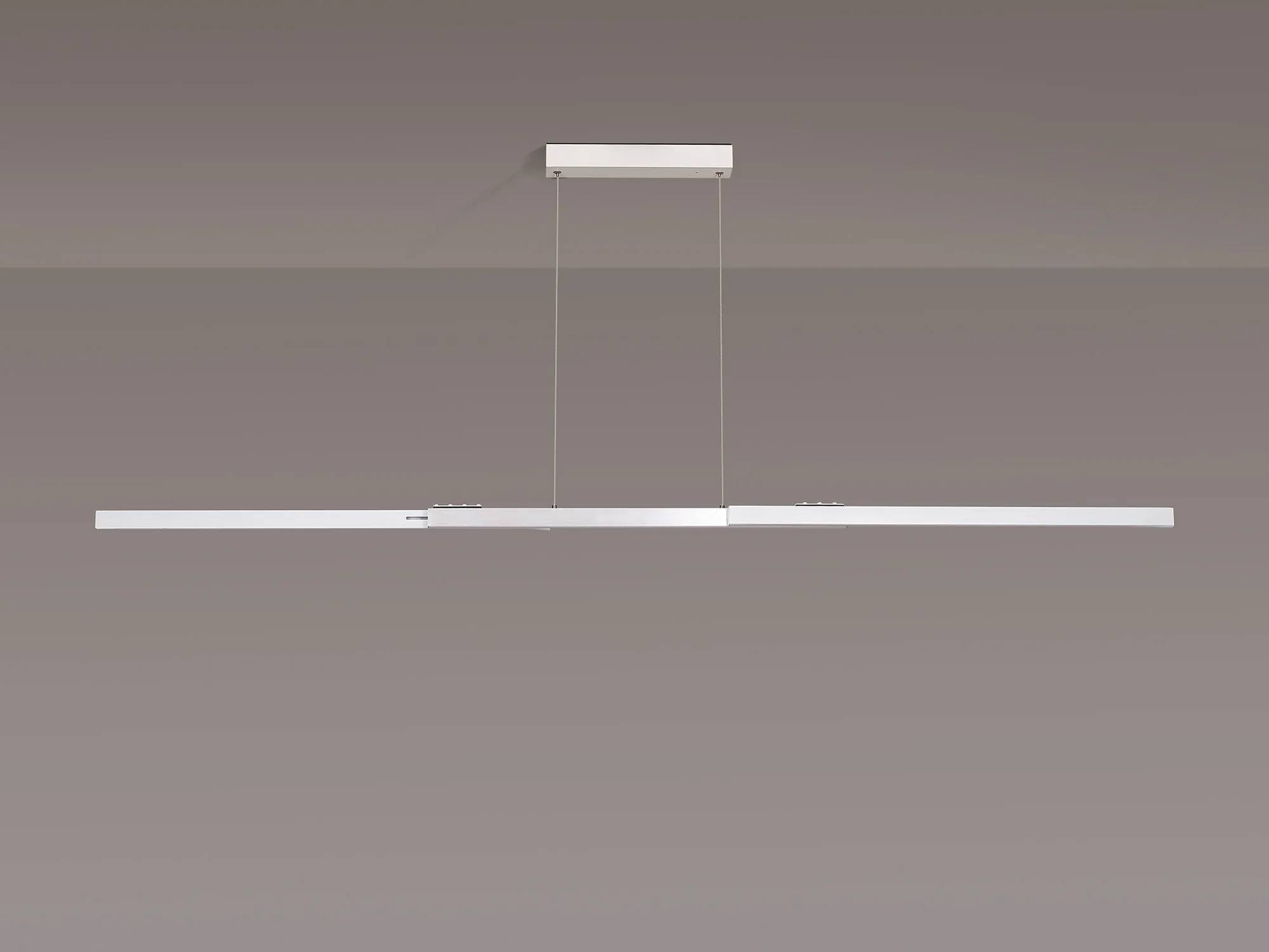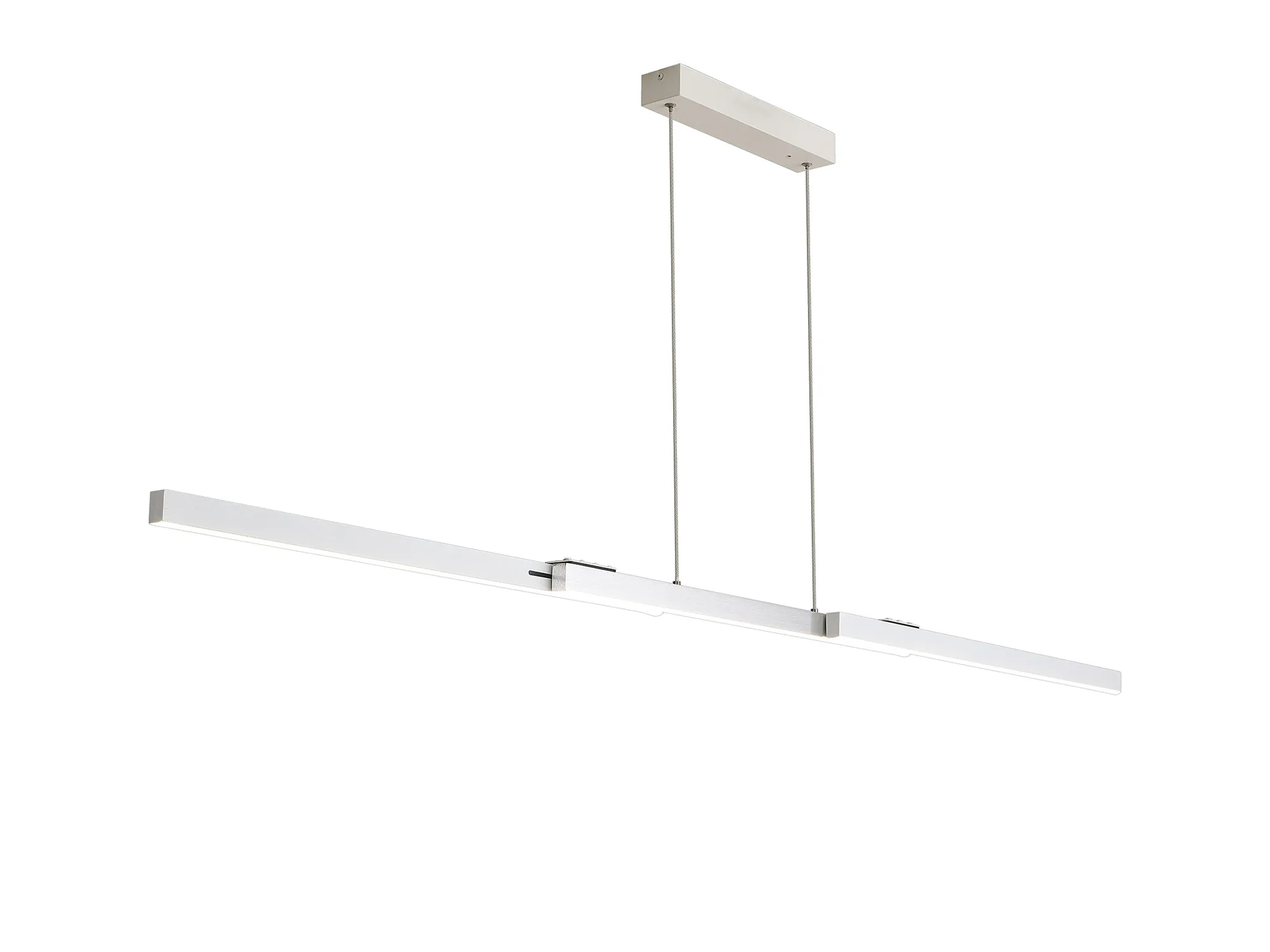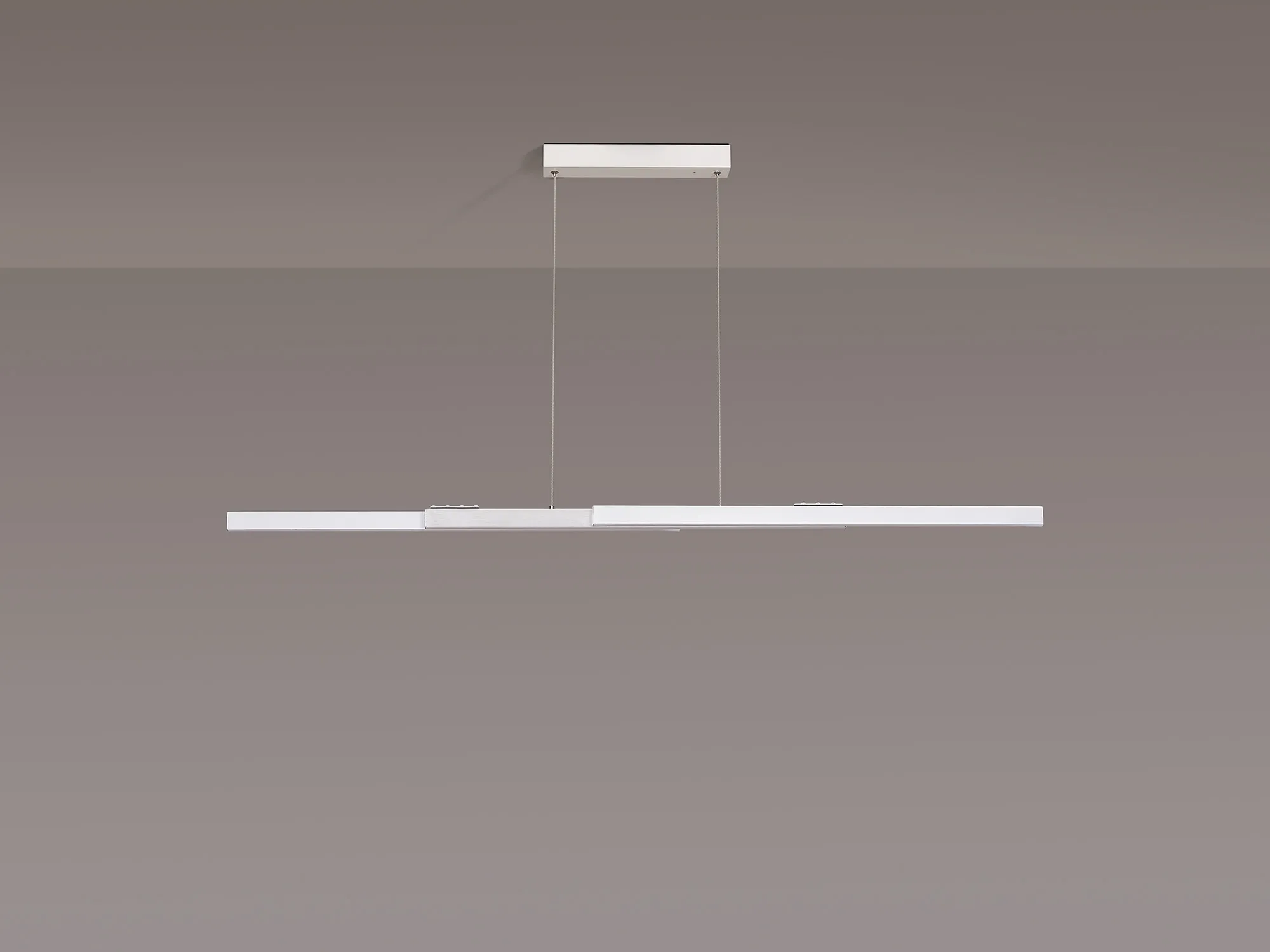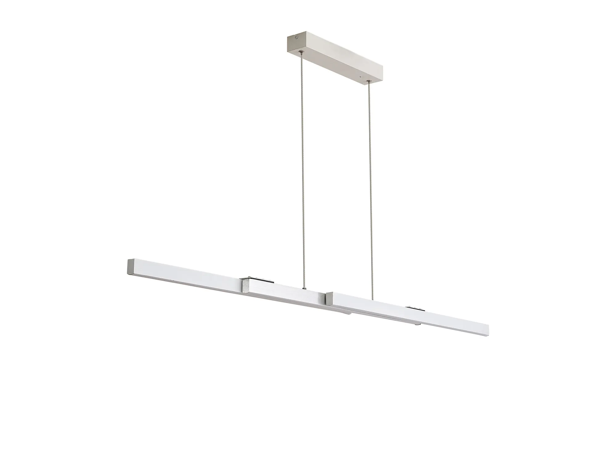 Available in either a satin black/gold or sand white/aluminium colour finish, Calvene presents an innovative lighting concept. The linear LED pendants have the adaptable function of an expanding structure. The compact size can be lengthened in width as well as height making it an ideal solution for a variety of required specifications. With two size options the 40W LED pendant also includes a remote control and is CCT tuneable.