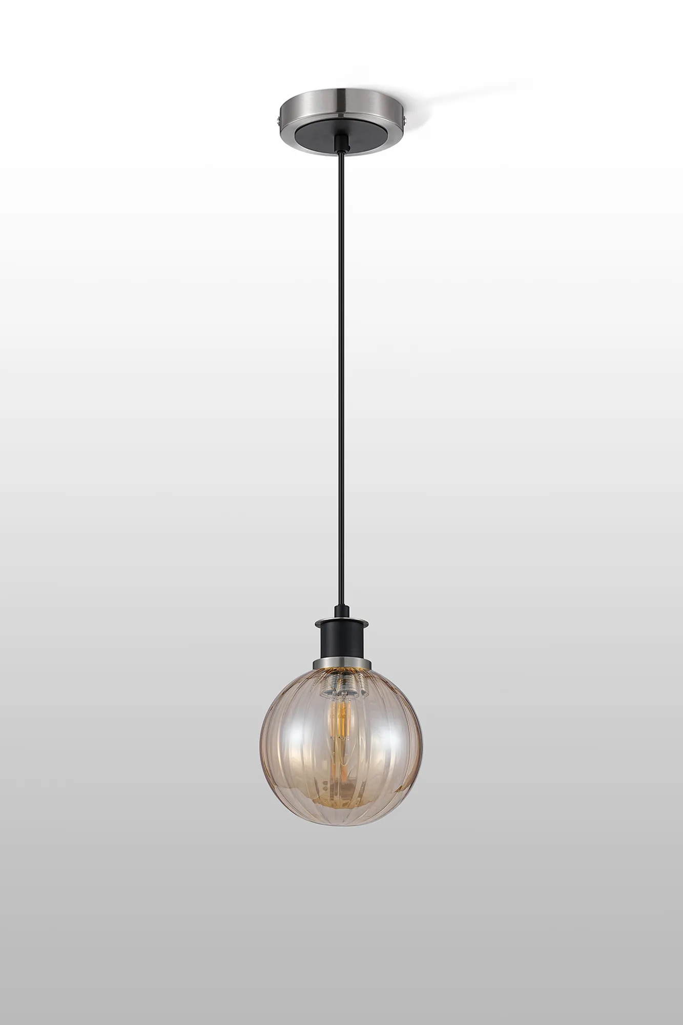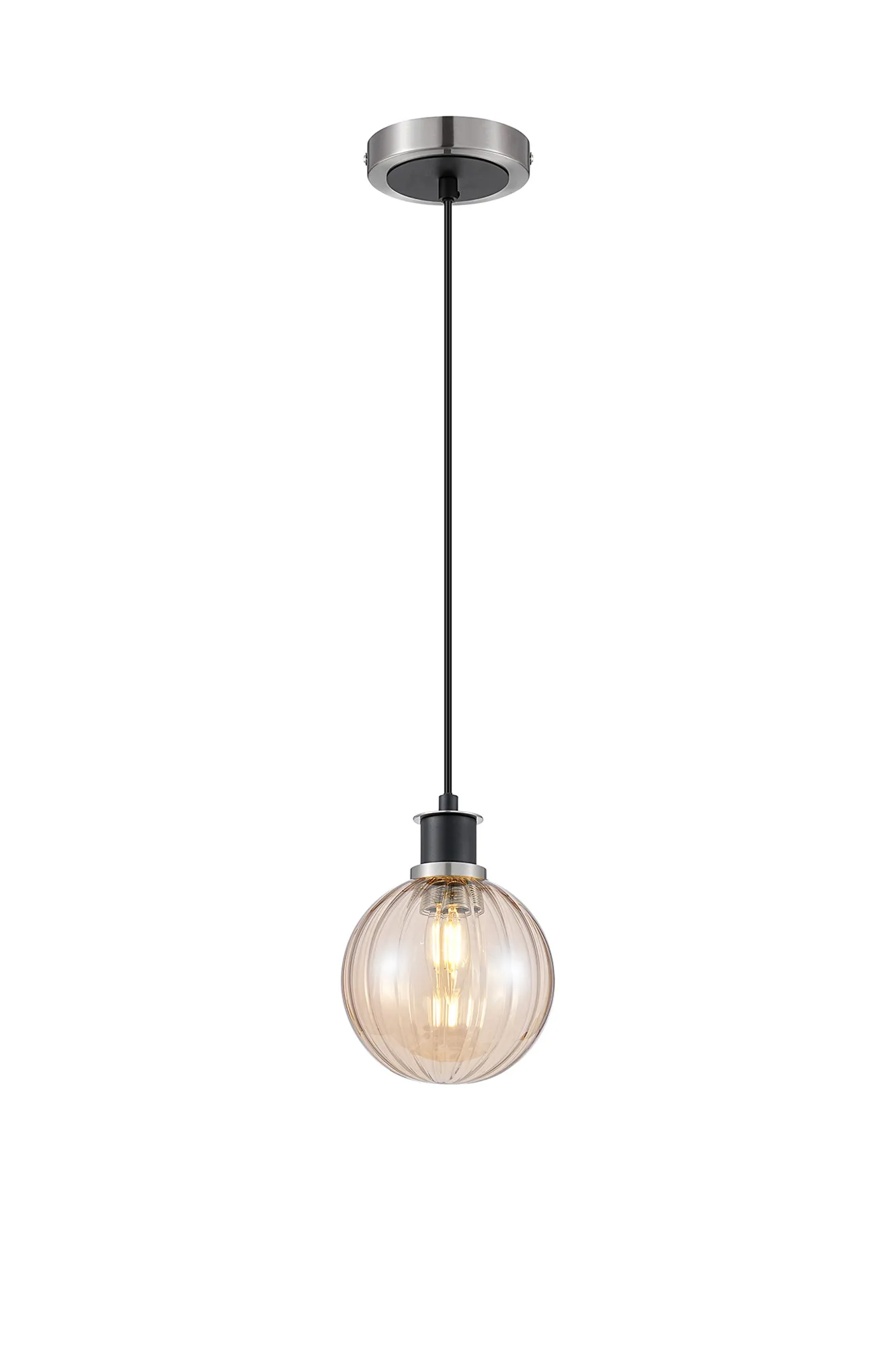 OTHER Altivole 1.3m Pendant, 1 x E14 With 15cm Round Segment Glass Shade, Satin Nickel, Amber Plated & Satin Black