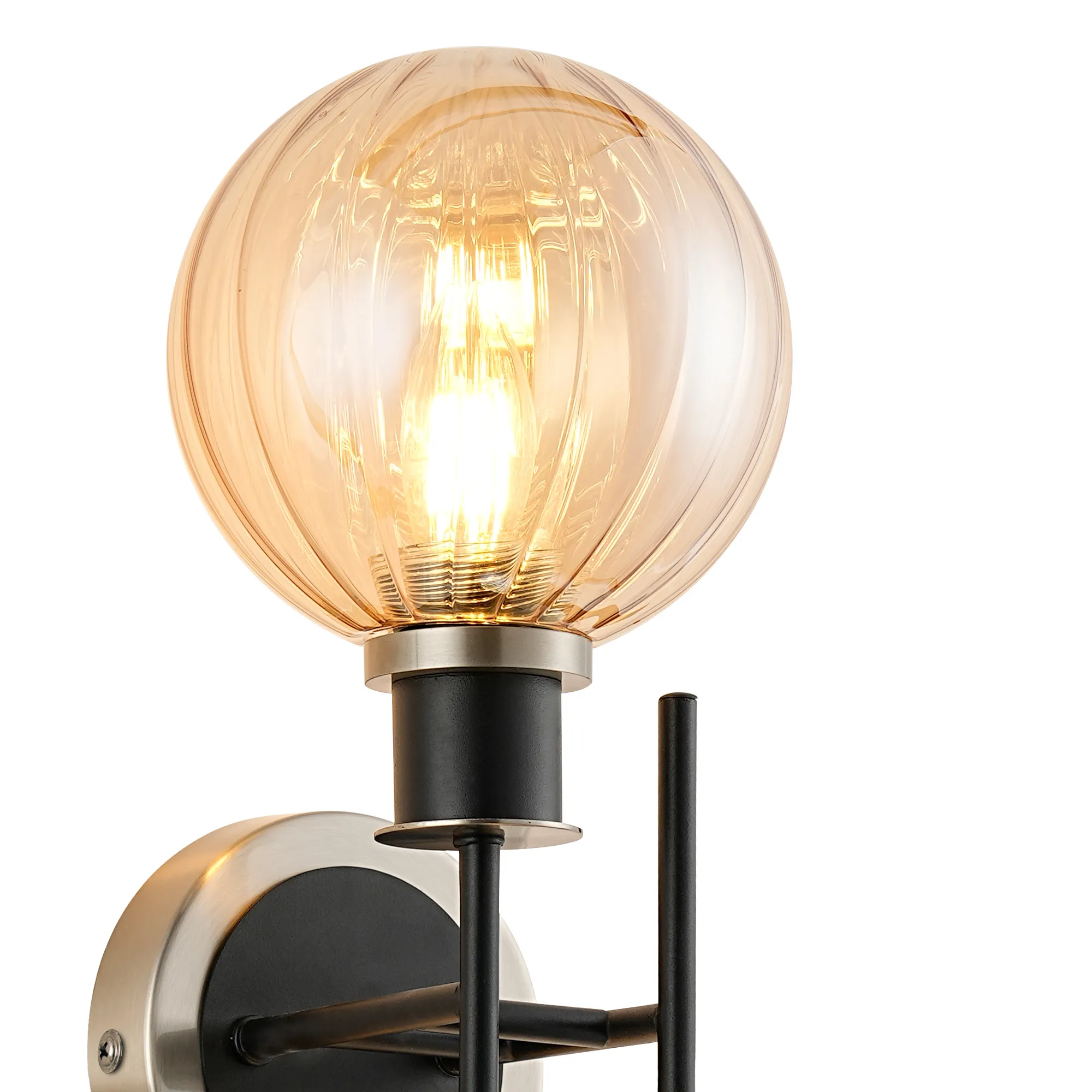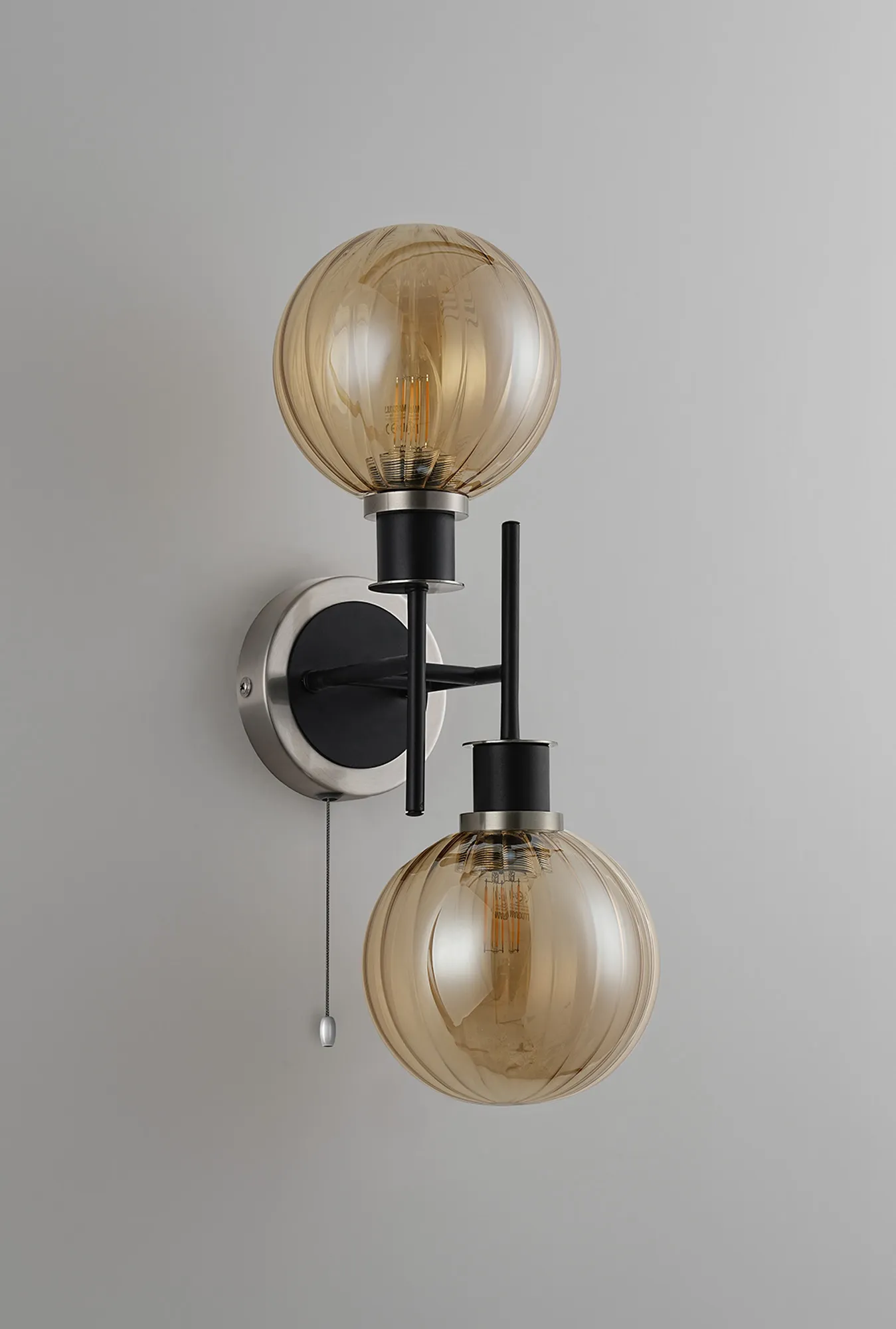 OTHER Altivole Switched Wall Light, 2 x E14 With 15cm Round Segment Glass Shade, Satin Nickel, Amber Plated & Satin Black