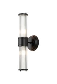 Casaleone 2 Light Glass Rod Wall, E14, IP44, Satin Black/Clear Glass Rods