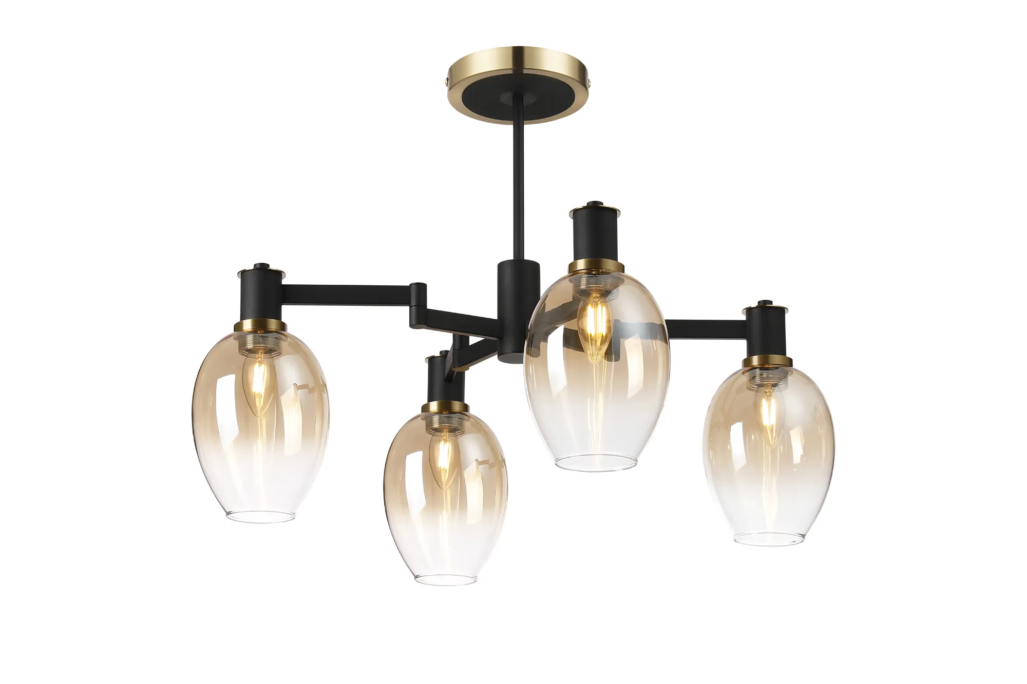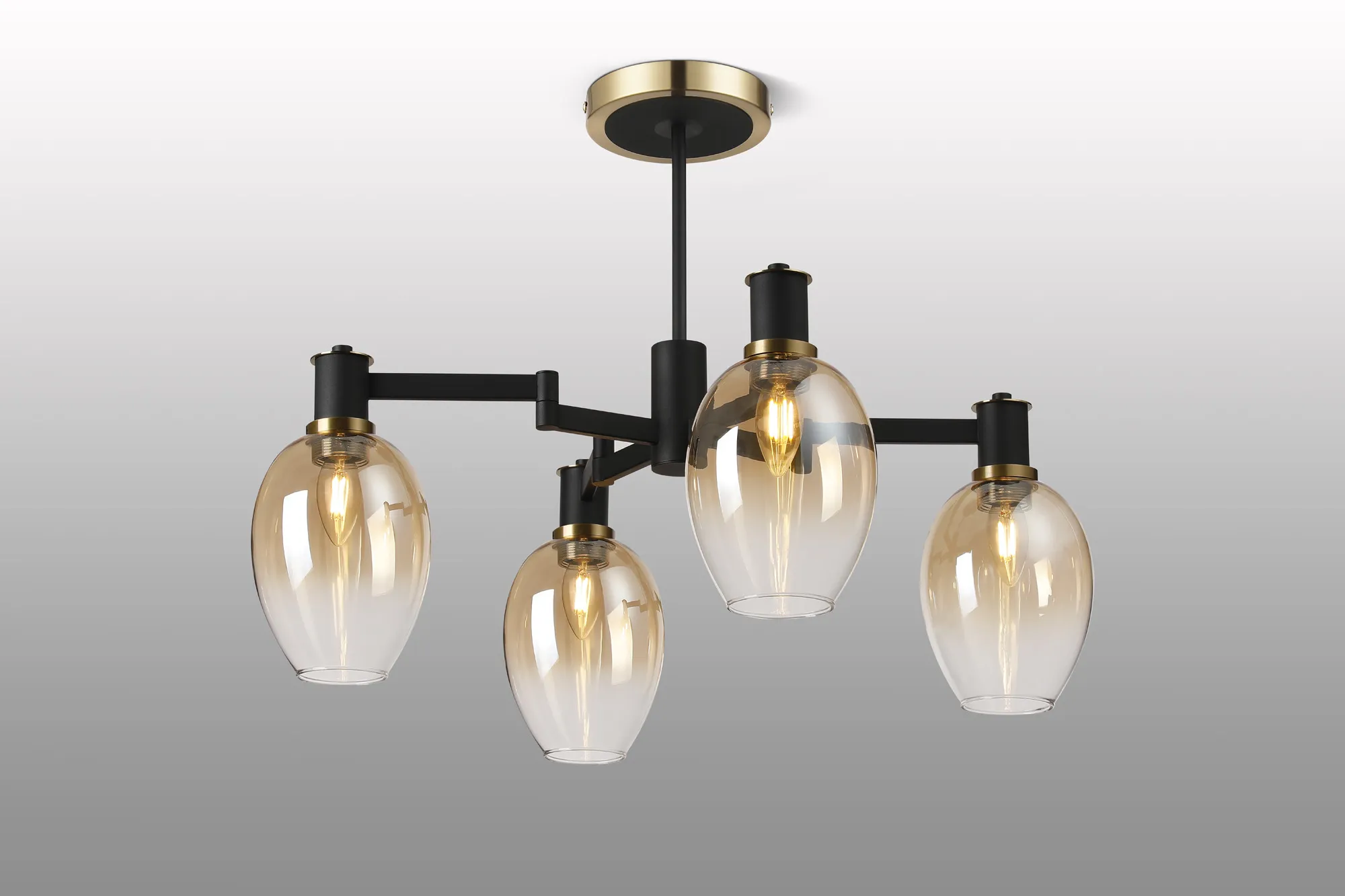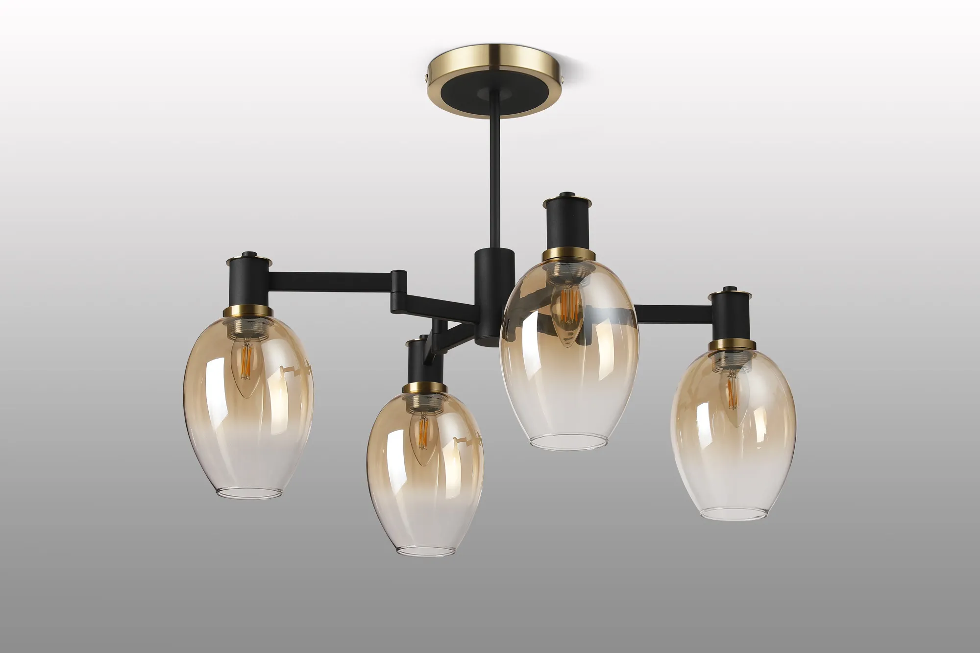 OTHER Arzignano Swing Arm Semi Ceiling 4 x E14 Brass/Satin Black/Amber Fade Wine Glass Glass